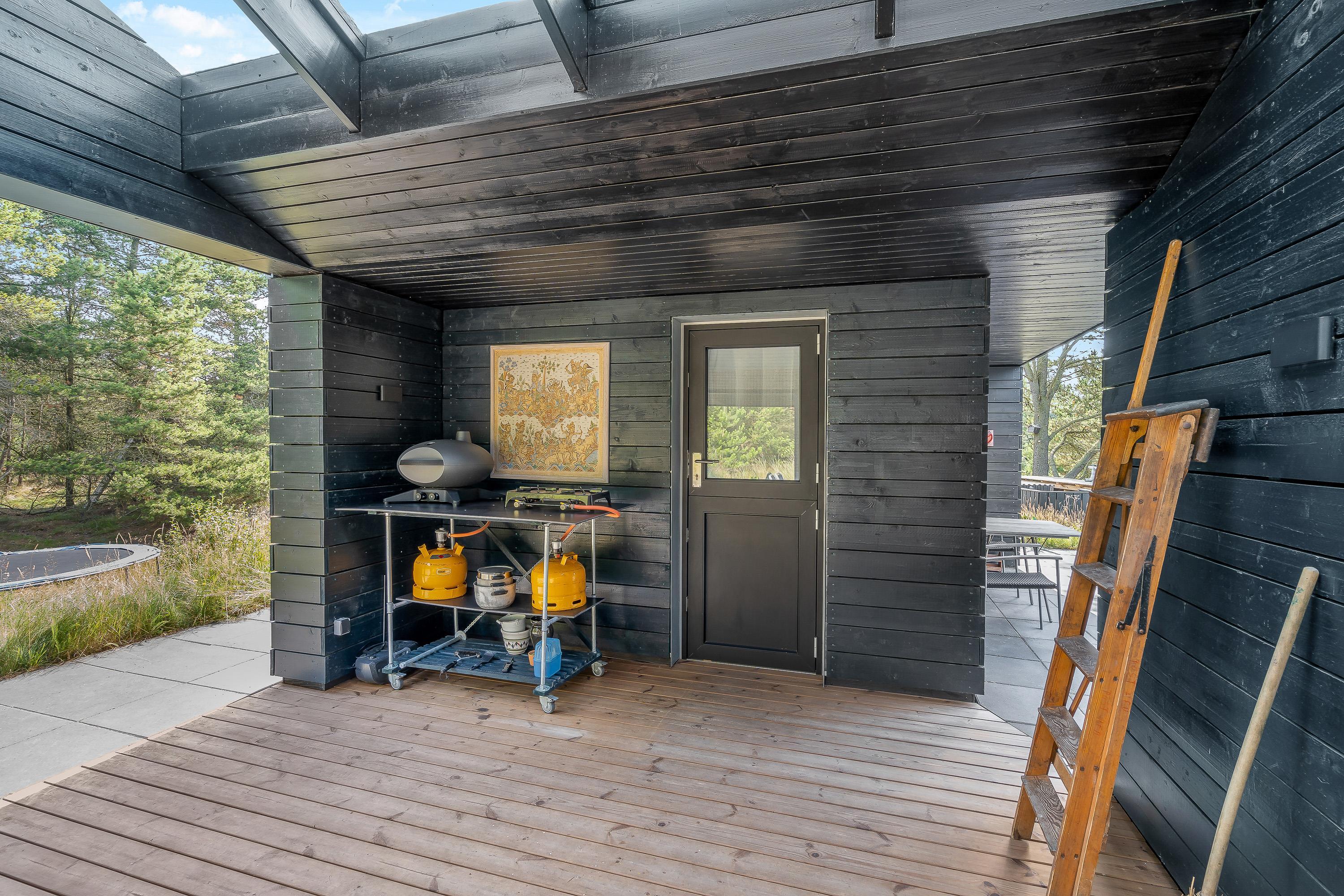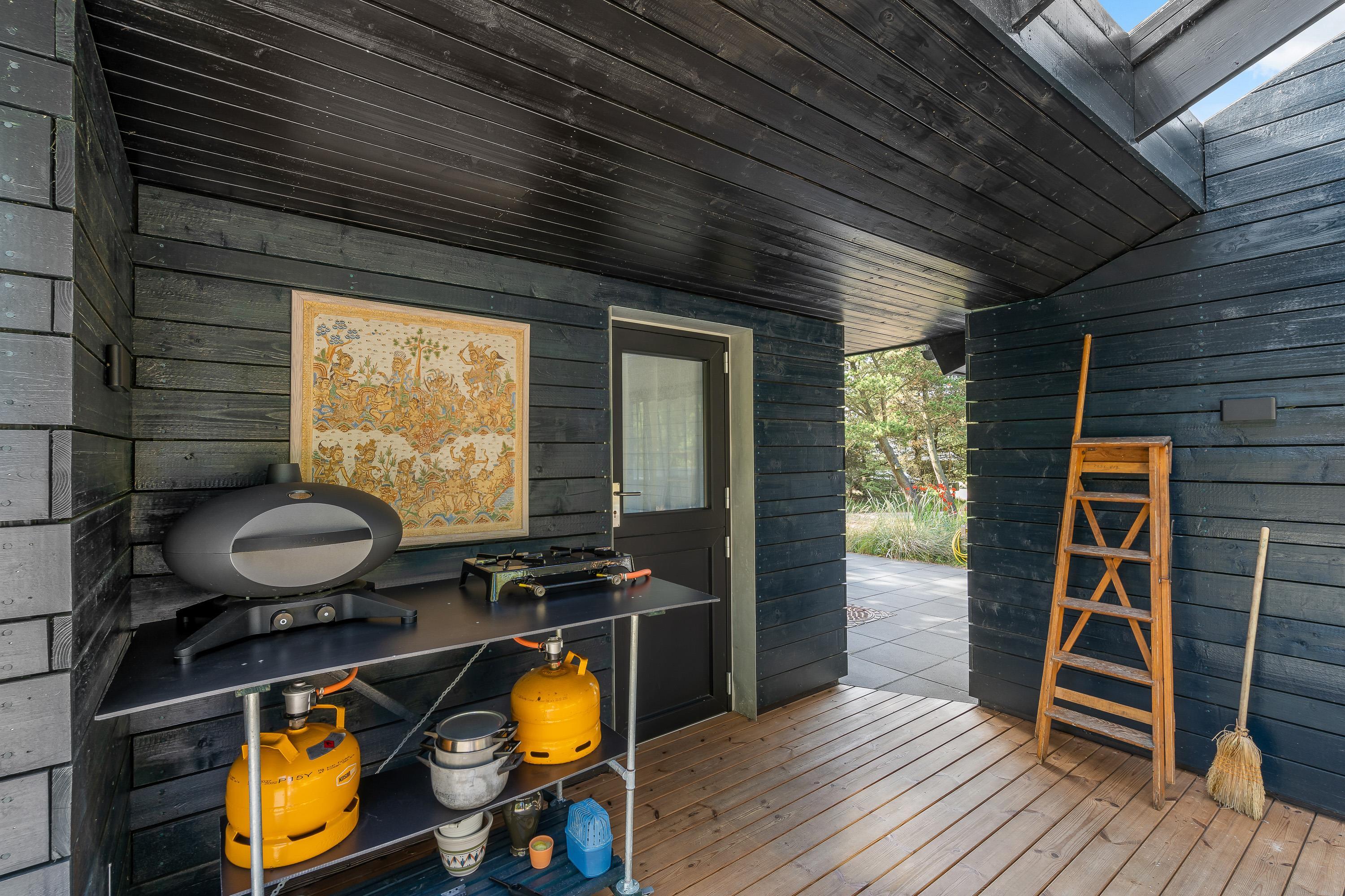 Derudover har I en terrasse, der er overdækket og afskærmet, hvor I kan sidde i ly og læ. Her kan I samles om aftenen til en lækker middag, som I kan tilberede på gasgrillen og nyde med et godt glas vin til.