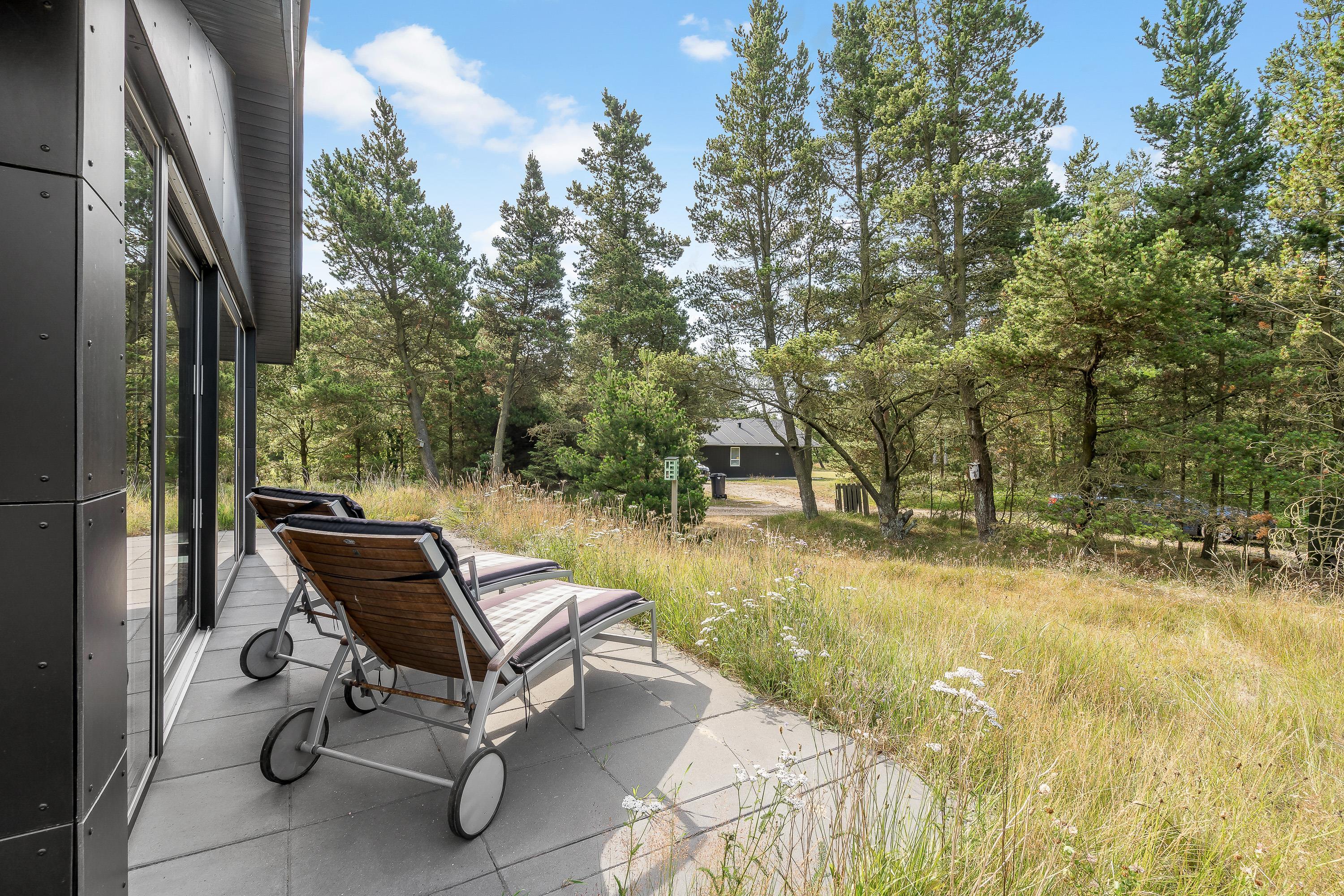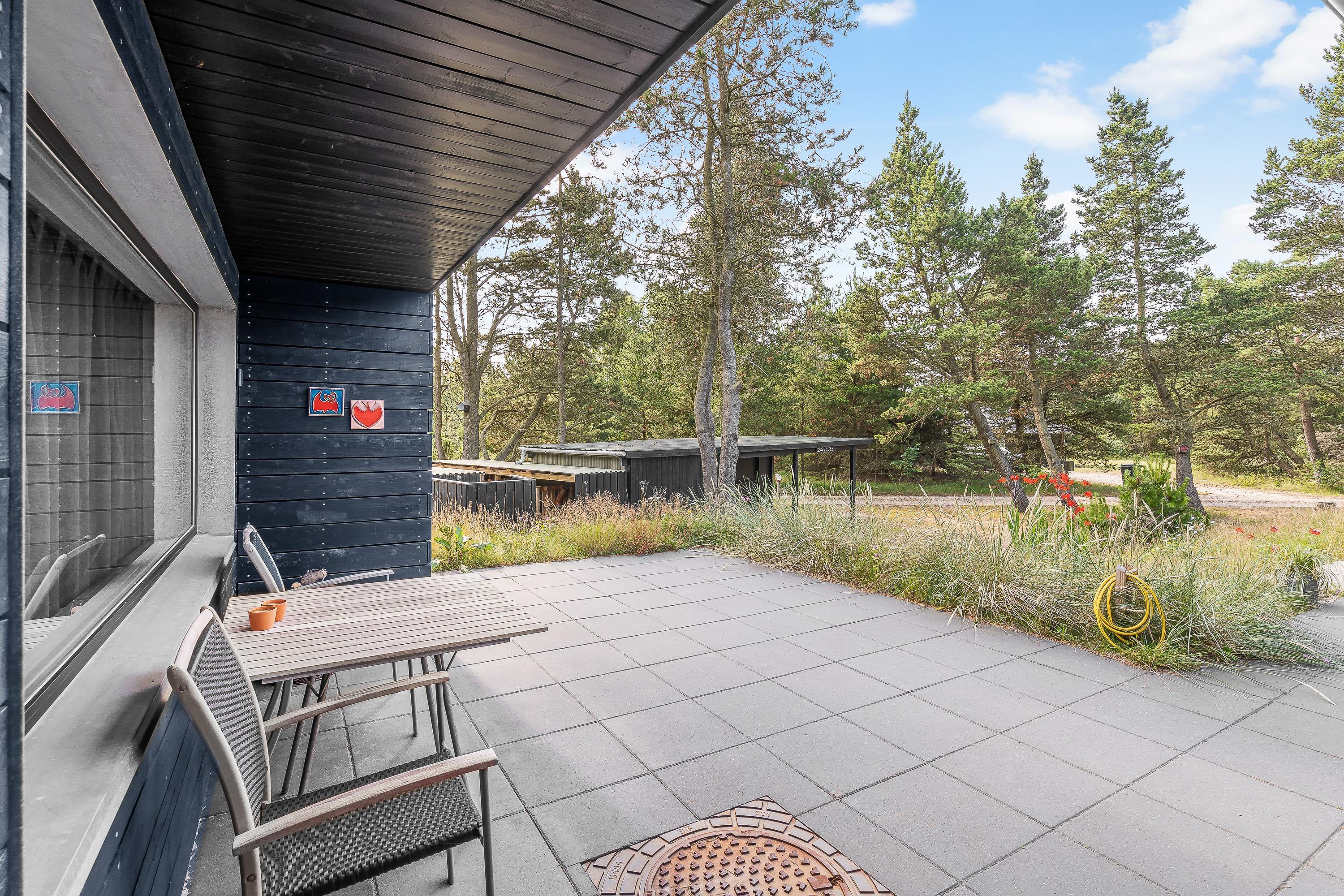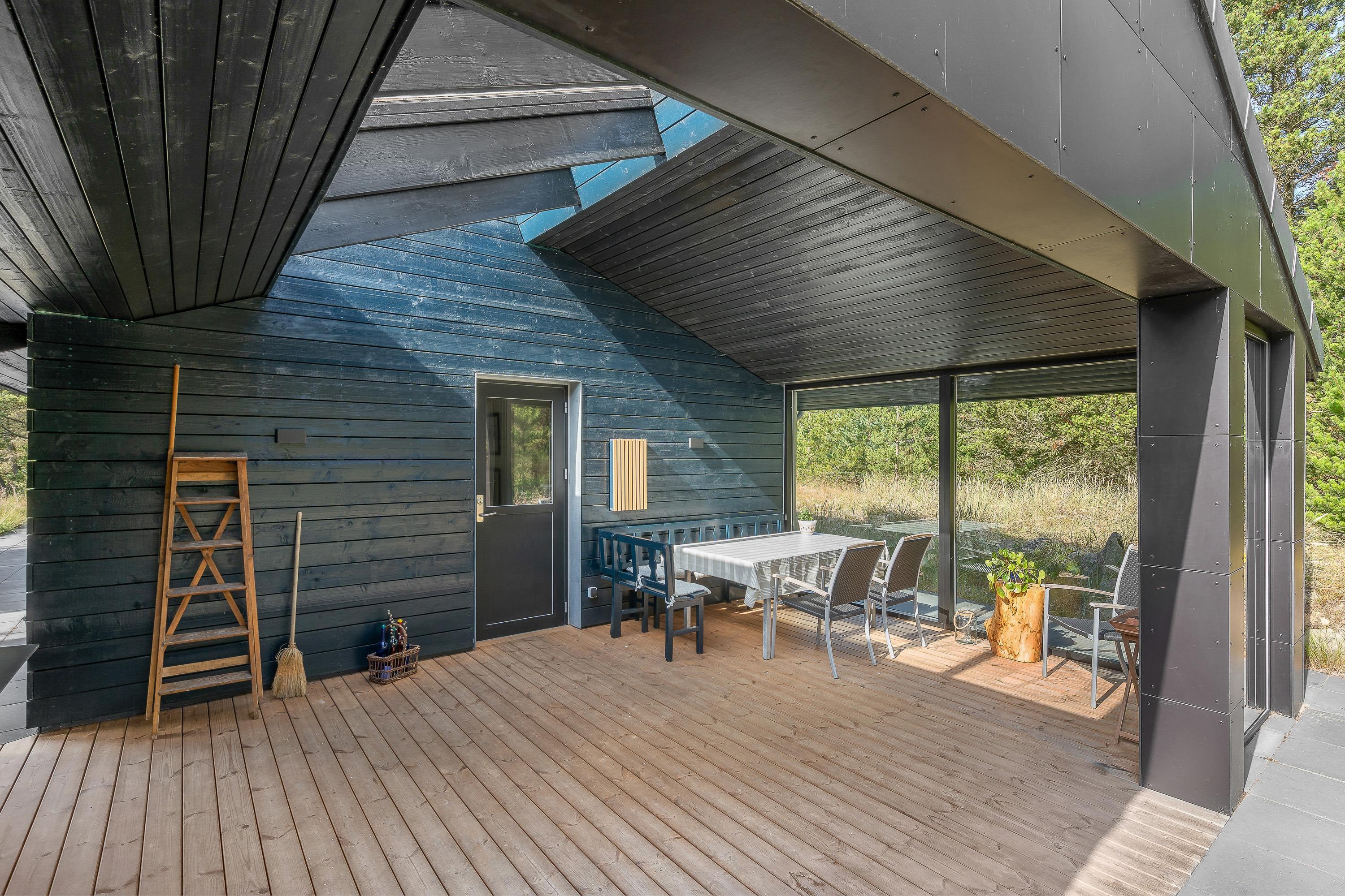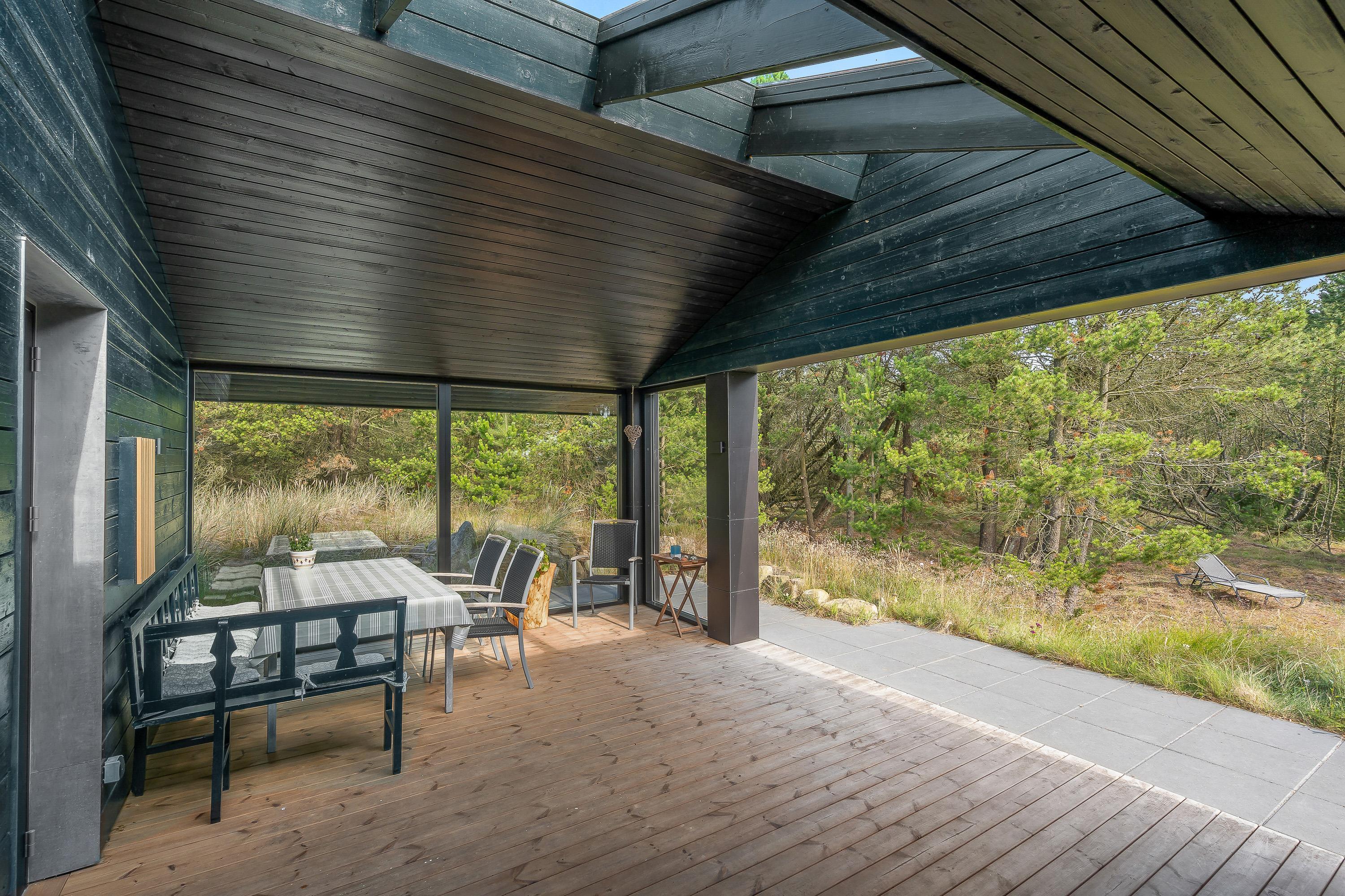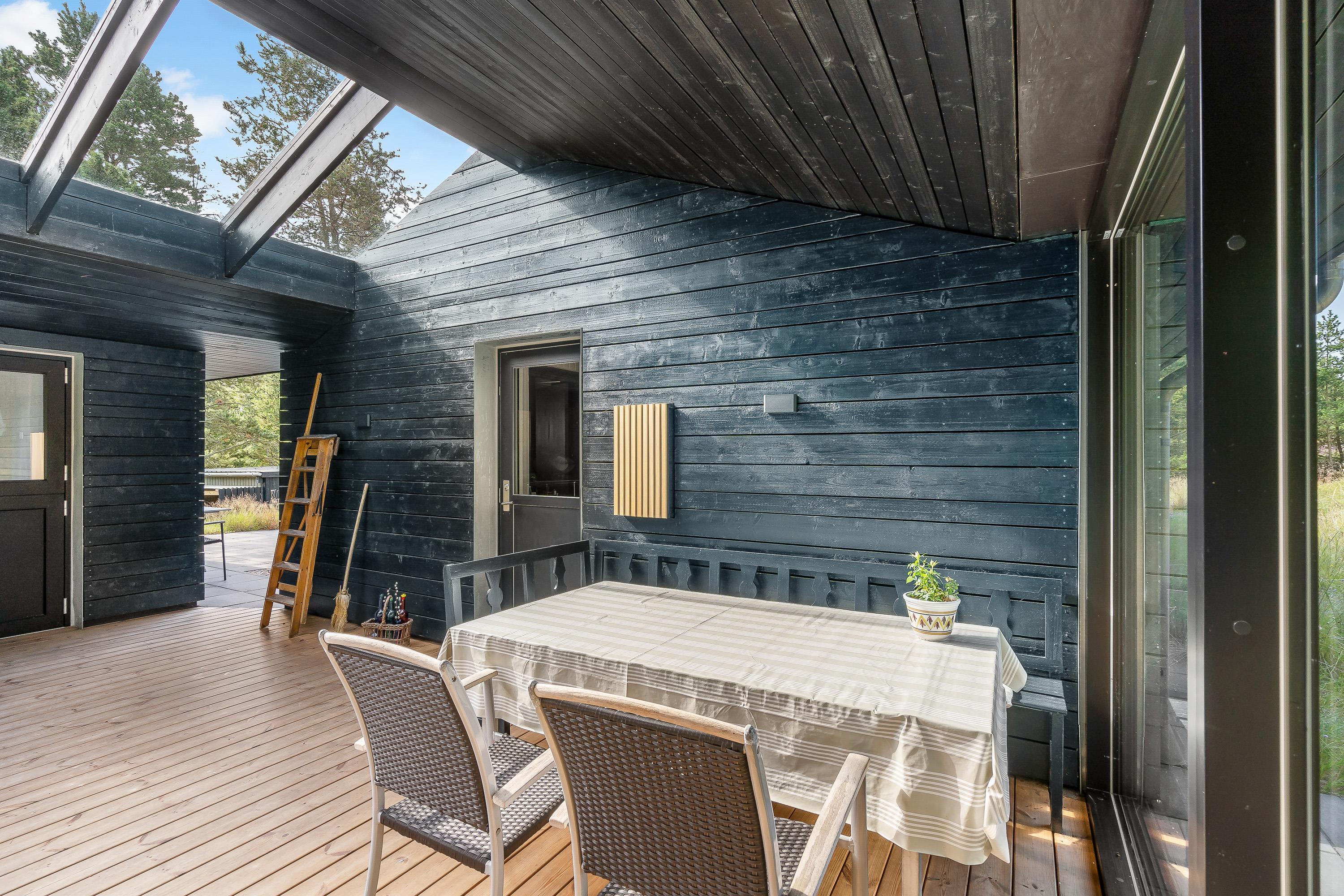 Sommerhuset har flere skønne terrasser, som I kan nyde de solrige feriedage fra. På den åbne terrasse kan I læne jer tilbage i havemøbler og liggestole på en plads, hvor I kan nyde solens varme stråler.