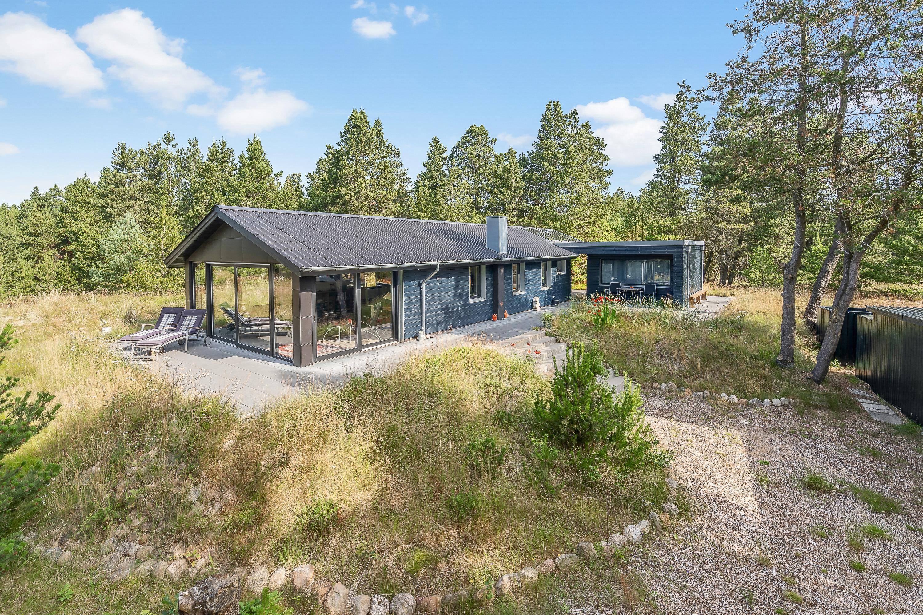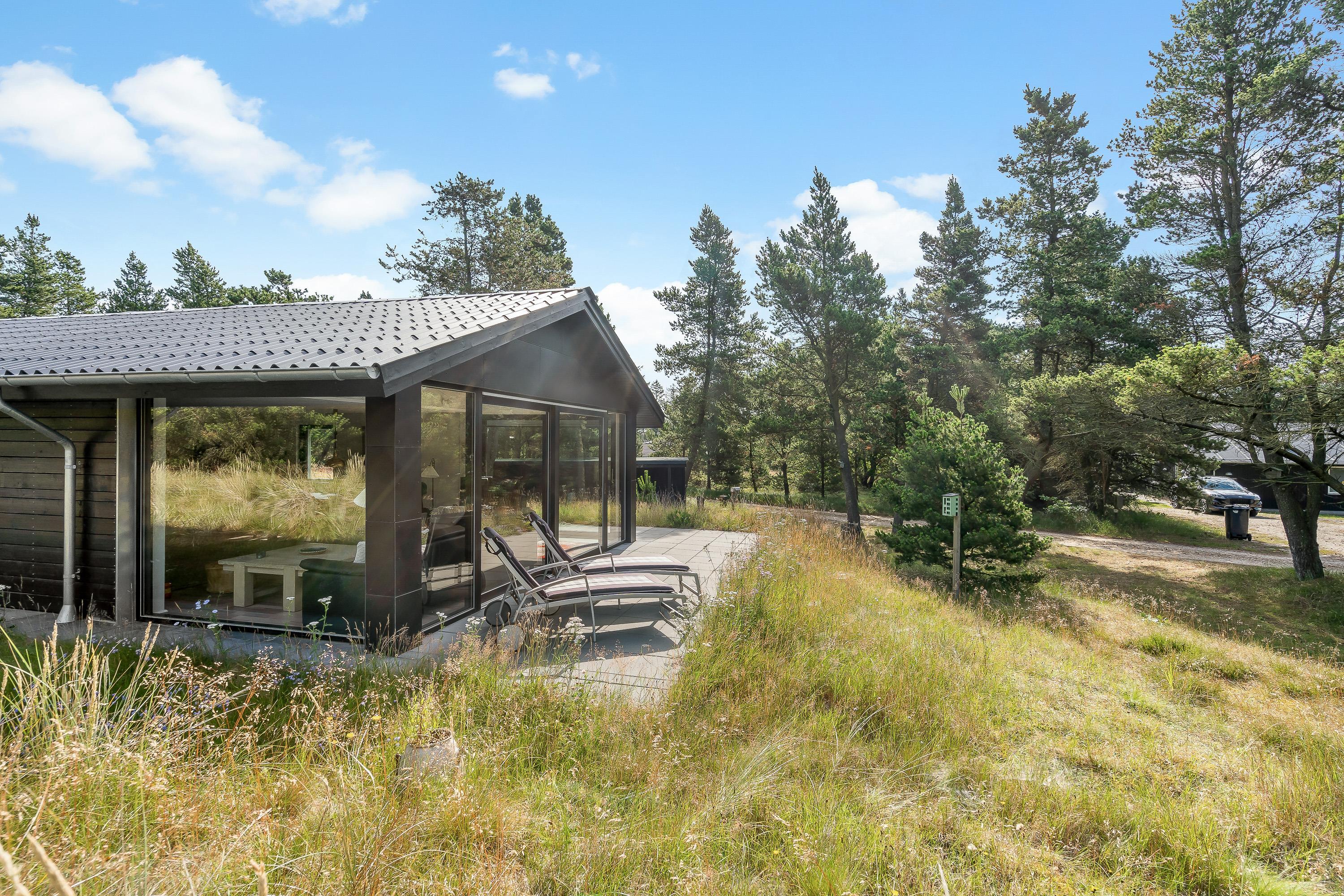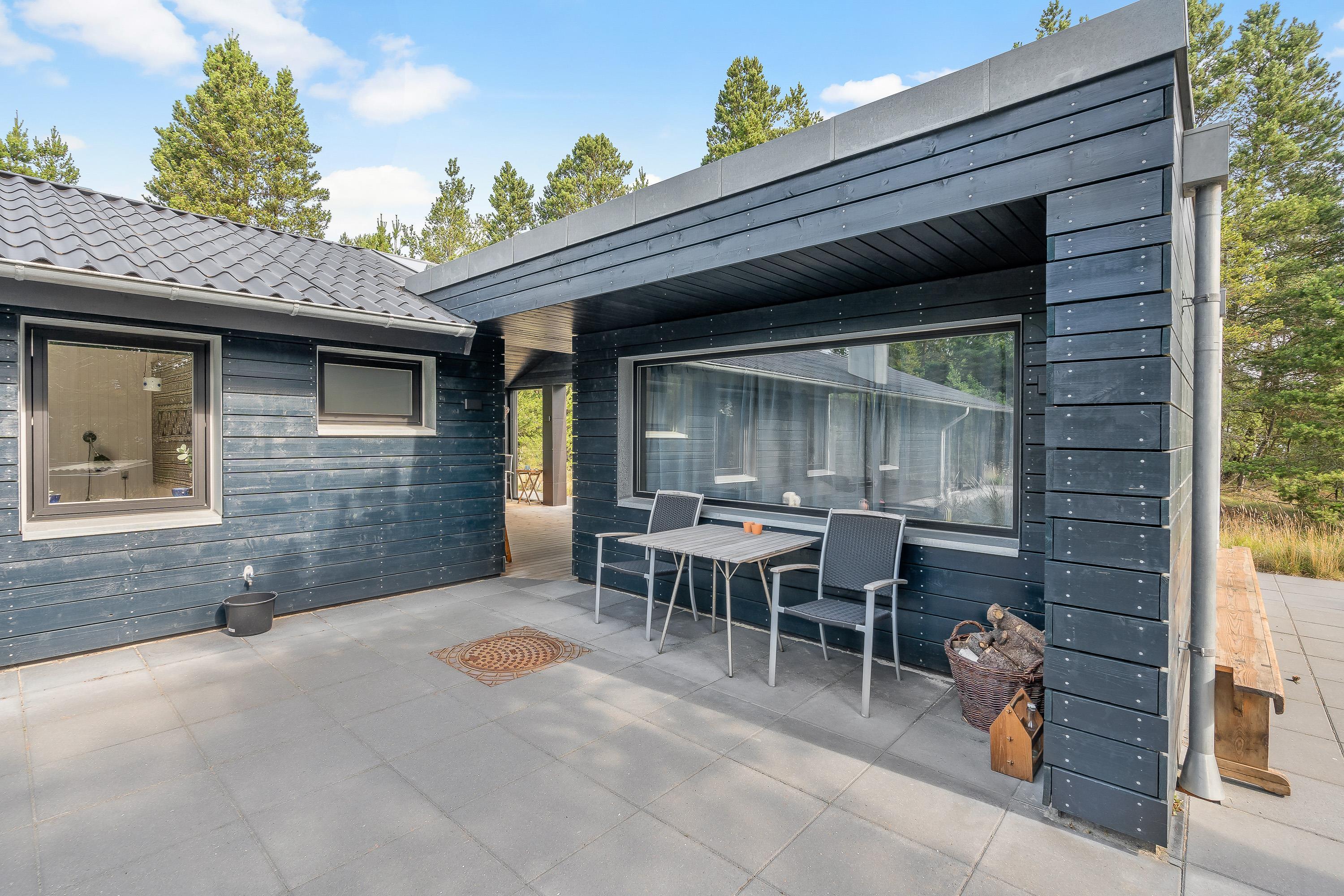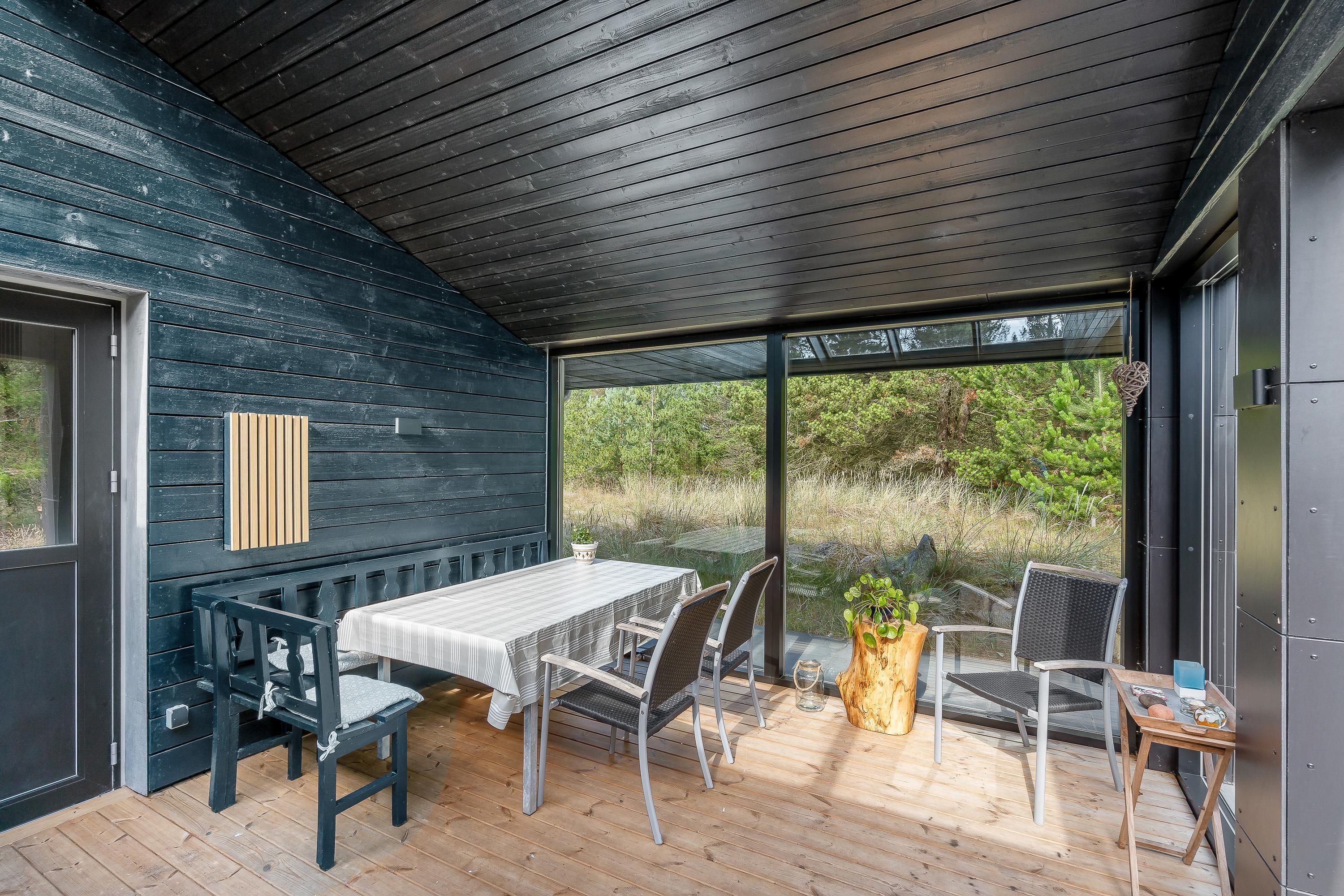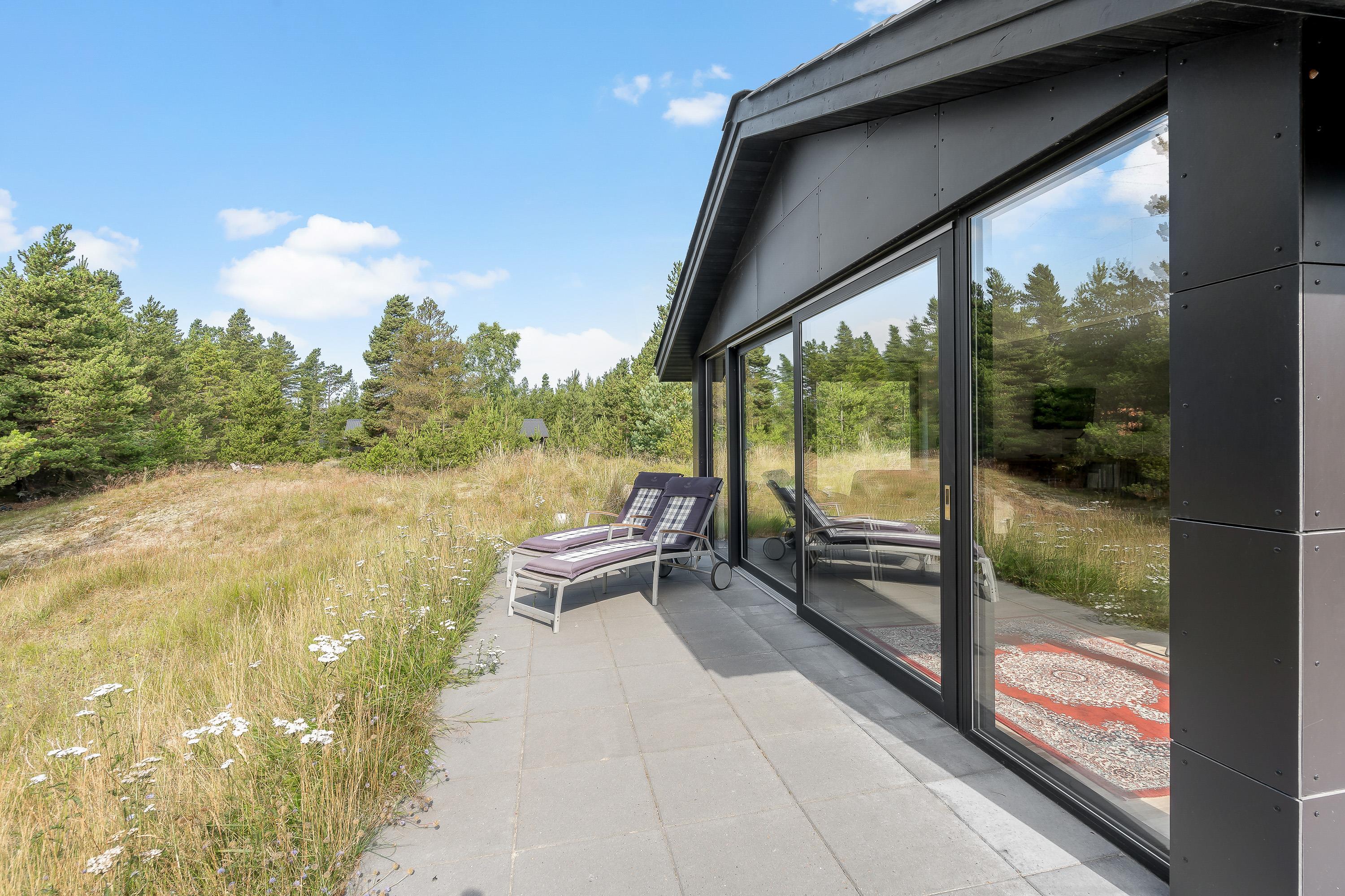Sommerhuset har flere skønne terrasser, som I kan nyde de solrige feriedage fra. På den åbne terrasse kan I læne jer tilbage i havemøbler og liggestole på en plads, hvor I kan nyde solens varme stråler.