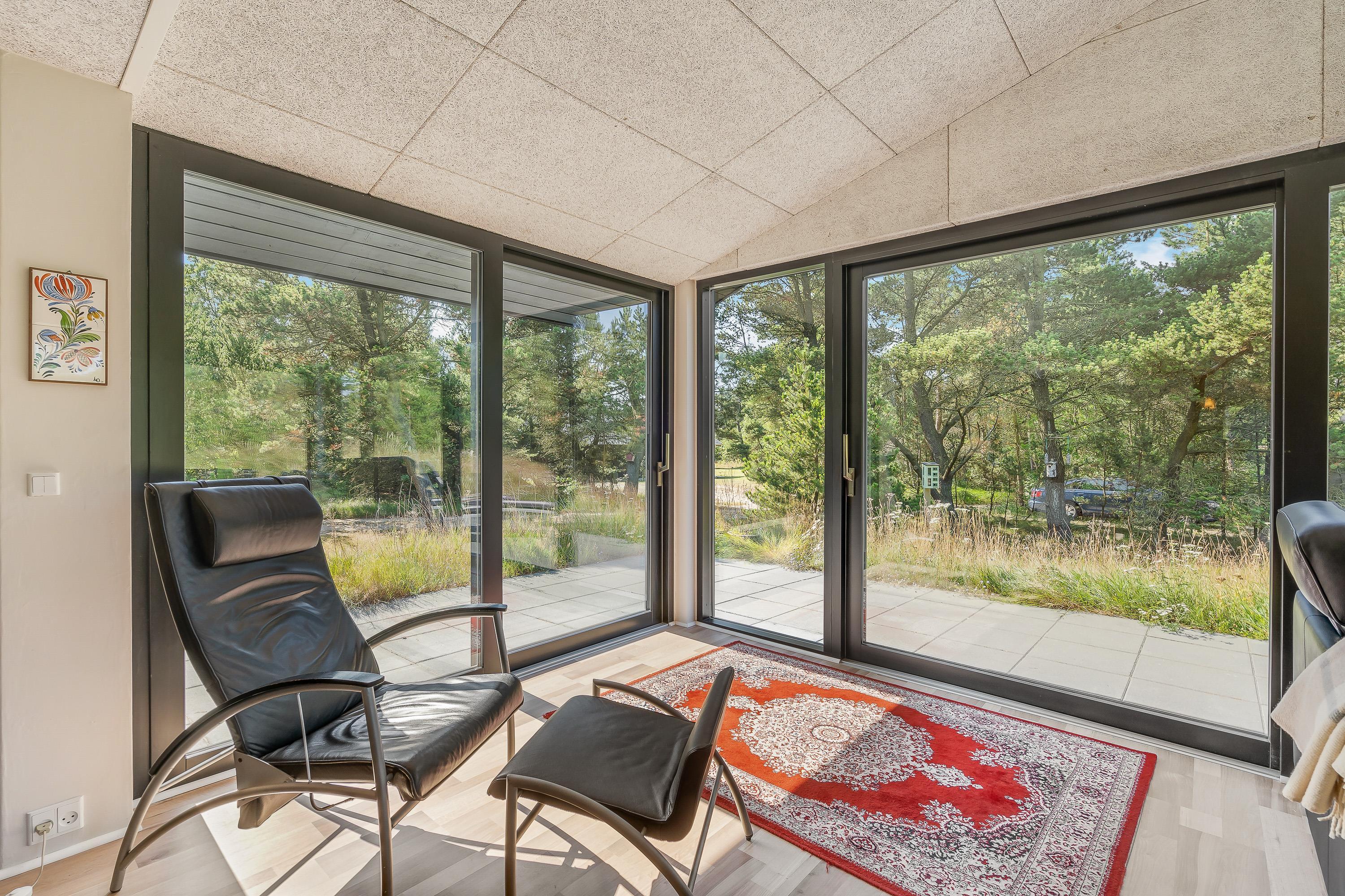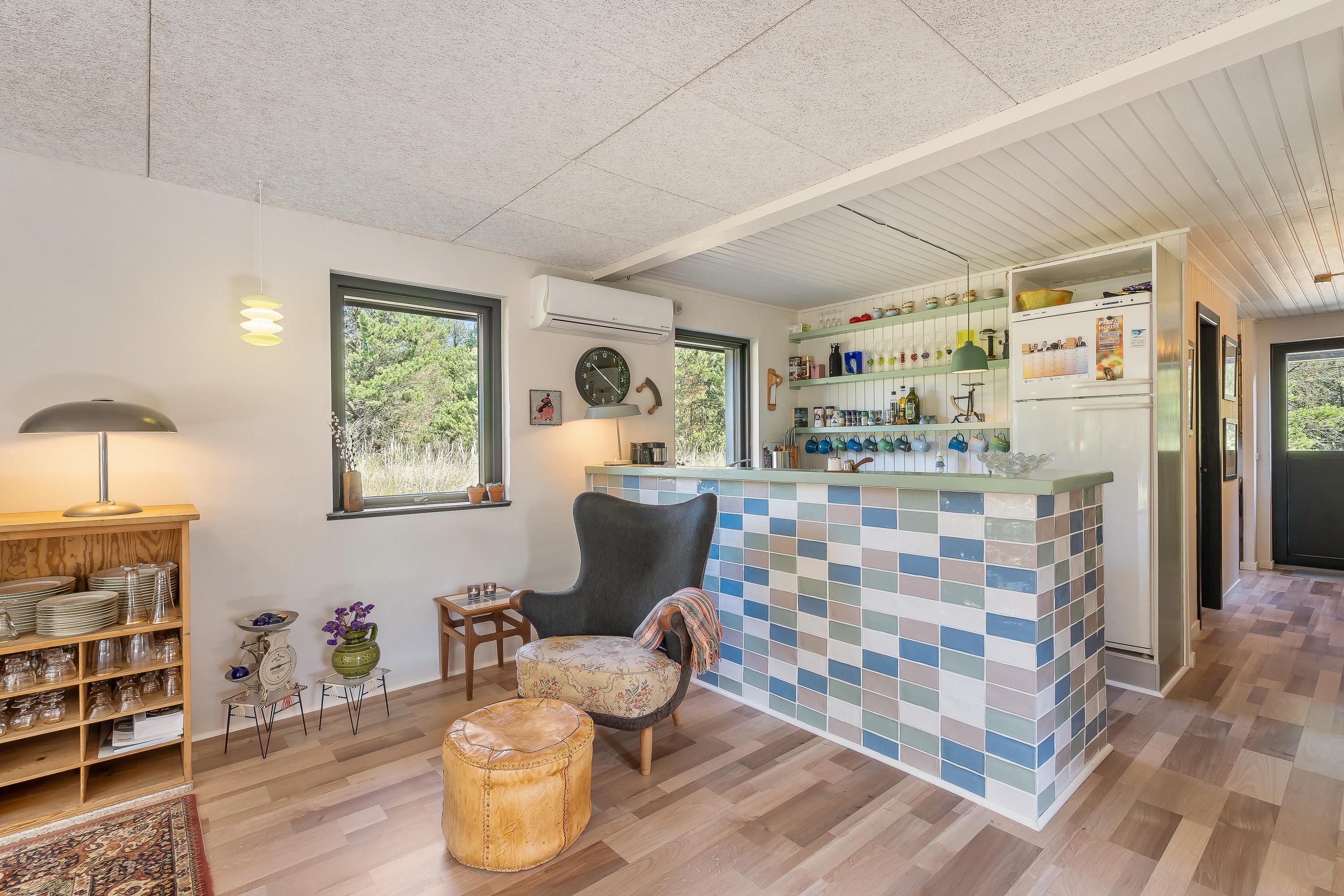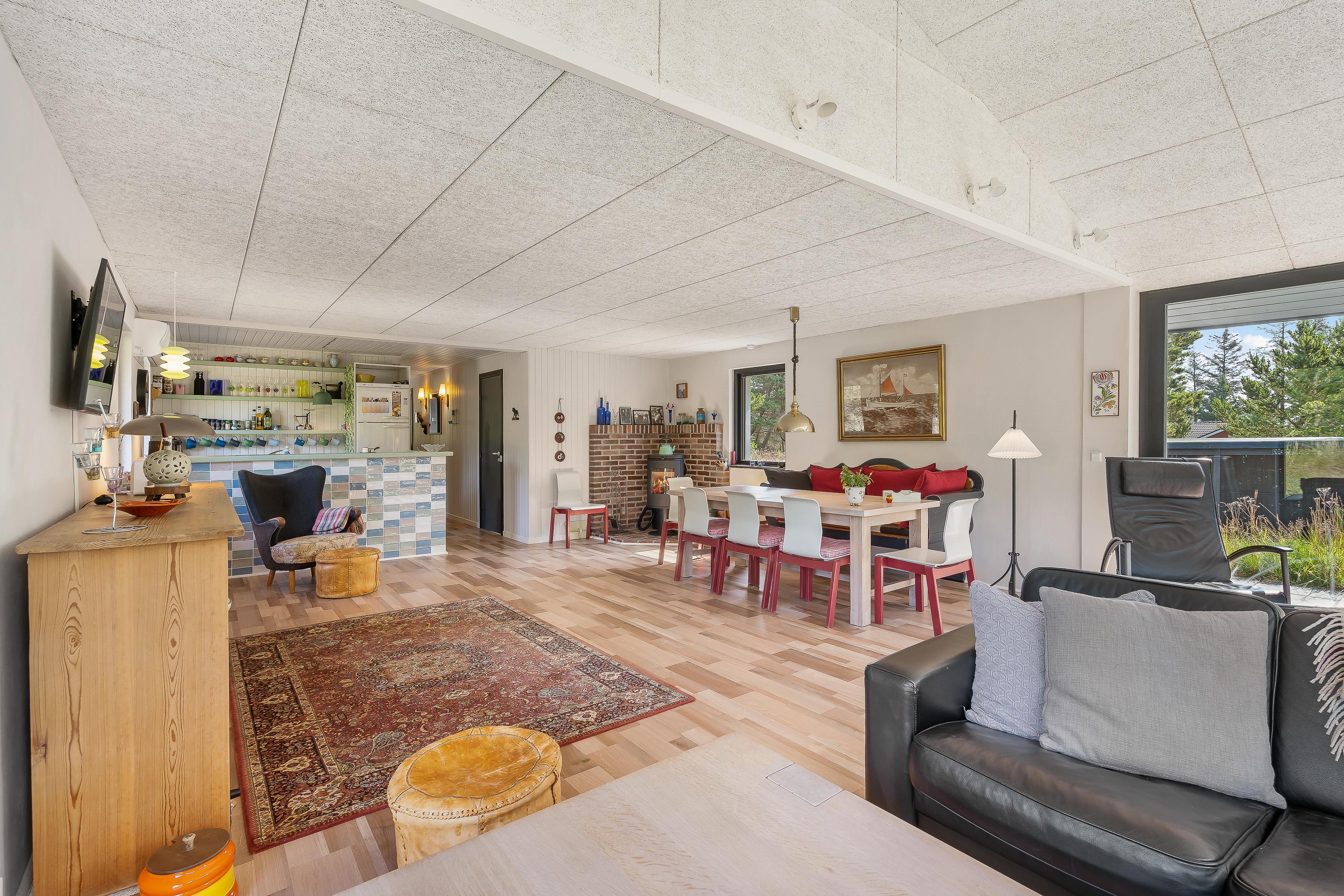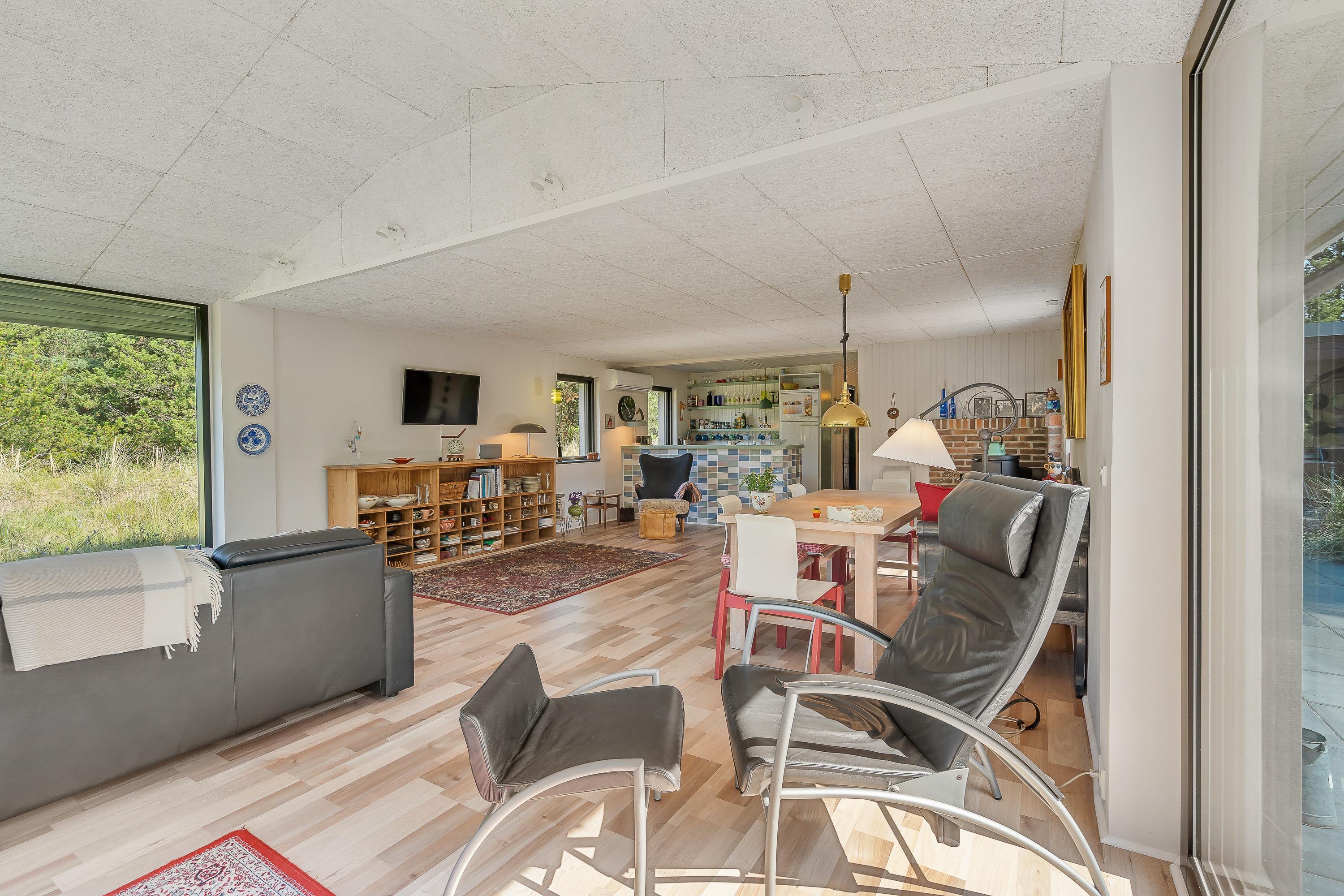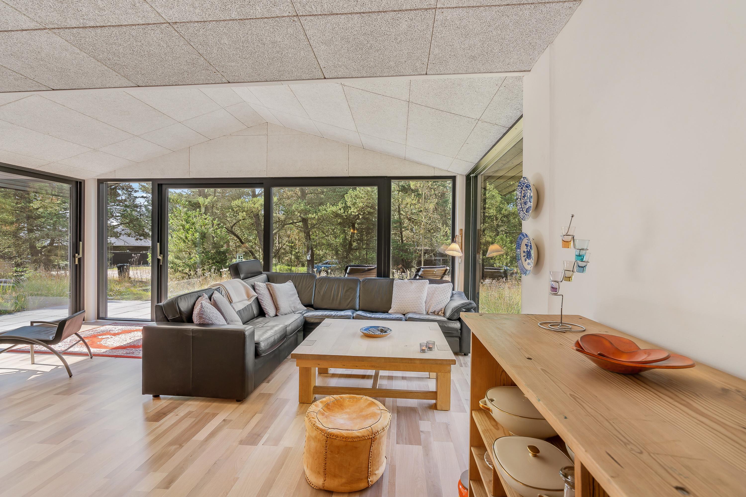 I sommerhuset udgør alrummet hjertet, hvor I helt sikkert vil tilbringe mange hyggelige stunder med spil, film og madlavning i løbet af ferien. I alrummet er der et godt lysindfald fra de store vinduespartier, der samtidig giver jer et skønt kig til den omkringliggende natur.