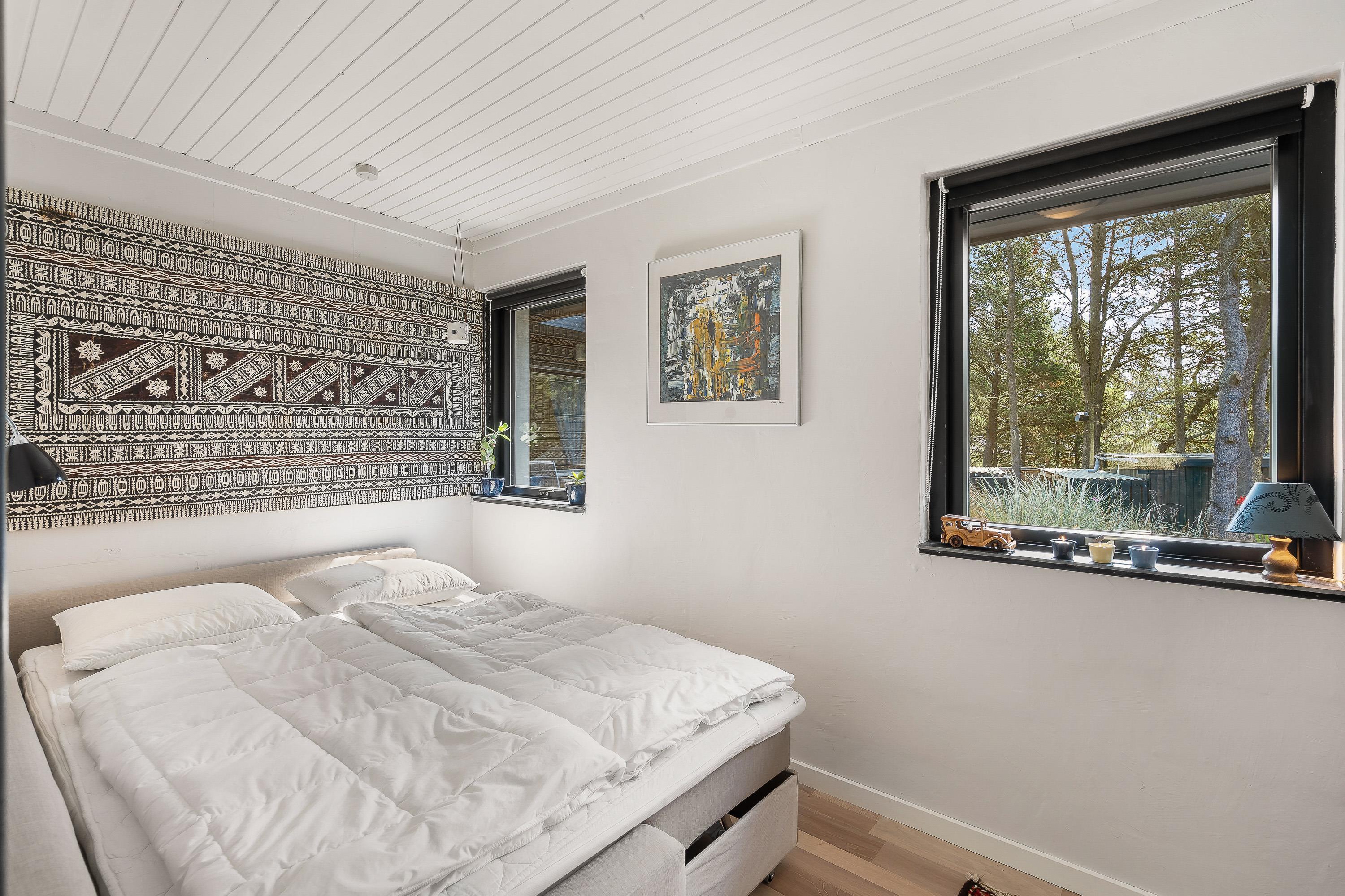 Sommerhuset på Bugten 5 i Mosevrå byder desuden på 2 gode soveværelser, hvor I kan samle ny energi efter en god feriedag. Der er en dobbeltseng på hvert af soveværelserne. Næste morgen begynder uden kolde fødder, da der er gulvvarme på badeværelset.