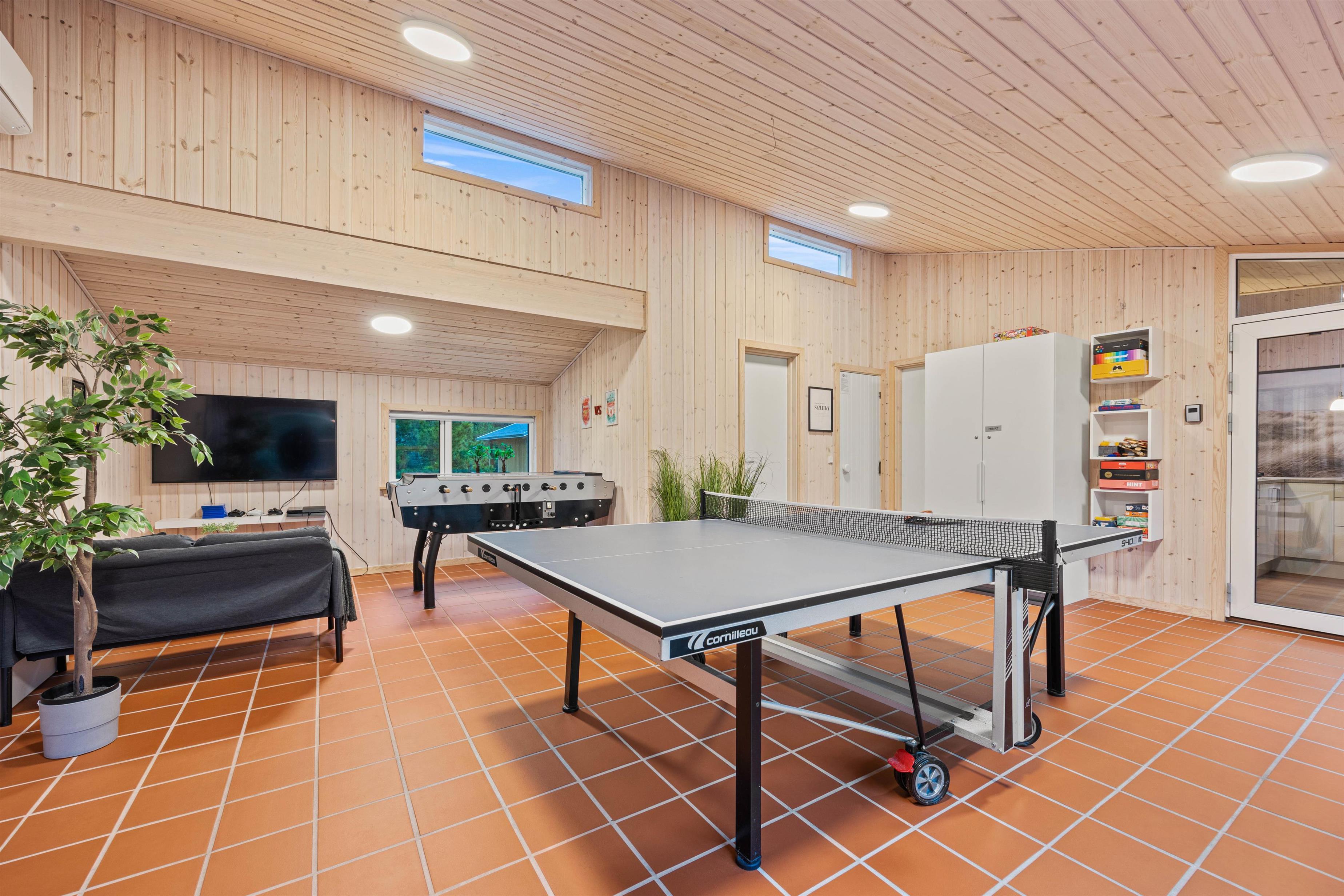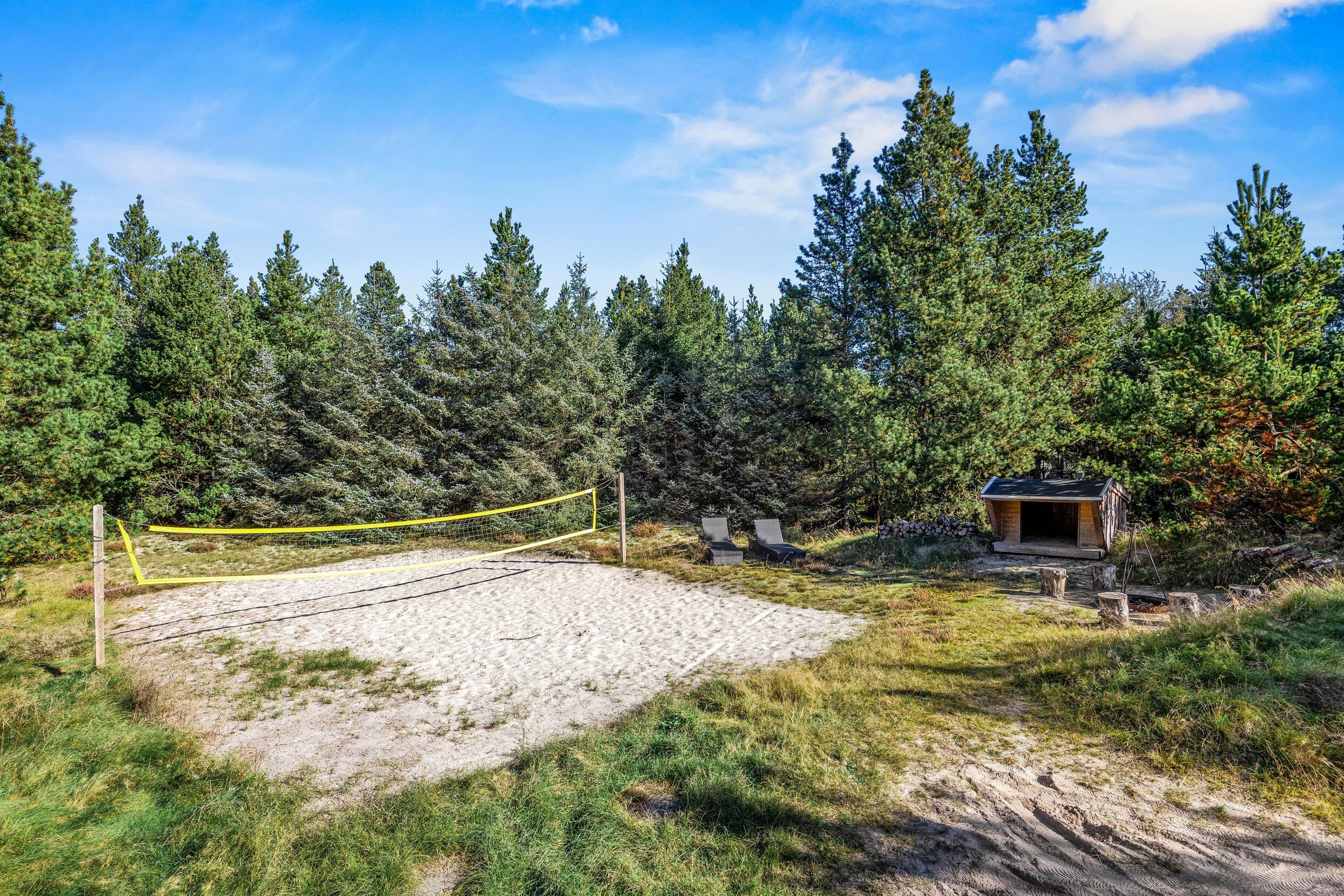 Sommerhusets placering på en naturgrund er ideel til jer som vil nyde roen og naturen, men stadig ikke gå på kompromis med aktiviteter og komfort. Sommerhuset tilbyder en række faciliteter for både afslapning og aktion. I sommerhusets aktivitetsrum finder I både et bordtennisbord og et bordfodboldspil, som altid er en sjov aktivitet for både børn og voksne. Hvis I hellere vil være aktive udenfor, så byder sommerhuset på en beachvolleybane, hvor I kan spille sammen langt ud på de lyse sommeraftener, og slutte af med at nyde en lækker grillaften under åben himmel, hvor I måske er så heldig at spotte et af de mange flotte dyr, som går rundt i naturen. I kan også tilbringe en nat i husets shelter.