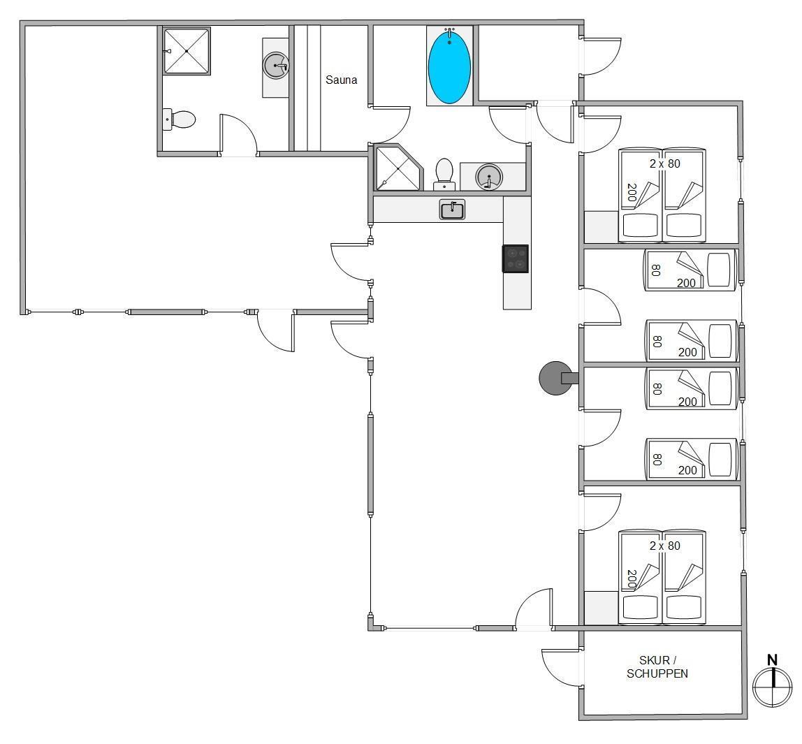 Med 4 soverum har alle i familien eller vennegruppen deres eget private rum at trække sig tilbage til - og skulle nogle have lyst, er der også et shelter i haven. Med plads til op til 8 personer er der rig mulighed for, at I kan rejse en større gruppe sammen uden at gå på kompromis med komforten. Ved at vælge dette sommerhus i Mosevrå sikrer I jer et mindeværdigt ophold fyldt med afslapning, hygge og spændende aktiviteter for alle aldre.