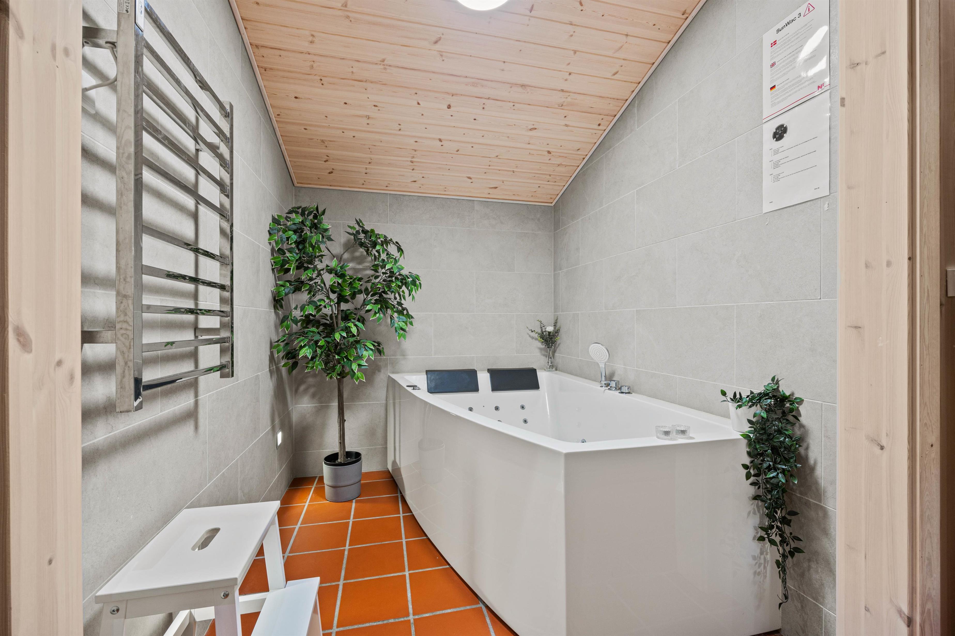 Når I trænger til lidt wellness efter jeres aktiviteter, så finder I det i form af en spa og sauna på det store badeværelse. Her kan I slappe af og nyde et glas vin efter en skøn dag.