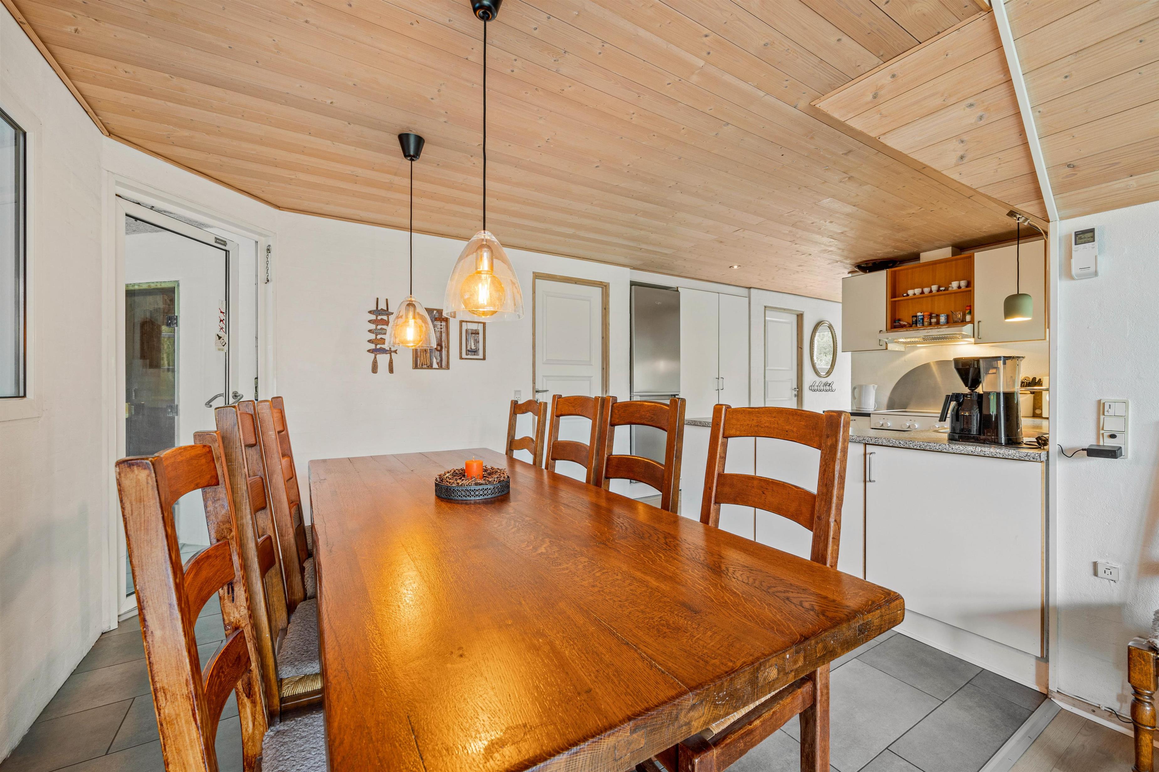 Køkken, stue og spiseplads ligger i åben forbindelse i sommerhusets alrum. Alrummet indbyder til mange hyggelige feriestunder med madlavning, spil og film. Brændeovnen sørger for, at den hyggelige feriestemning er i top. Skønt er her også et bordfodboldbord, hvor I kan finde feriens bedste spiller.