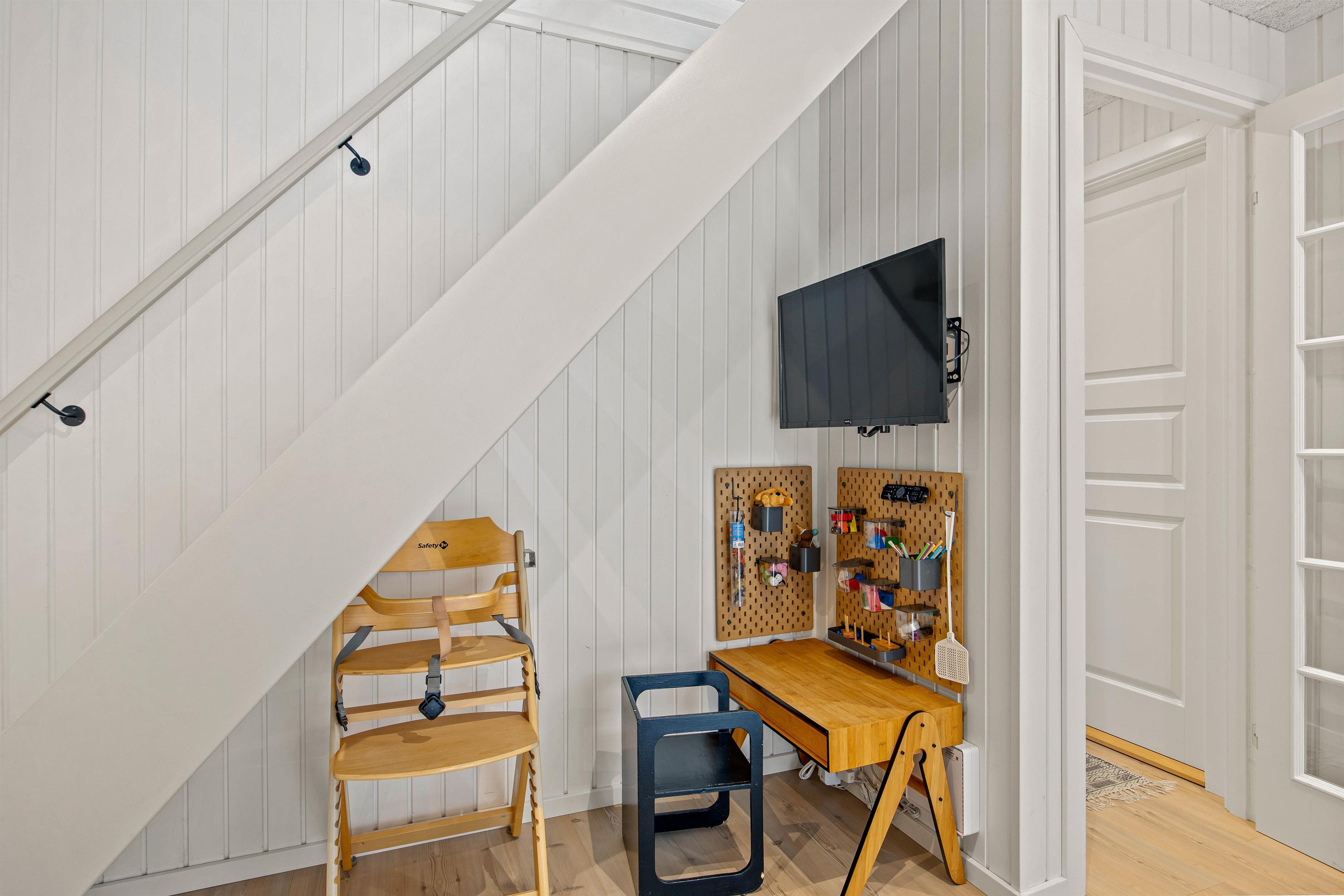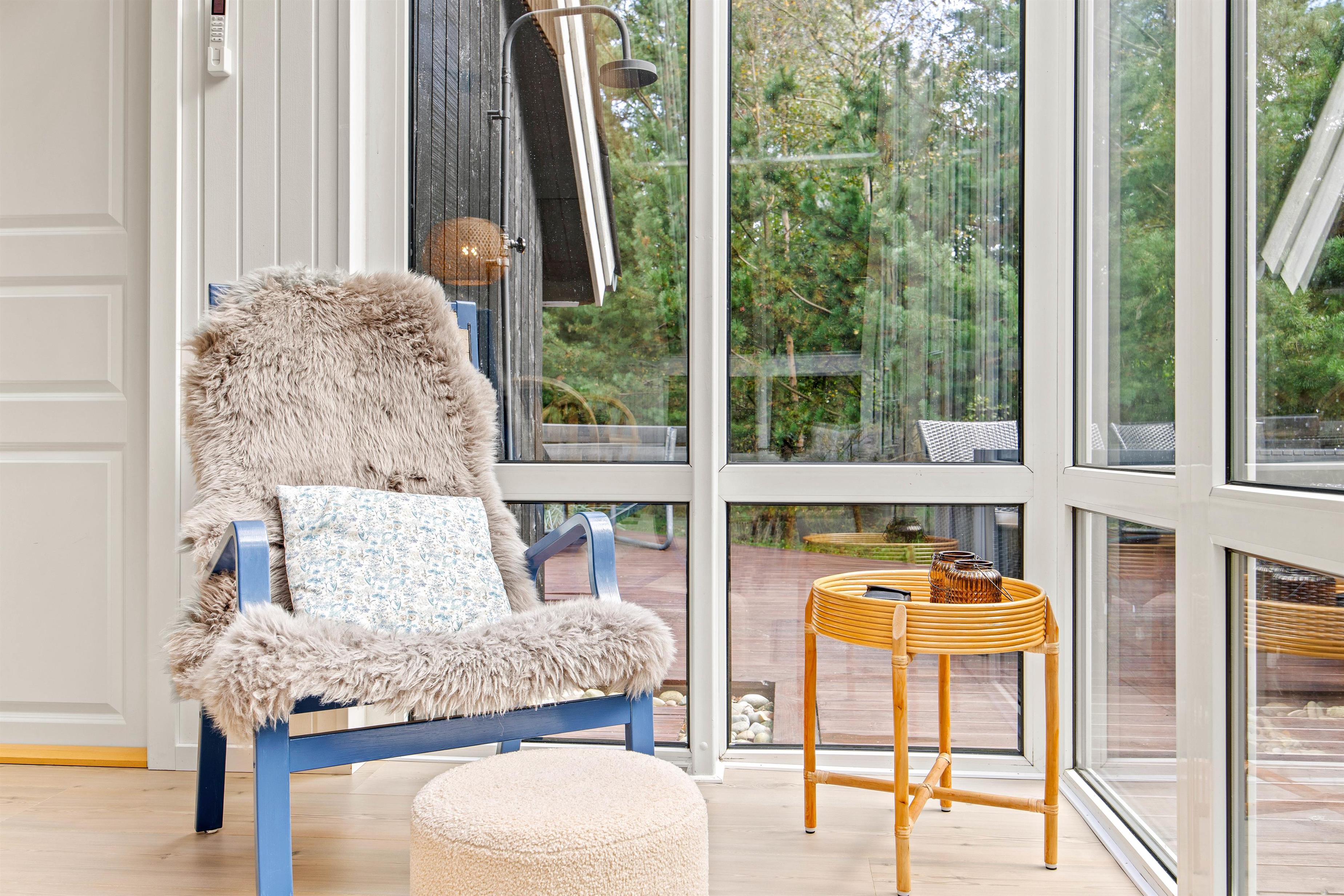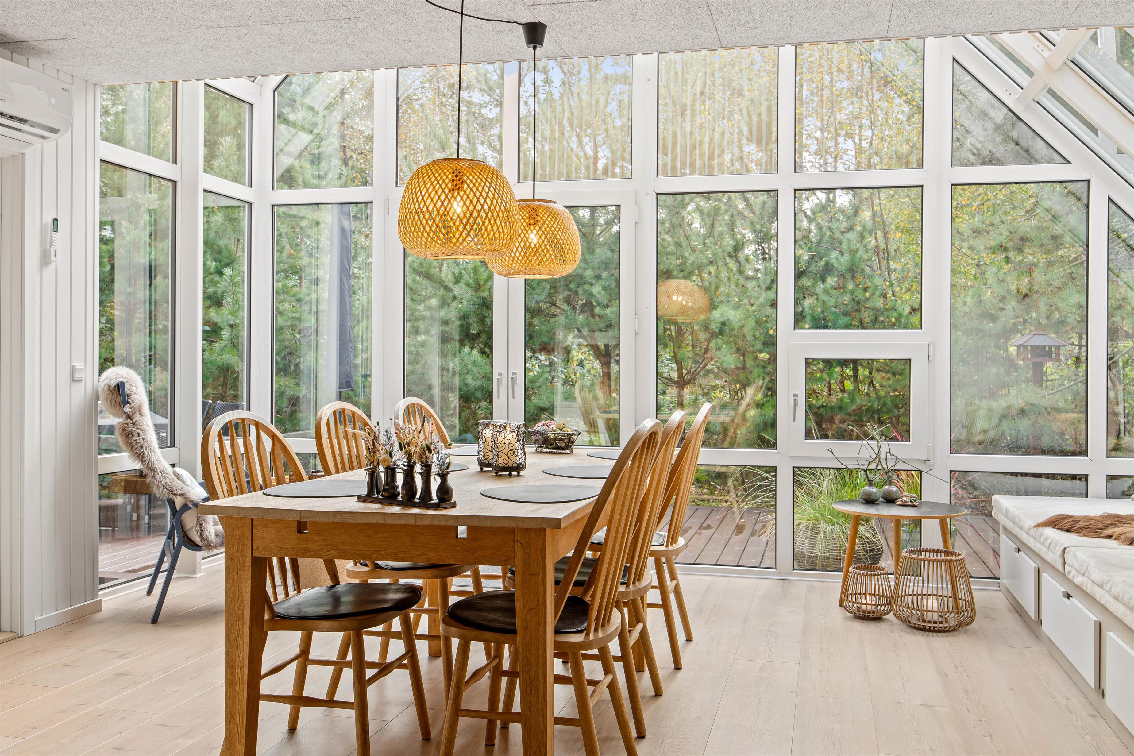 I sommerhusets stue kan I samles til hyggelige feriestunder for hele familien. Her kan I blandt andet samles foran tv’et og streame jeres yndlingsfilm via Chromecasten. I stuen er der en energibesparende varmepumpe, der sikrer, at I altid har et godt indeklima på ferien.