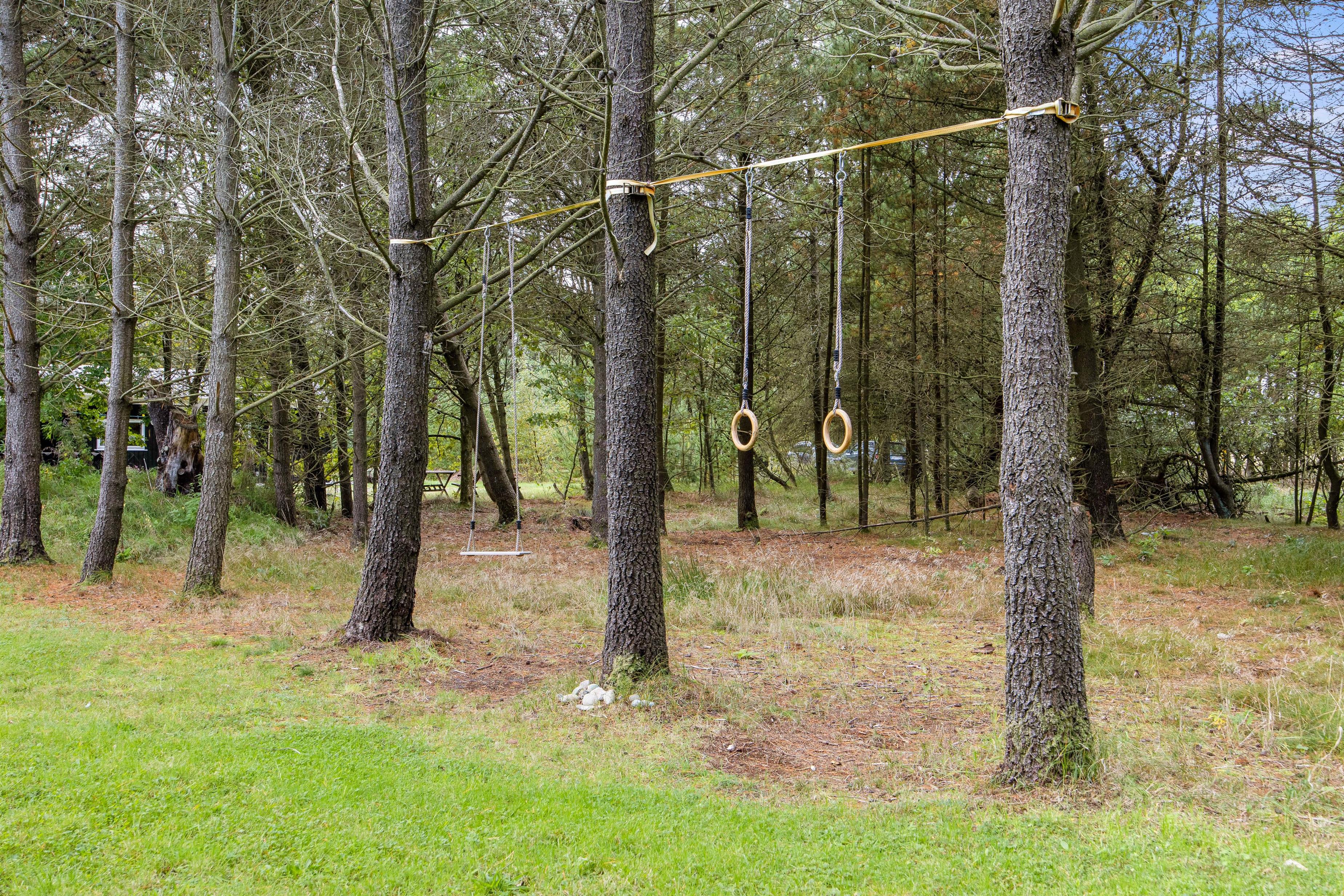 Der er selvfølgelig også tænkt på feriens yngste gæster. Til dem er der både en sandkasse og en gynge, de kan få glæde af, når I holder ferie i sommerhuset på Dalen 24 i Mosevrå.