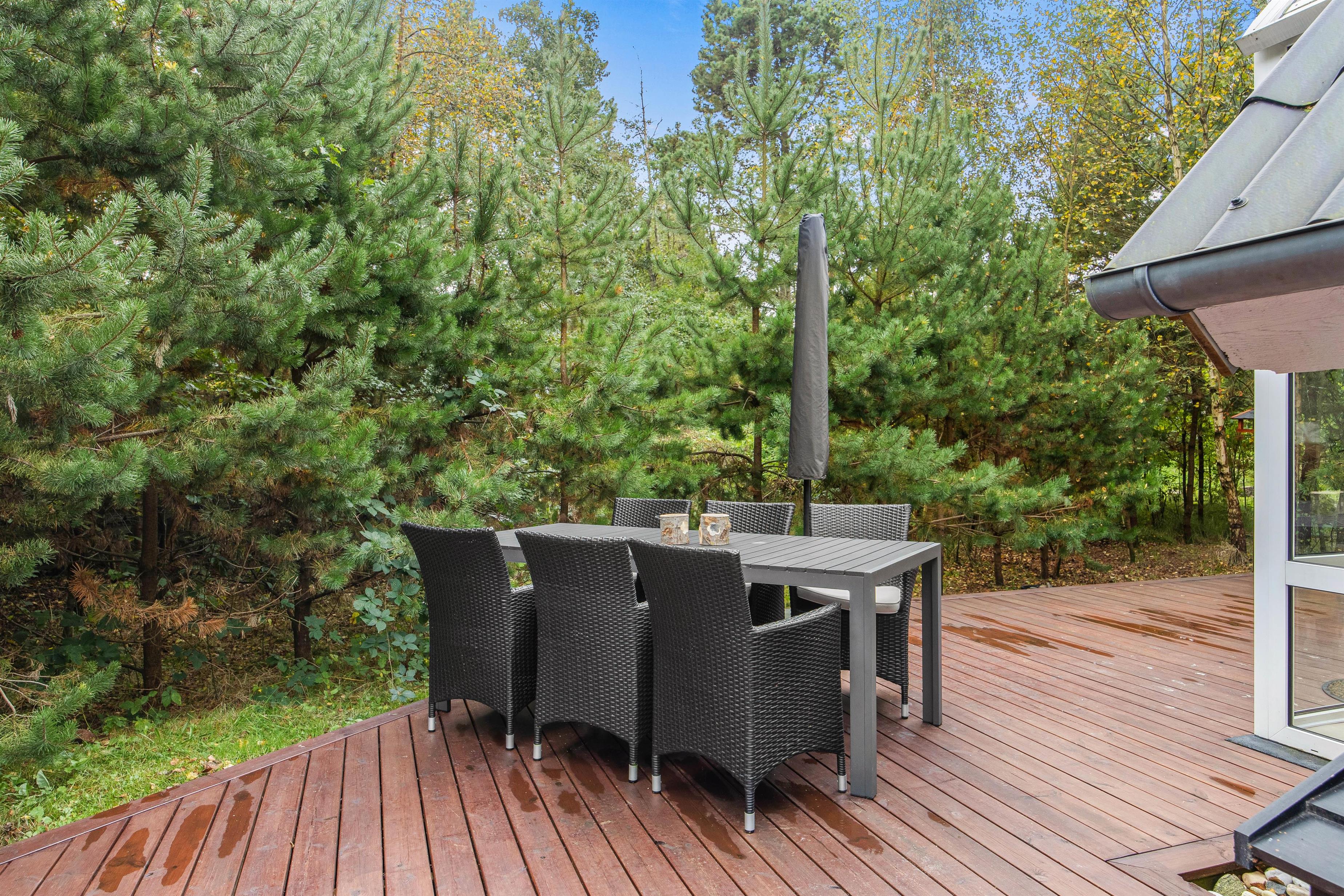 Dejligt udeområde med vildmarksbad, udesauna, udebruser og åben terrasse