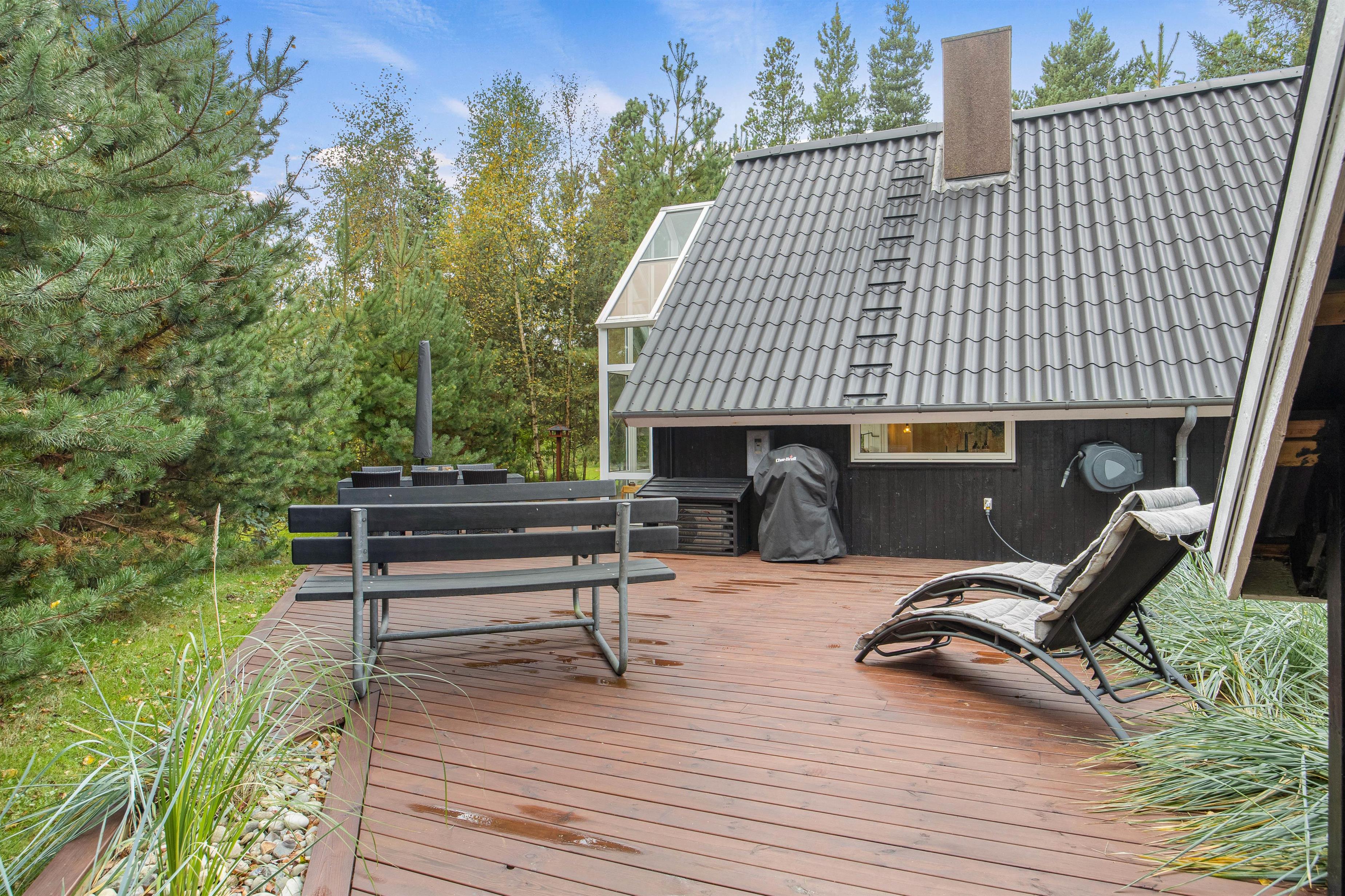 Udendørs har I også en åben terrasse, hvor der står både havemøbler og liggestole til rådighed for jer, så I kan finde jer godt til rette på et dejligt solspot. På terrassen har I også en grill, som I kan tilberede lækre grillmiddage på under jeres ferie.