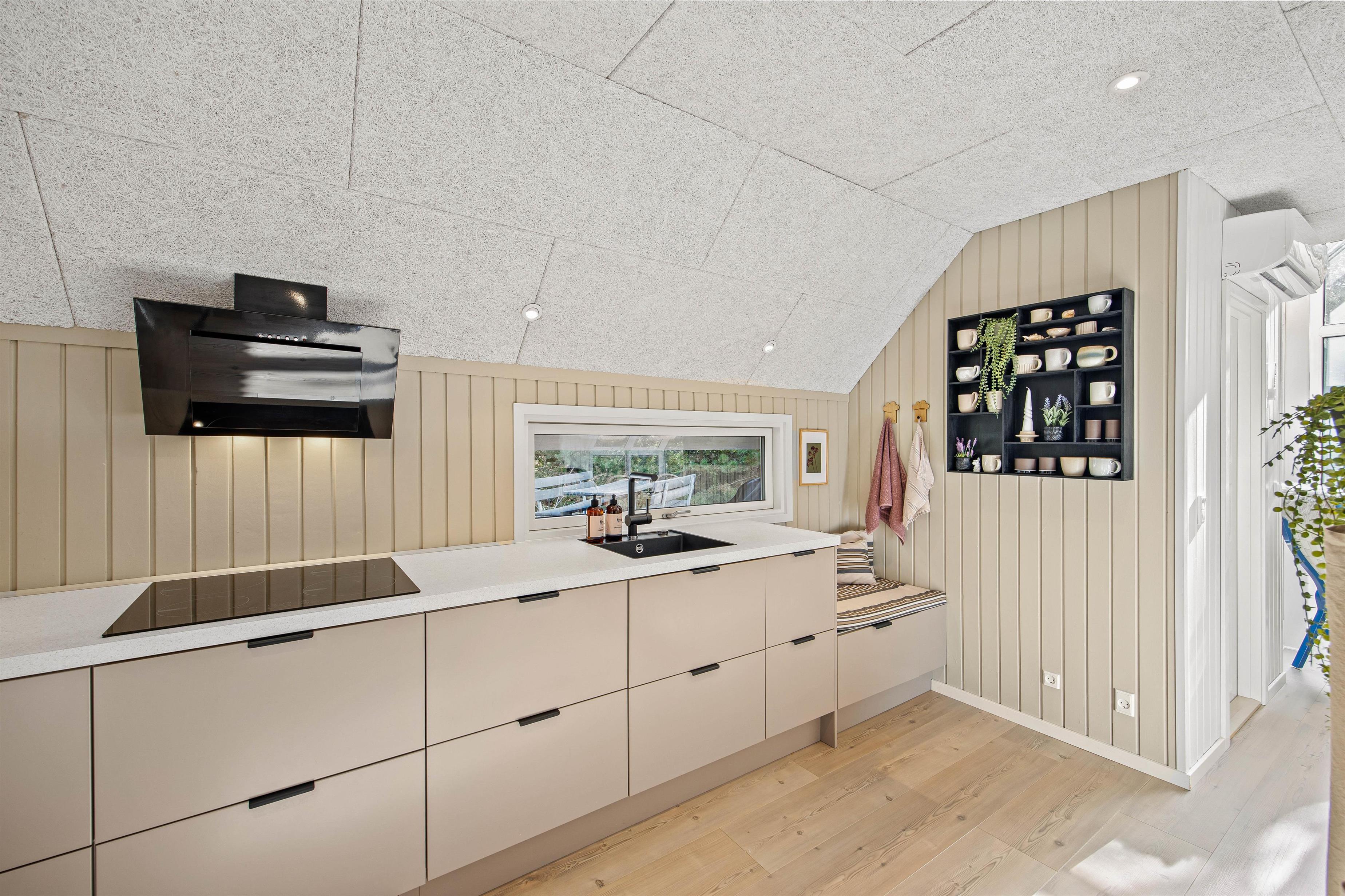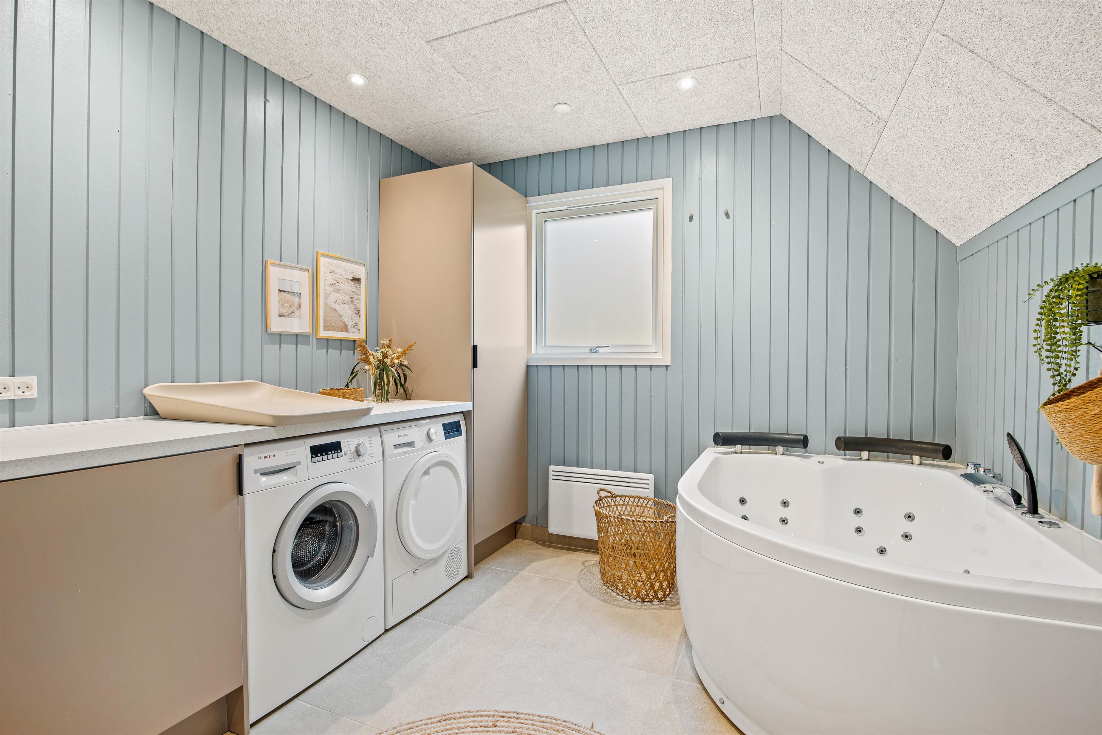 Sommerhuset er udstyret med gode praktiske faciliteter i form af opvaskemaskine, vaskemaskine og tørretumbler, og derfor slipper I for at skulle bruge en masse af jeres ferietid på praktisk husarbejde.