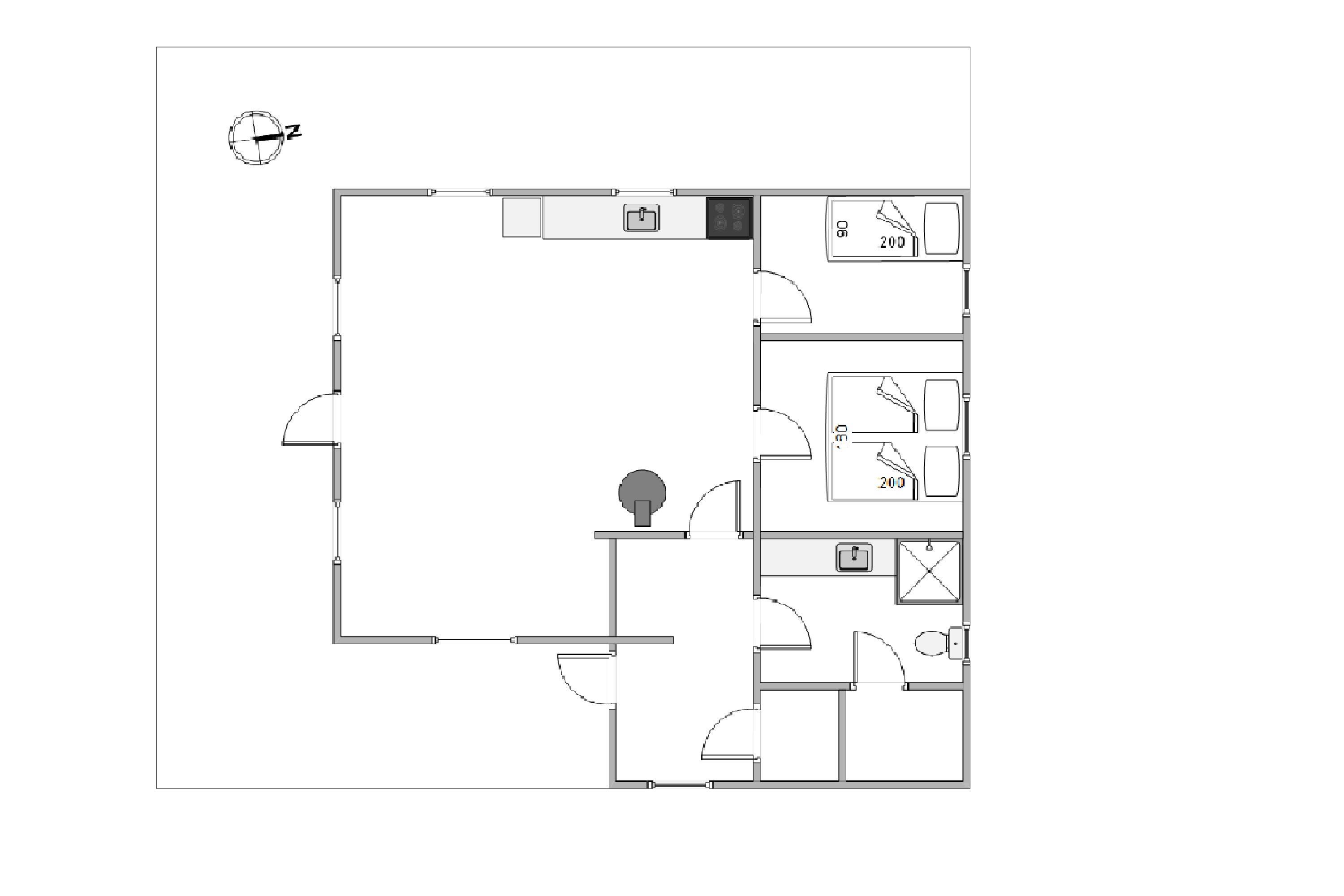 De 54 m2 er godt udnyttet og rummer 2 soveværelser med i alt 3 sovepladser, et godt badeværelse, et stort opholdsrum med køkken, spisebord, hyggekrog og stue. Midt i rummet sørger brændeovnen for varme og hygge, men benyt også den energibesparende varmepumpe.