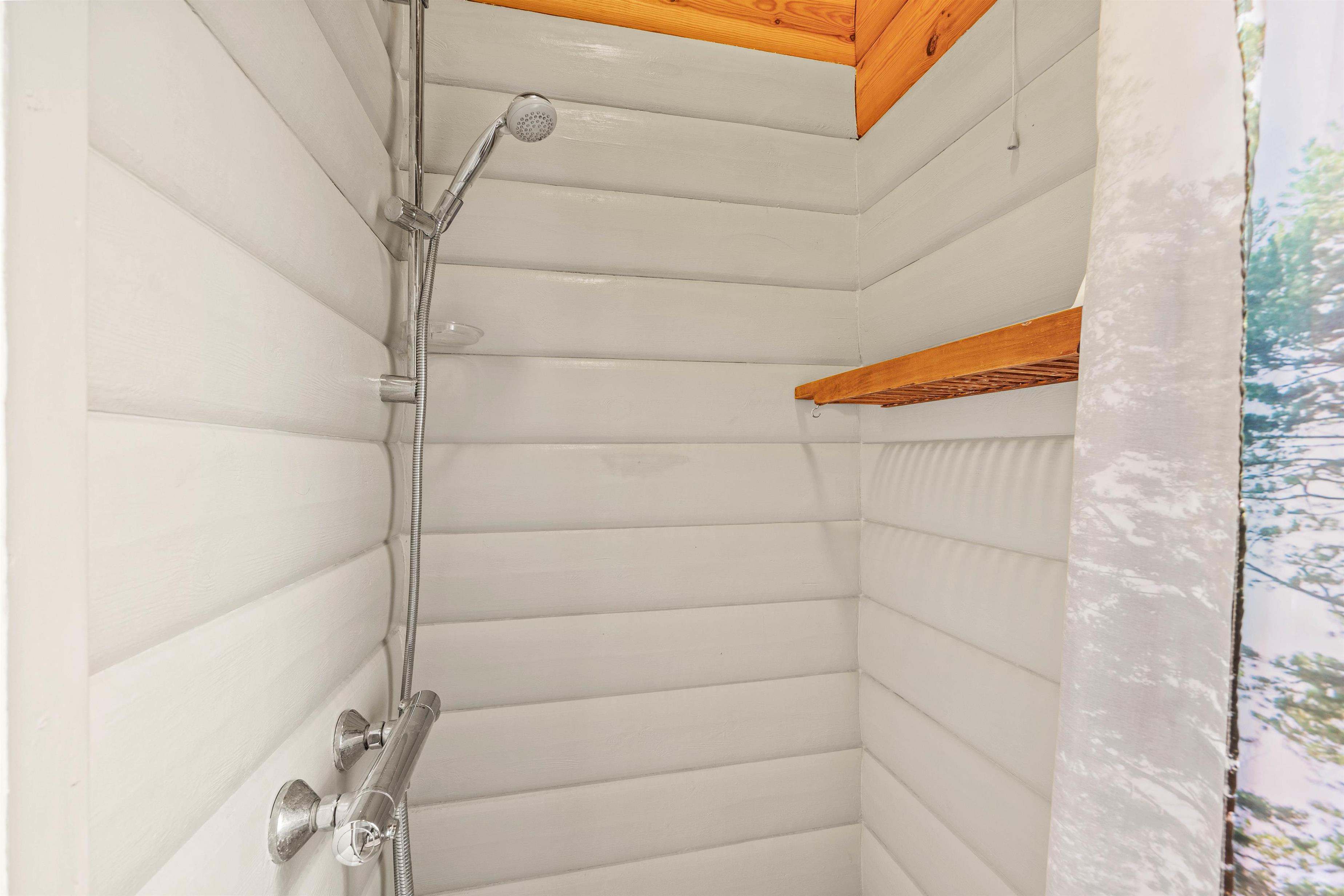 Omkring feriehuset er der en dejlig delvist overdækket træterrasse, hvor måltiderne kan tilberedes på grillen. Nyd en god bog, en lille middagslur på liggestolene i solen eller i hængekøjen i træernes skygge, alt efter hvad I foretrækker. Det lille shelter indbyder til en overnatning i det fri, eller bare lidt aftenhygge ved bålet, hvor I kan kigge på stjerner og måske se et stjerneskud.