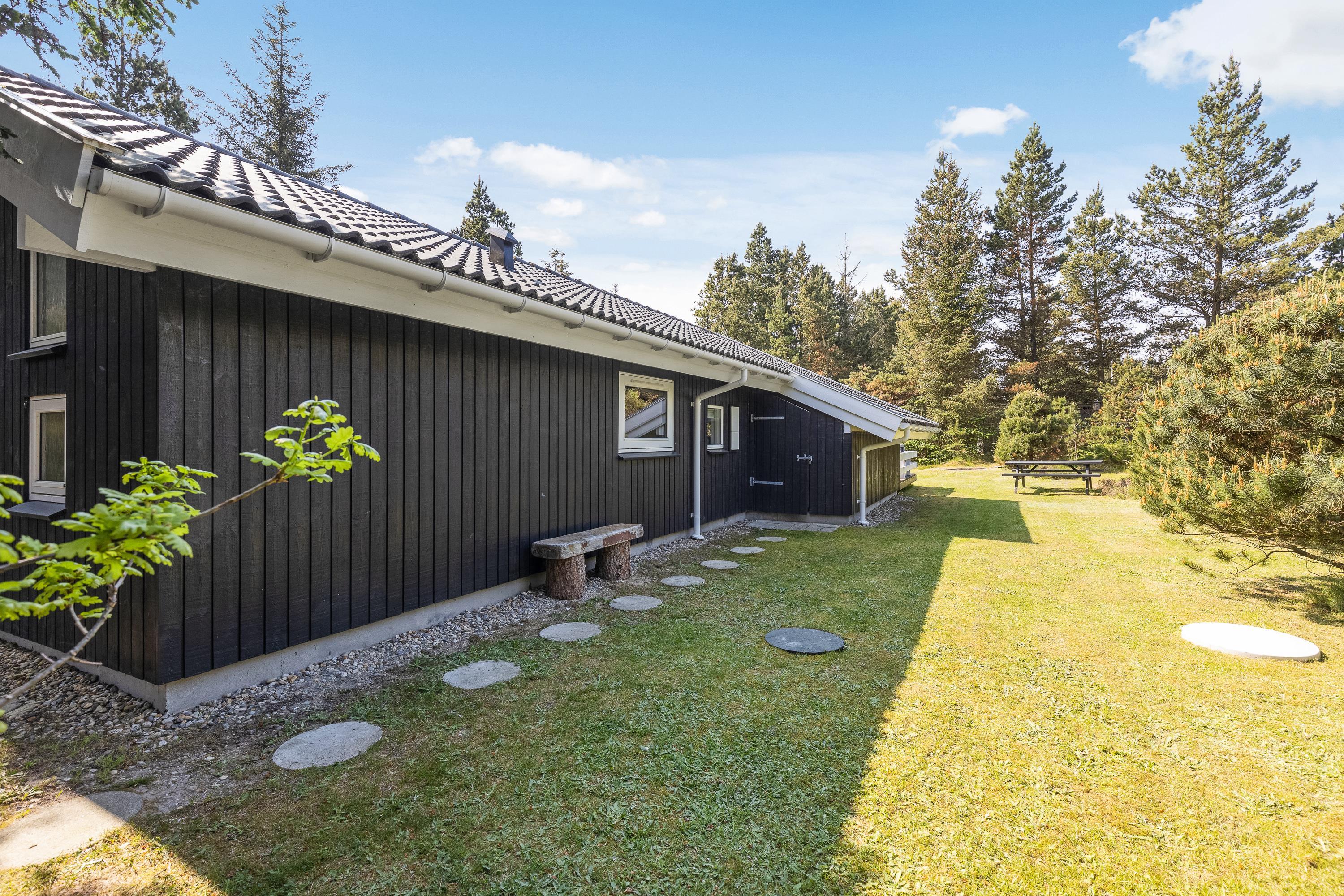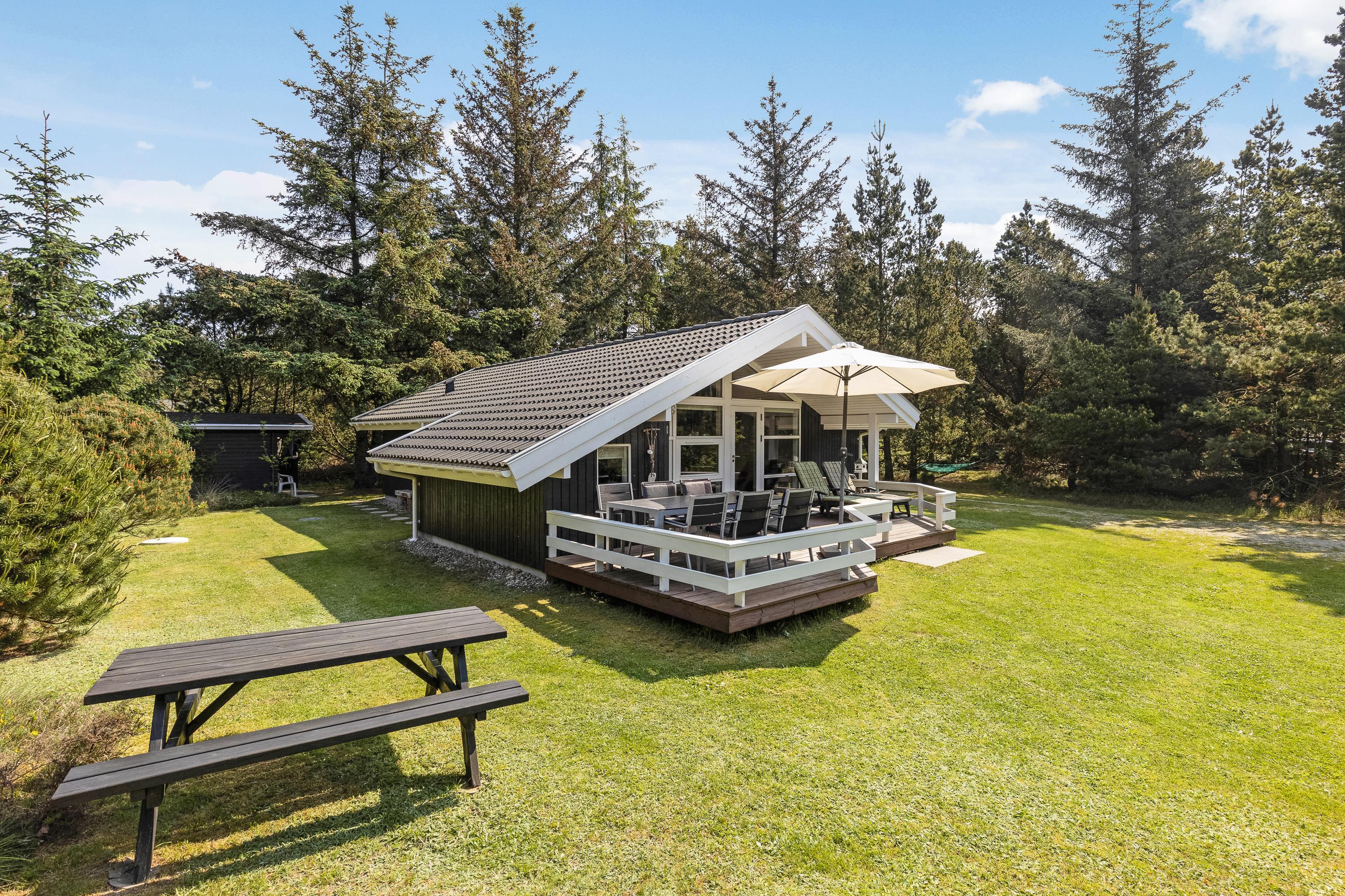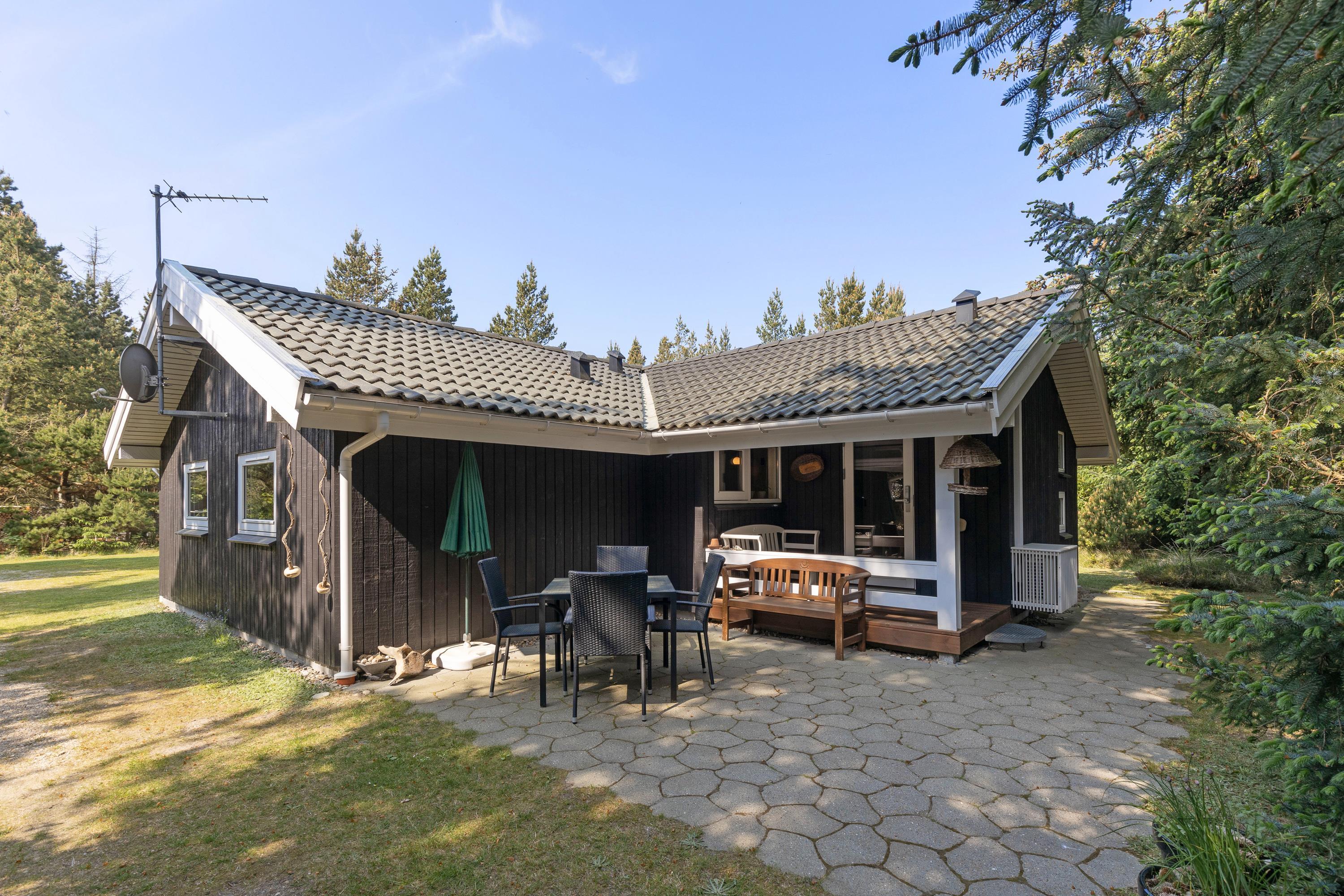 Dette moderne og smukke sommerhus står klar til jer! Sommerhuset har plads til 6 personer og sætter rammerne for en perfekt ferie i det vestjyske. I bliver med det samme fan af både sommerhusets indre og ydre. Og ikke mindst den ugenerede grund bliver et hit, da I kan få lov at nyde jeres ferie i fred. Yderligere har sommerhuset 2 terrasser, som sikrer, at I altid kan finde et solspot. I det omkringliggende skovområde finder I også en hængekøje, og i haven er der sandkasse og gynge til familiens mindste.