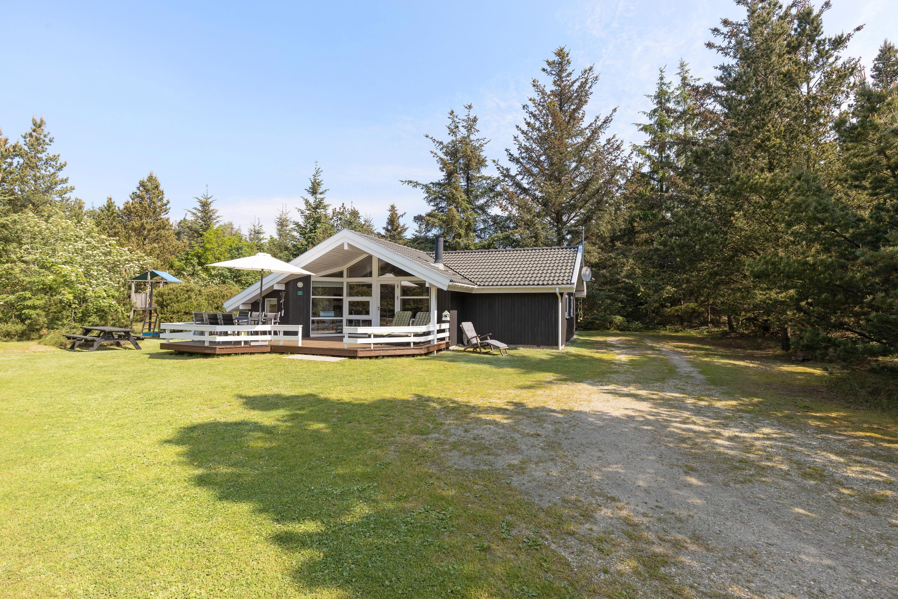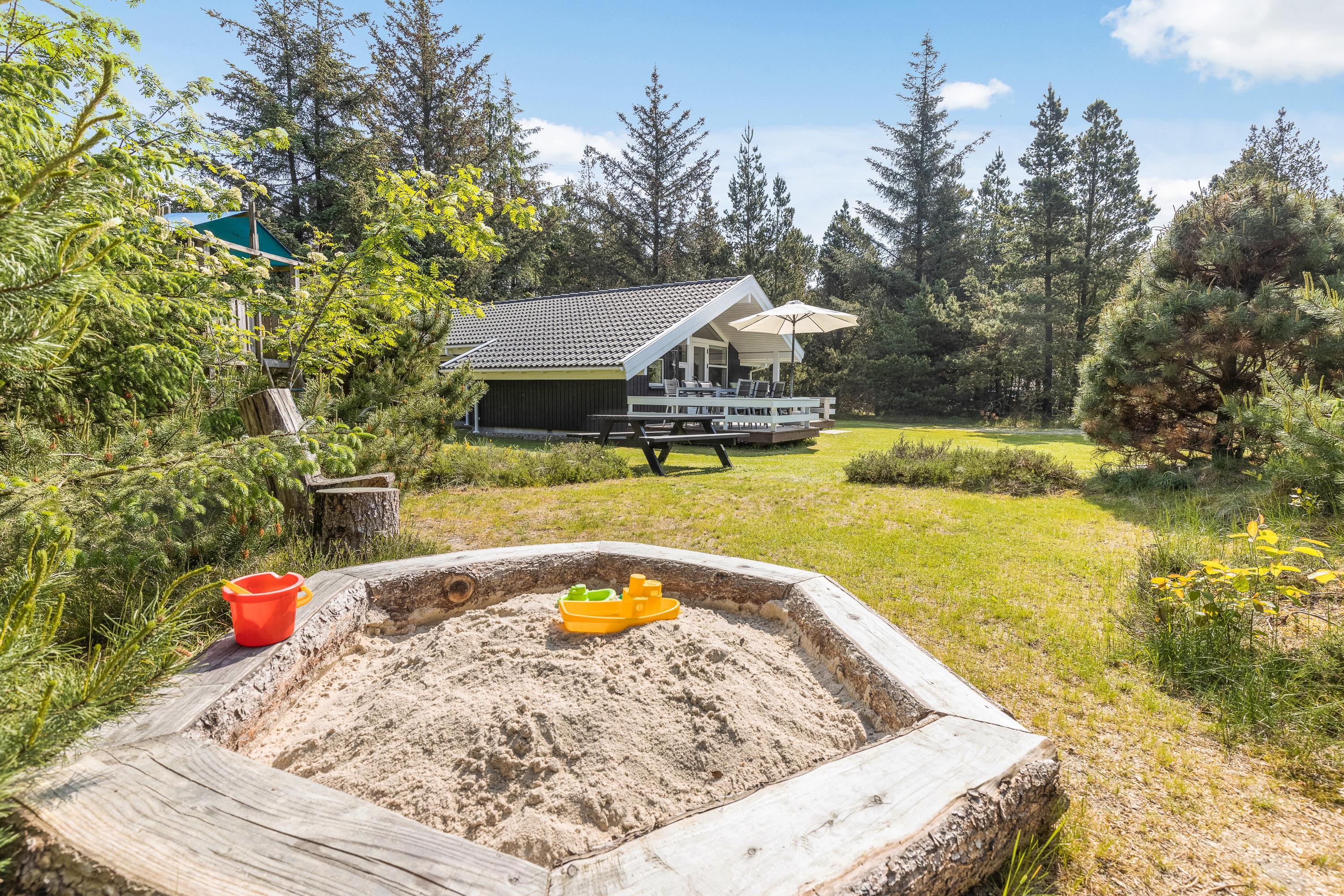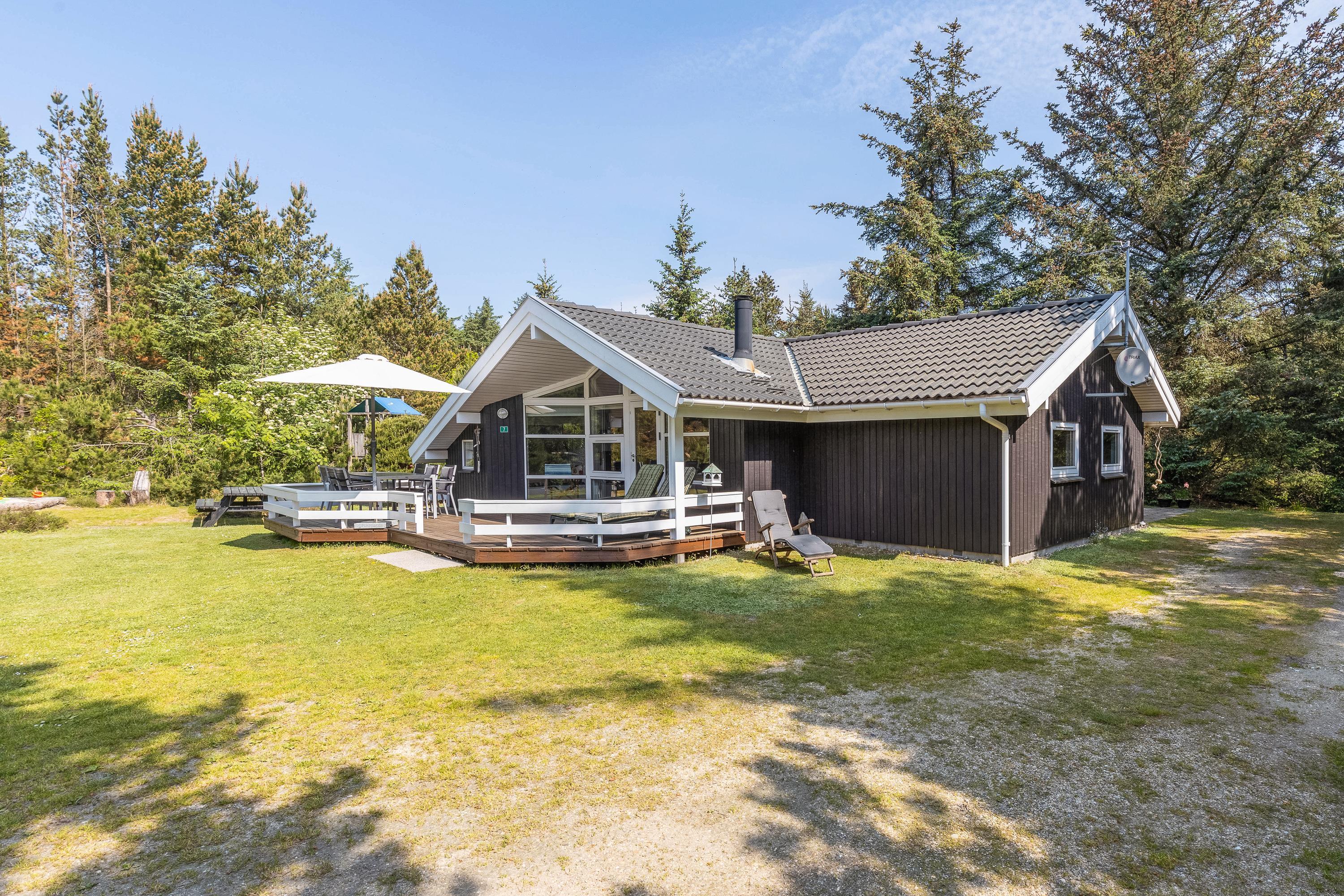Dette moderne og smukke sommerhus står klar til jer! Sommerhuset har plads til 6 personer og sætter rammerne for en perfekt ferie i det vestjyske. I bliver med det samme fan af både sommerhusets indre og ydre. Og ikke mindst den ugenerede grund bliver et hit, da I kan få lov at nyde jeres ferie i fred. Yderligere har sommerhuset 2 terrasser, som sikrer, at I altid kan finde et solspot. I det omkringliggende skovområde finder I også en hængekøje, og i haven er der sandkasse og gynge til familiens mindste.