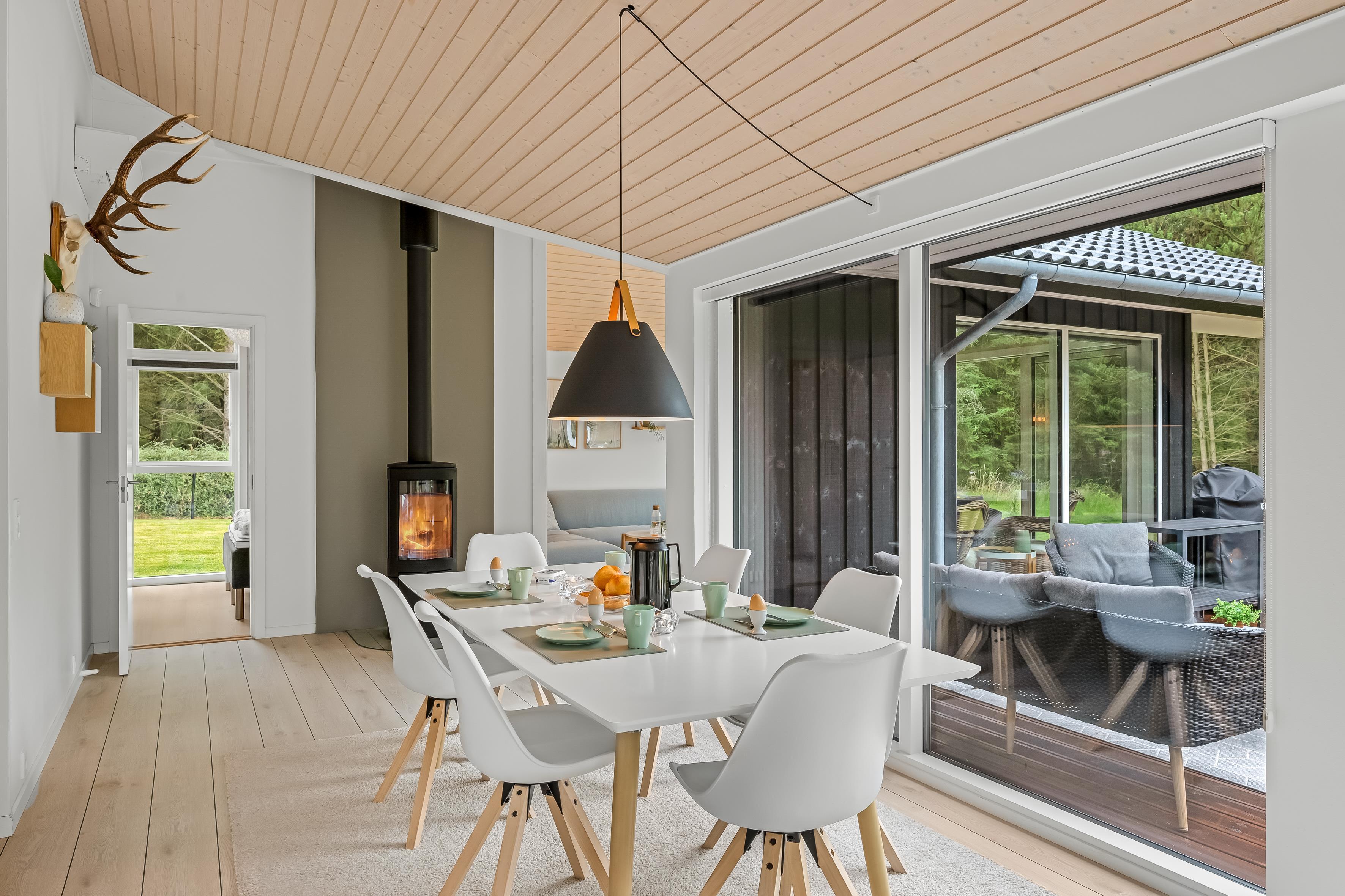 Uanset vejret er den store, delvist overdækkede terrasse det ideelle sted at nyde ferien. Her kan I nyde de lange, lyse sommeraftener, mens børn trygt kan lege på den delvis indhegnede grund, som i alt er på mere end 2500 m2. Her er I virkelig tæt på naturen – vær klar på besøg fra nysgerrige dådyr og kronhjorte, som er faste gæster i området. Naturentusiaster vil elske at udforske de nærliggende skovområder og opleve det rige dyreliv.