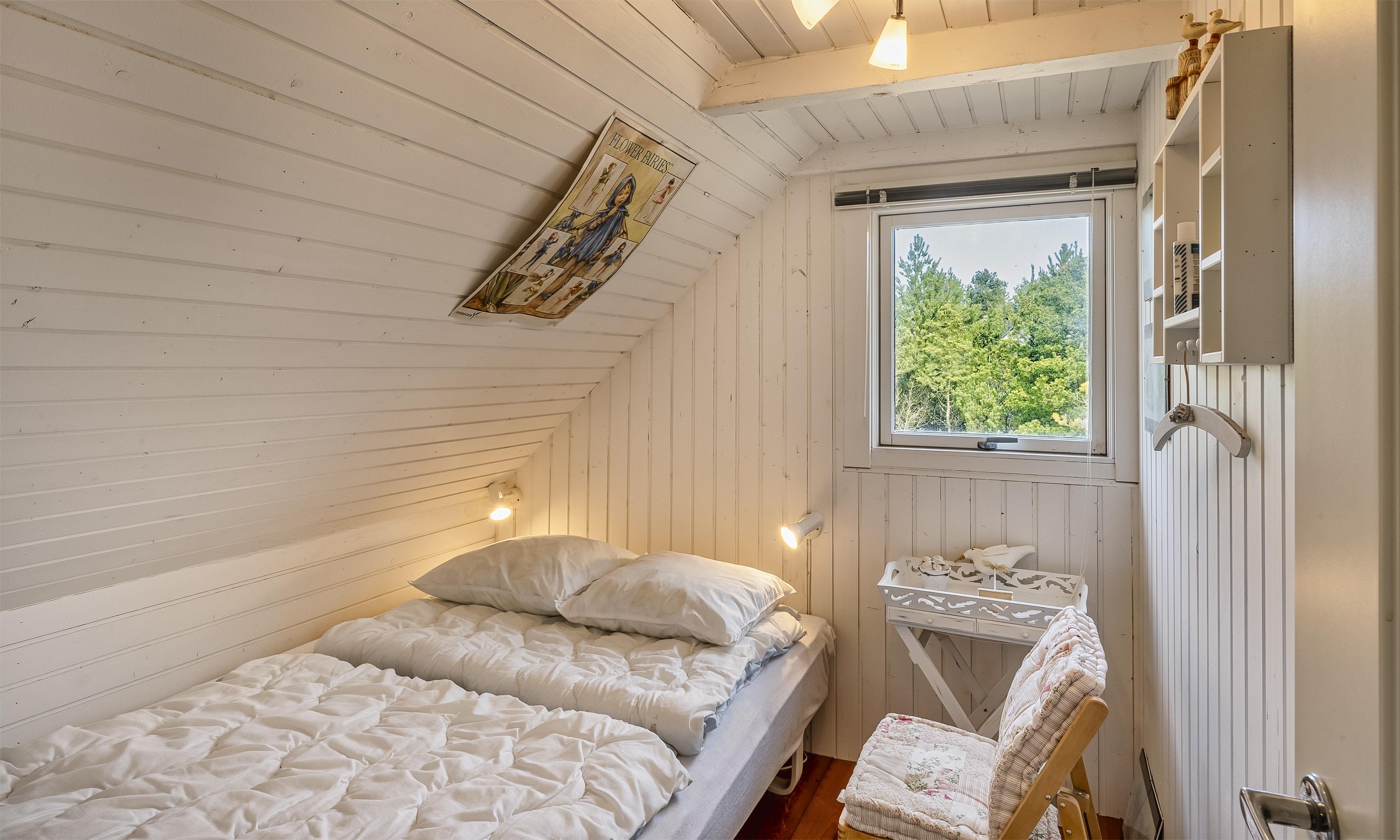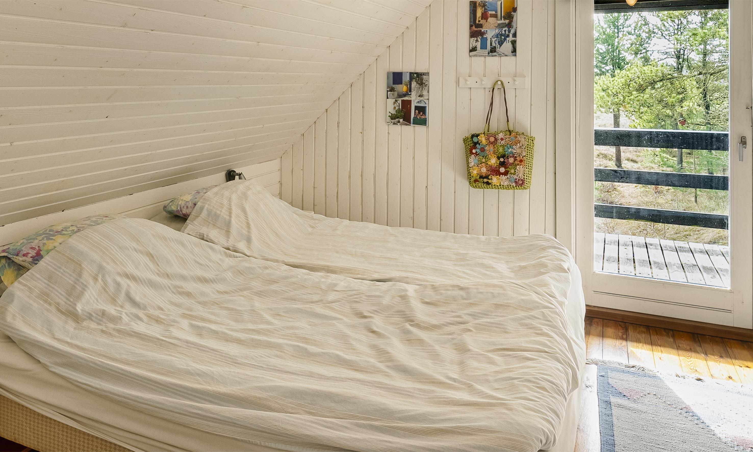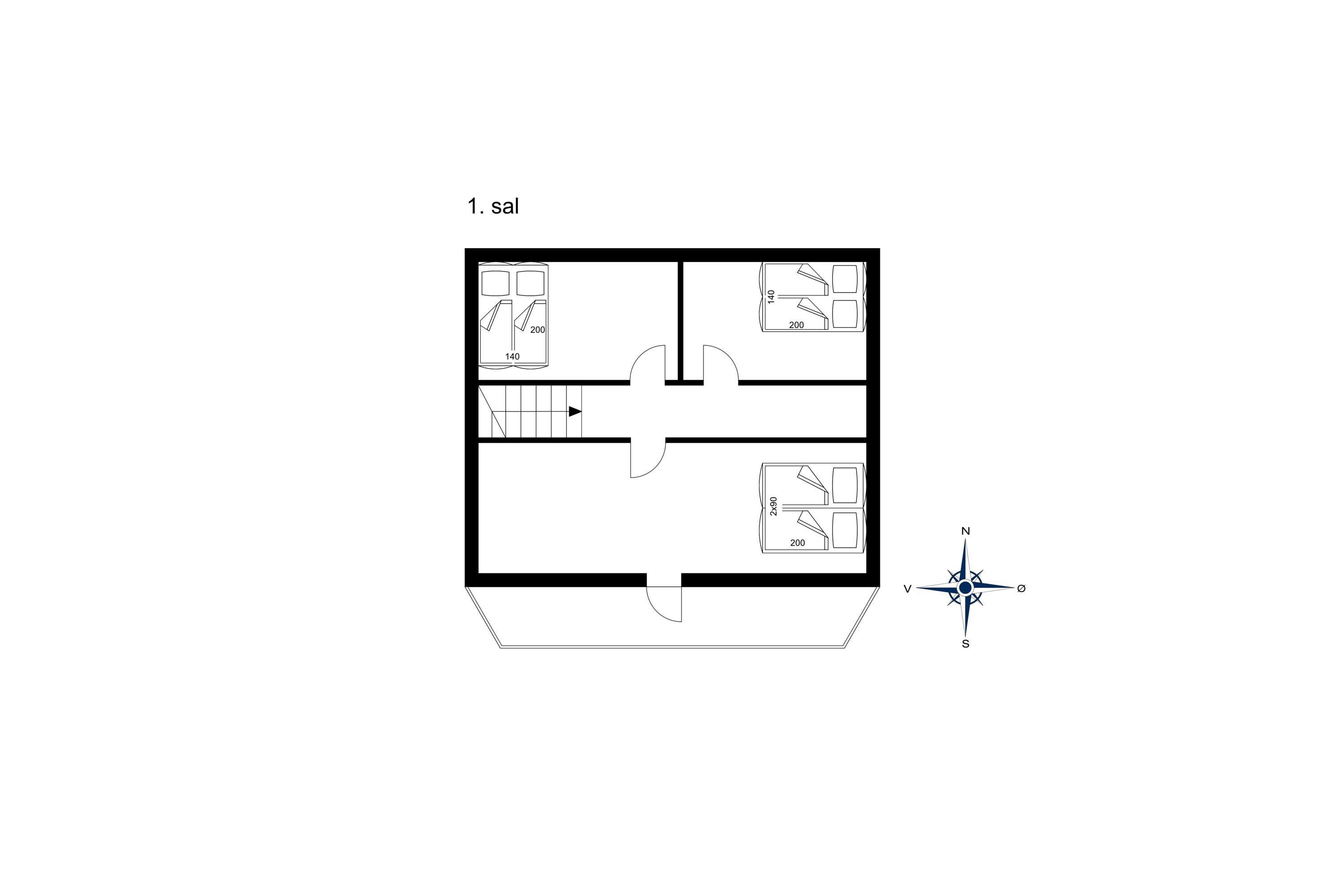 Huset er i 2 plan med 3 soverum på 1. sal, hvor der er en dobbeltseng (DS) og 2 smalle dobbeltsenge (DS+DS). Fra det store soverum er der udgang til svalegang/altan med en helt fantastisk udsigt.