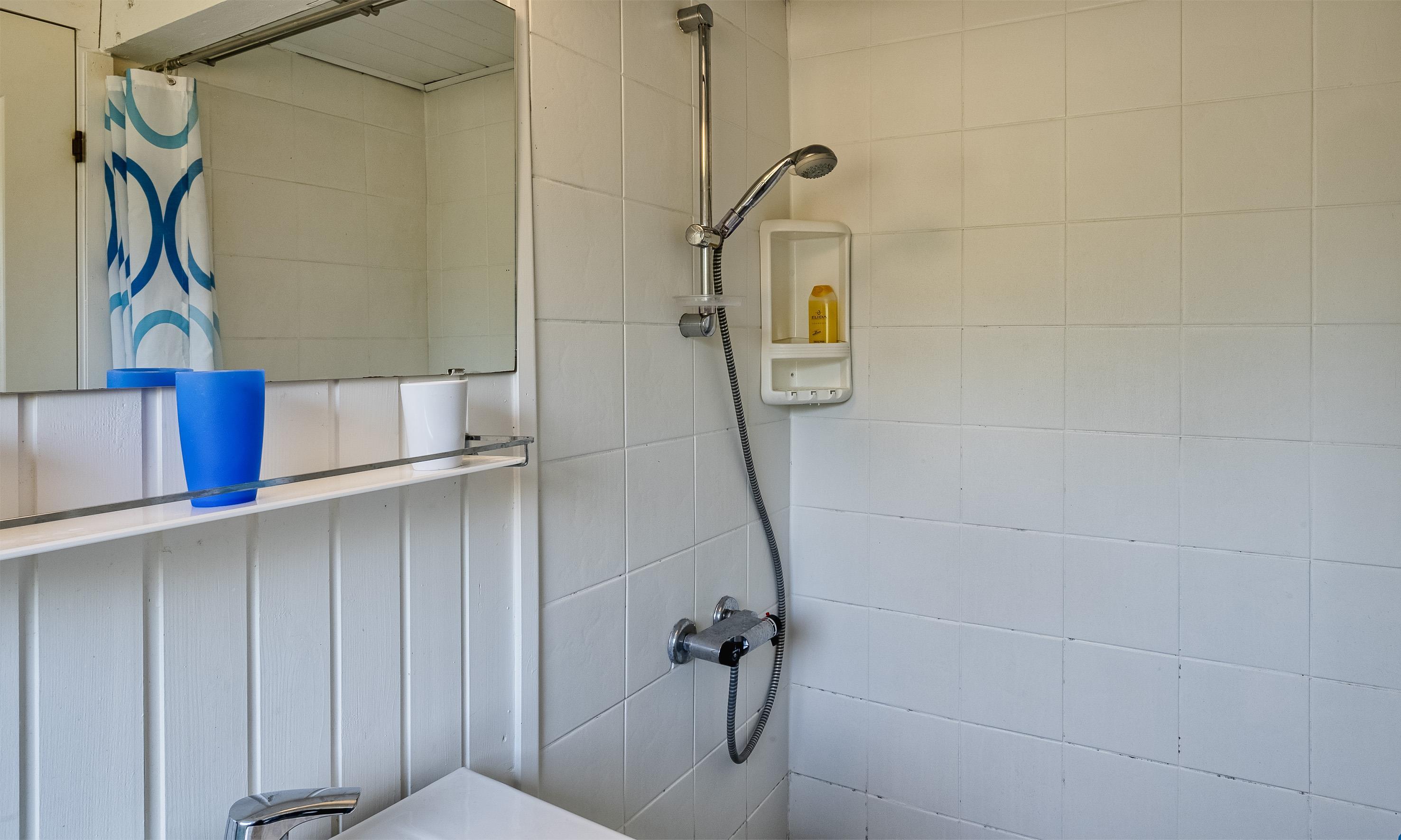 Bad med toilet, bruser og vask