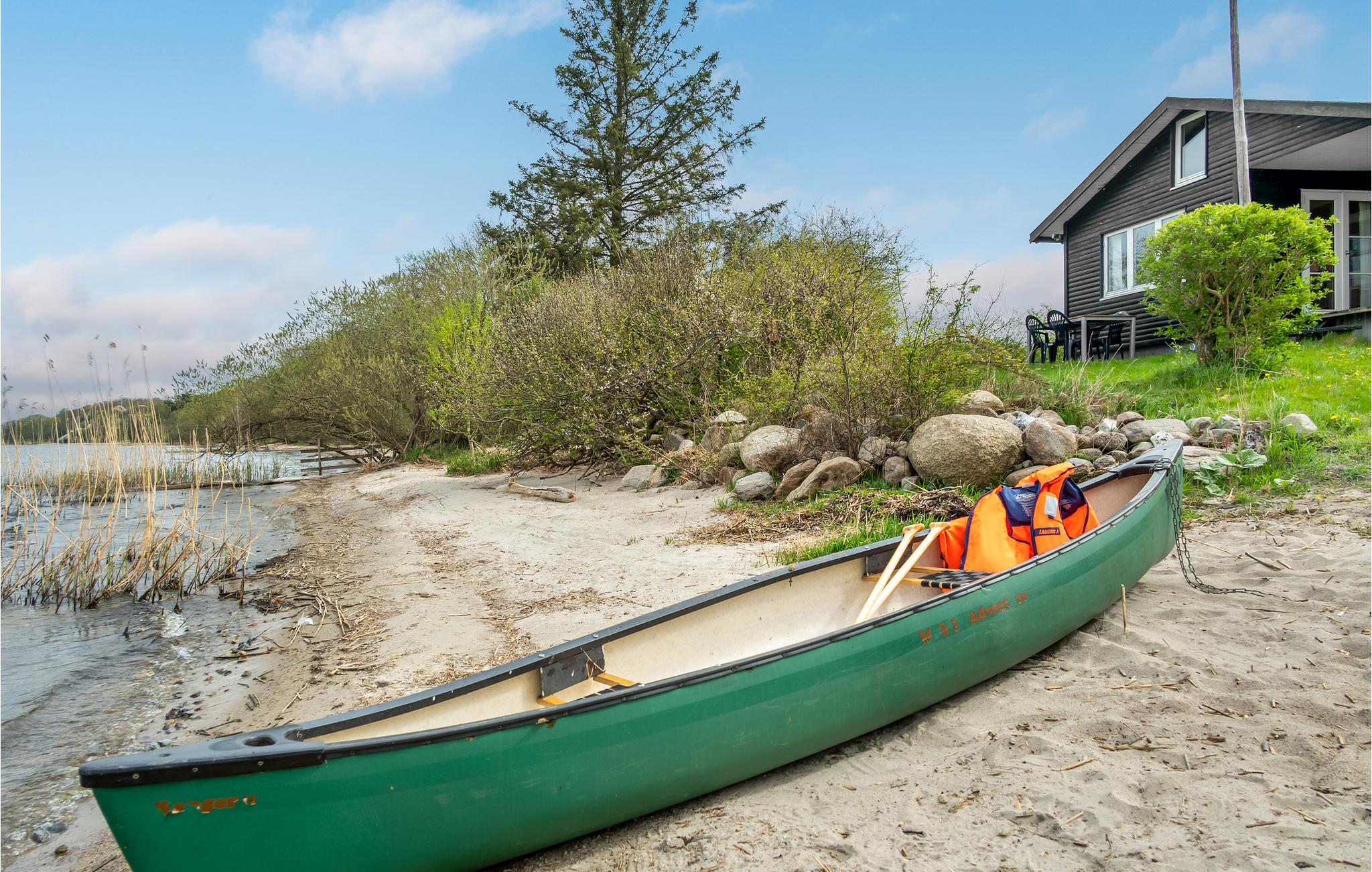 Charmerende sommerhus ved Mossø med egen strand, kano og bålplads for en afslappende ferie i naturen.