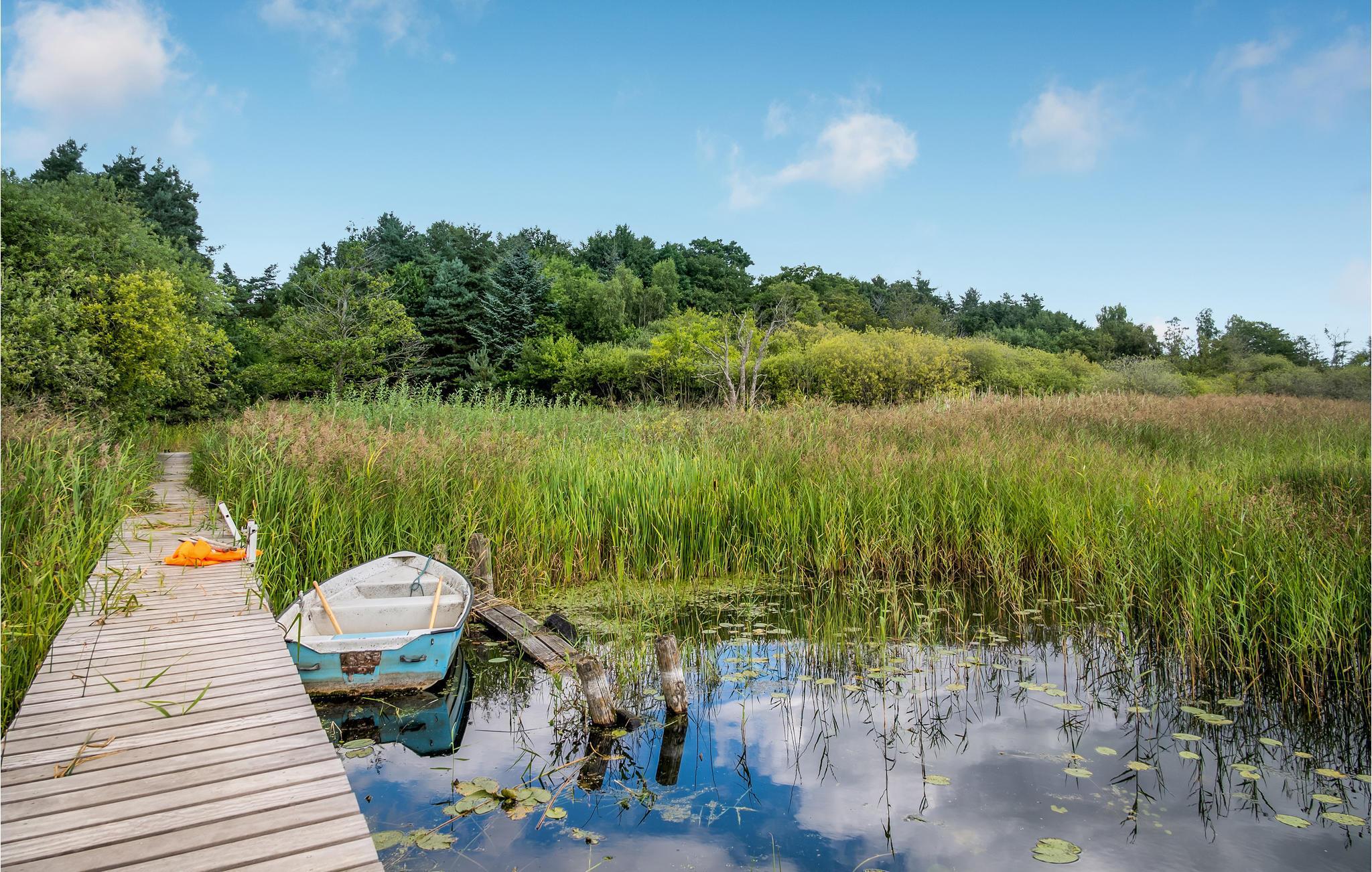 Totalrenoveret feriehus i skoven med privat sø og badebro, perfekt til fiskeri og naturoplevelser.