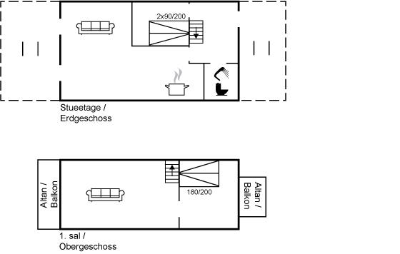 Der er i alt 2 soveværelser. Sovepladserne fordeler sig på: 4 sovepladser i dobbeltsenge.
