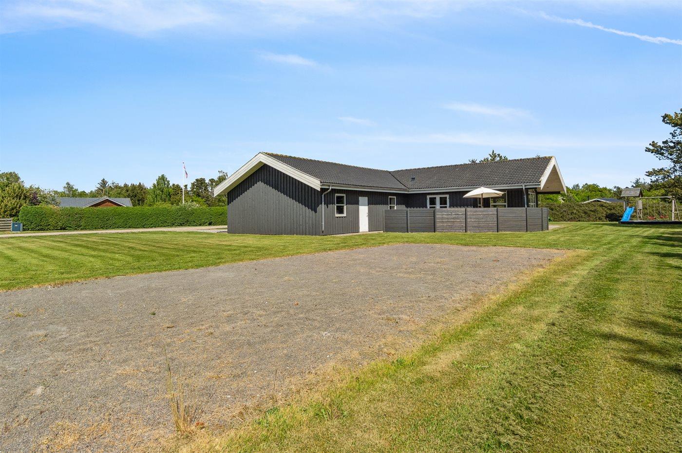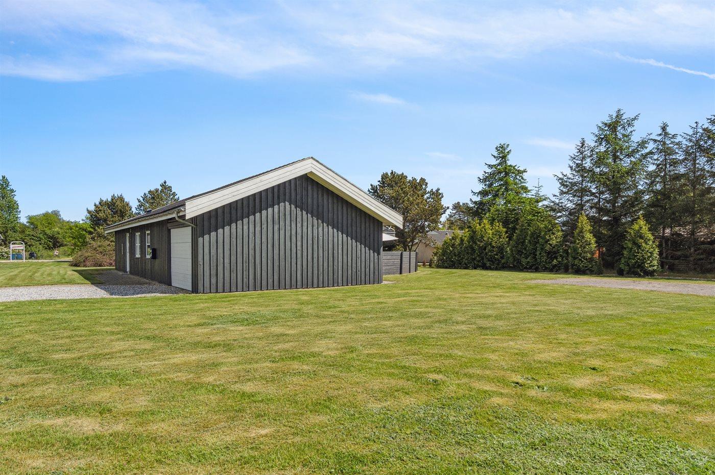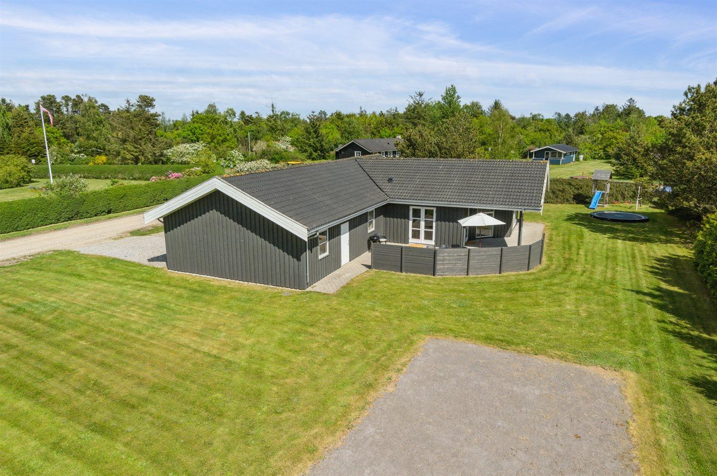 Ferieboligen er beliggende på en 1646 m² stor naturgrund. Der er 5000 m til havet. Der er 500 m til fjorden. Nærmeste forretning er beliggende i en afstand af 1000 m. Til ferieboligen hører 40 m² terrasseareal. Desuden er der 15 m² overdækket terrasse. Gynge. Legehus. Trampolin. Petanque. Bålsted. Grill til rådighed. Parkering ved ferieboligen.