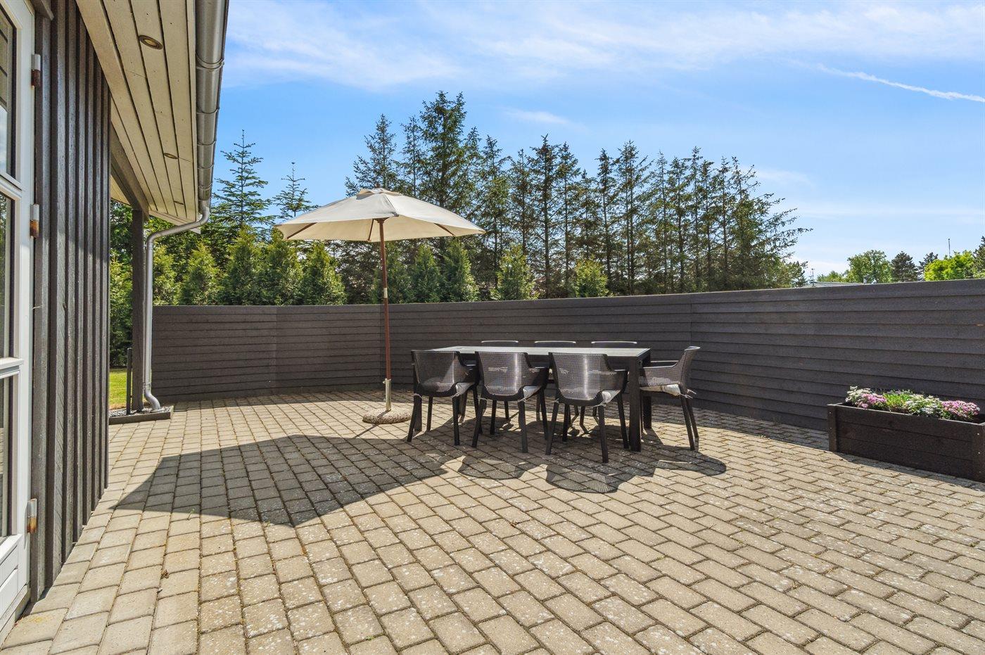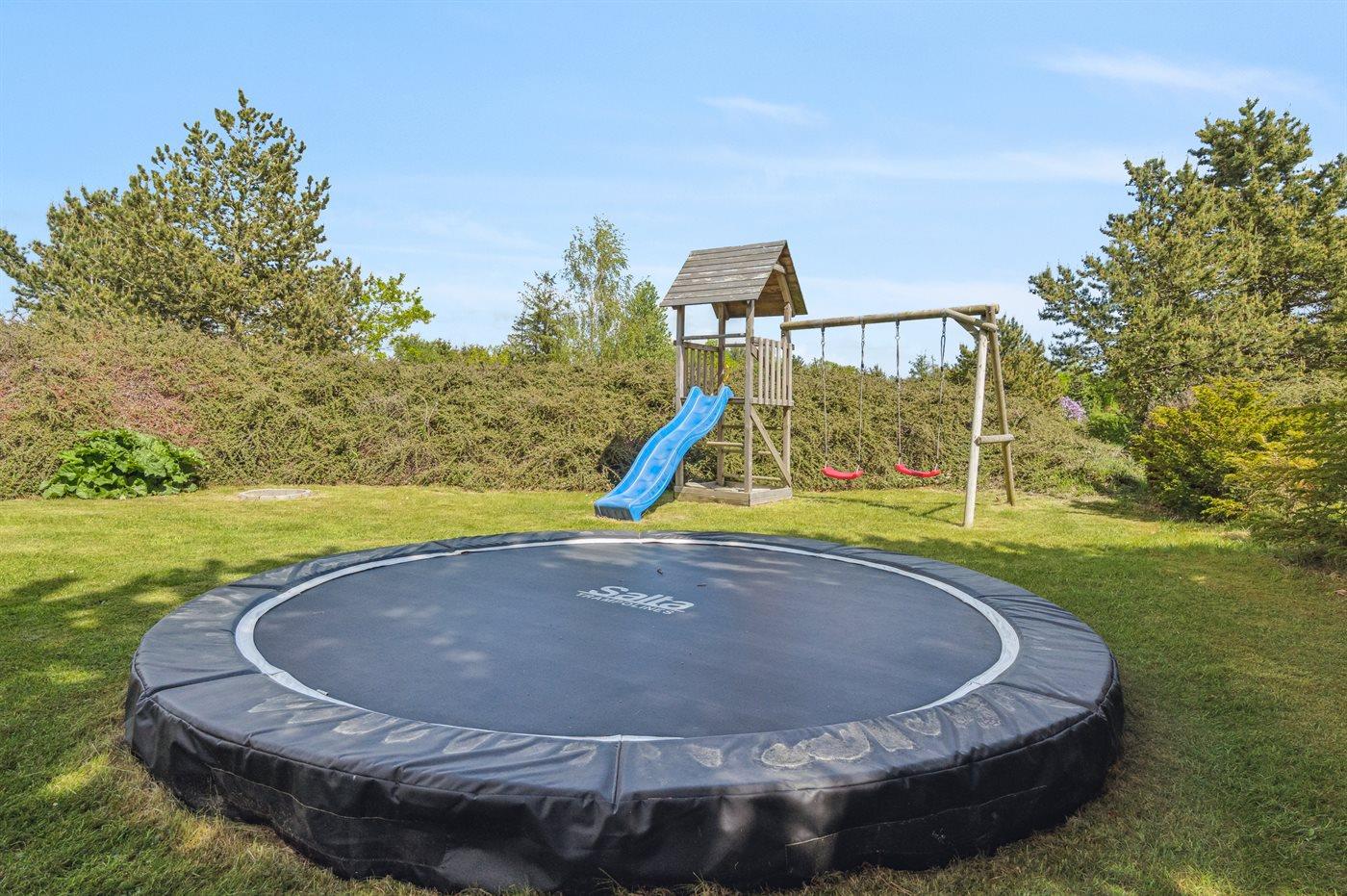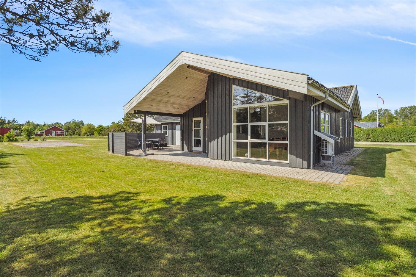Ferieboligen er beliggende på en 1646 m² stor naturgrund. Der er 5000 m til havet. Der er 500 m til fjorden. Nærmeste forretning er beliggende i en afstand af 1000 m. Til ferieboligen hører 40 m² terrasseareal. Desuden er der 15 m² overdækket terrasse. Gynge. Legehus. Trampolin. Petanque. Bålsted. Grill til rådighed. Parkering ved ferieboligen.