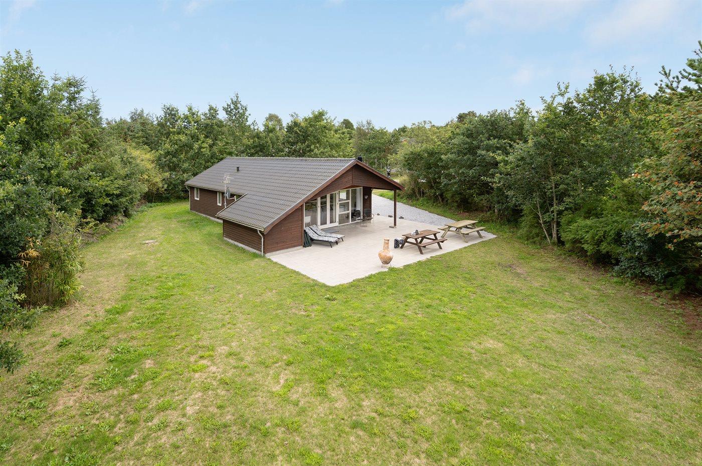 Ferieboligen er beliggende på en 1500 m² stor naturgrund. Der er 5000 m til havet. Der er 400 m til fjorden. Nærmeste forretning er beliggende i en afstand af 2000 m. Til ferieboligen hører 70 m² terrasseareal. Desuden er der 20 m² overdækket terrasse. Grill til rådighed. Parkering ved ferieboligen.