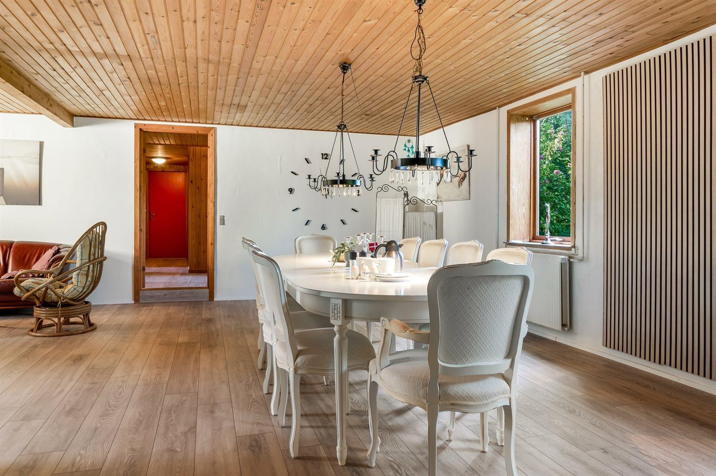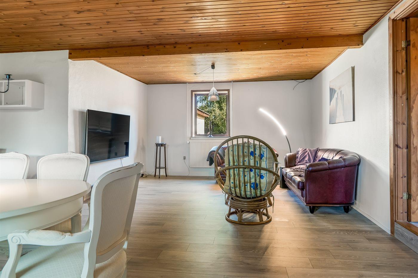 Her er der masser af plads både inde og ude, og den store grund indbyder til leg, boldspil og udeliv for hele familien. Nyd sommerdagene på den åbne terrasse eller find skygge under den overdækkede – begge med direkte adgang til grill og hyggelige udemiljøer.