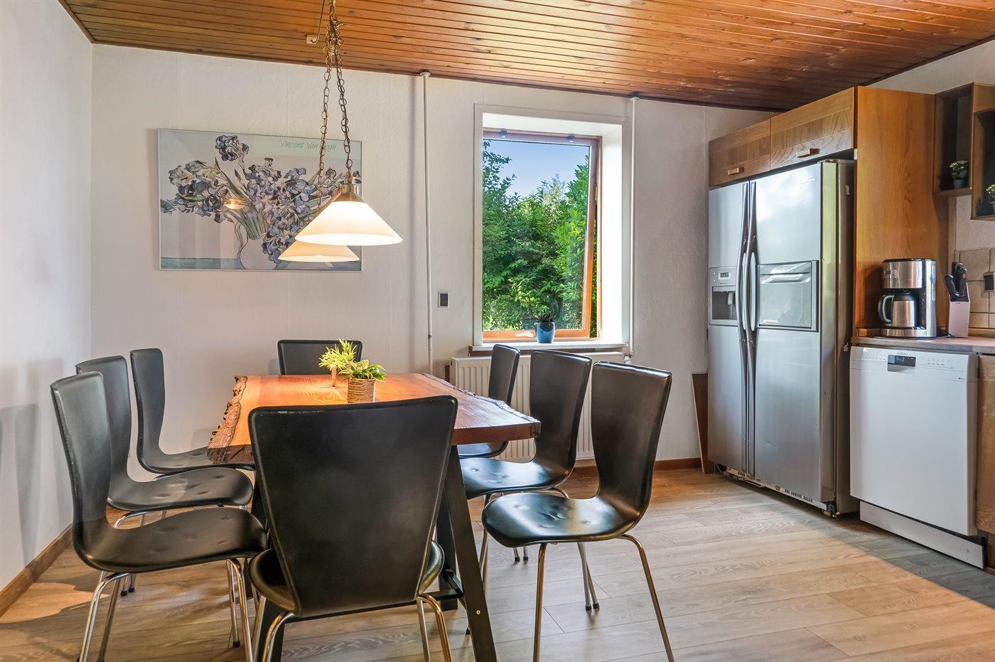 Køkkenet er udstyret med 1 køleskab. Der er 4 keramiske kogeplader, varmluftovn, mikrobølgeovn, Airfryer samt opvaskemaskine.