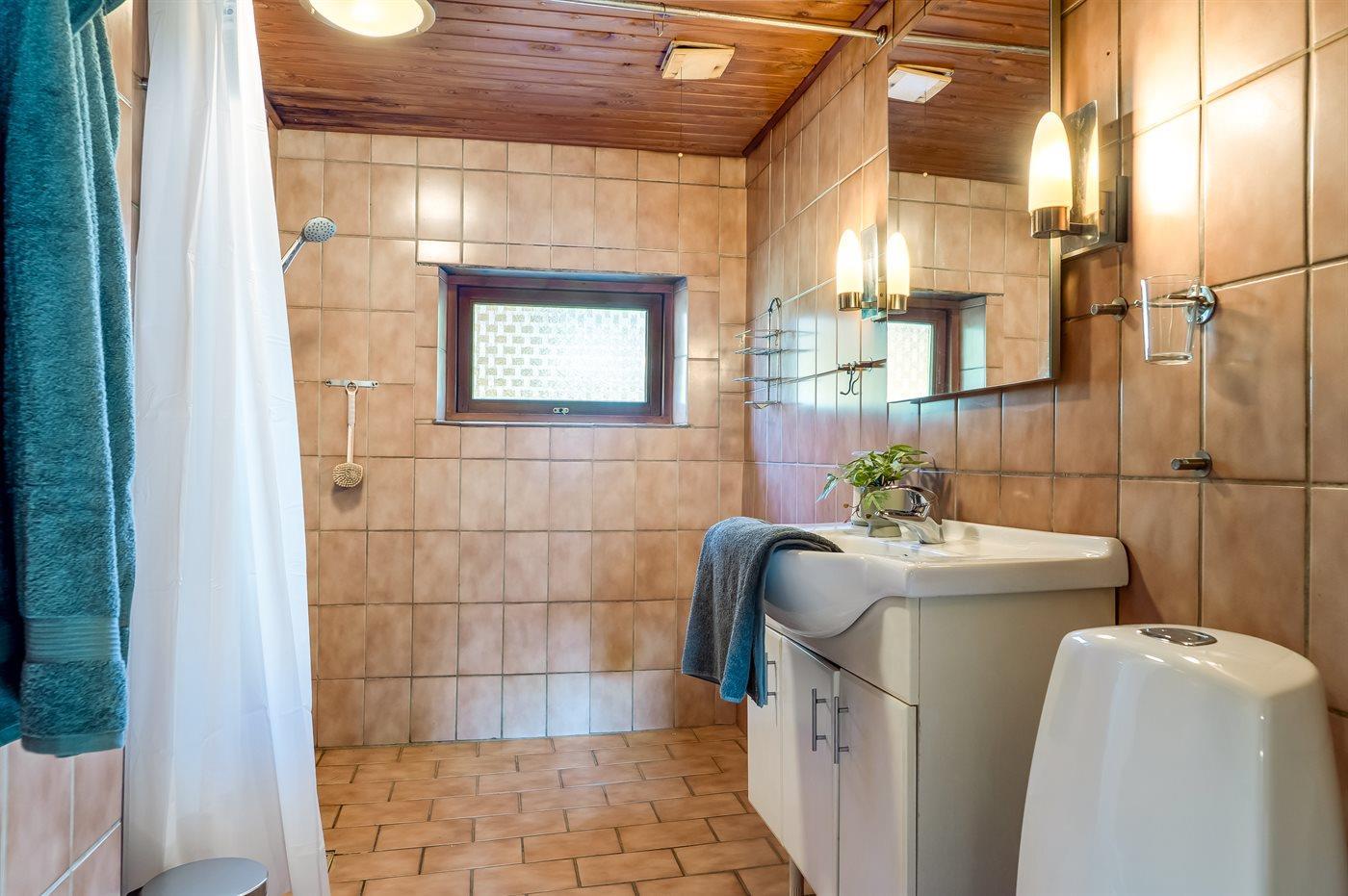 Der er 1 badeværelse med bruseniche og 1 toilet.. Der er gulvvarme på 1 badeværelse.