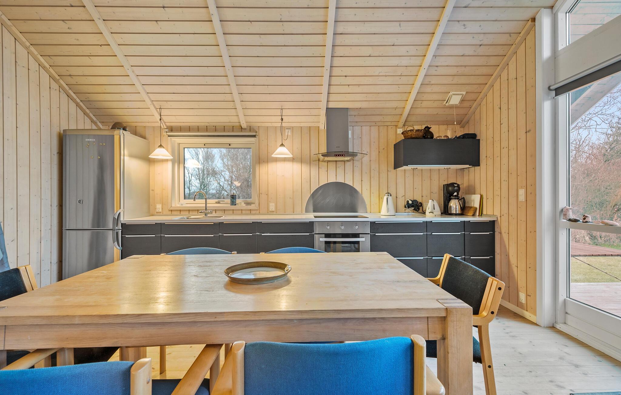 Tilbring afslappende dage på Mullerup Strand, indlejret i Storebælts smukke landskab. Start morgenen i det veludstyrede køkken, hvor I kan tilberede en lækker morgenmad til jeres kære. Hvad enten I er i den lyse spiseplads med brændeovn eller udenfor på terrassen, her finder I det ideelle sted at spise sammen og planlægge jeres dag.