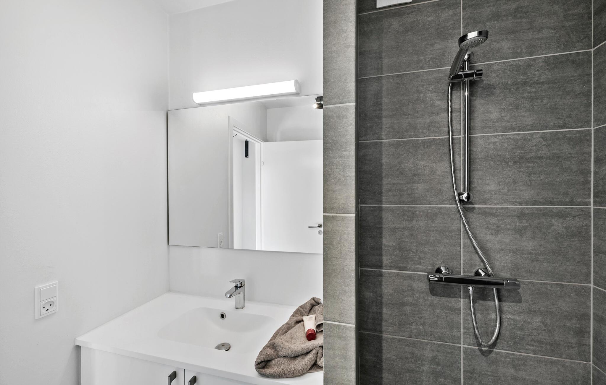 Tilbring jeres næste ferie direkte ved vandet i denne komfortable og moderne ferielejlighed.