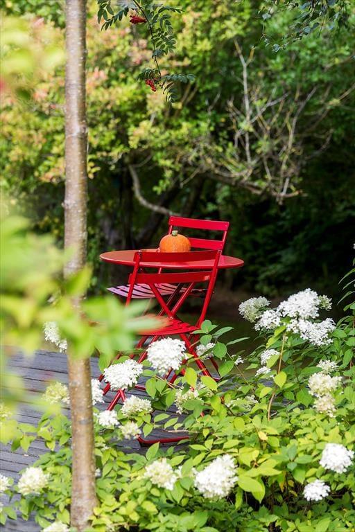 Terrassen er et oplagt sted at samles til måltider i det fri eller bare slappe af med en kop kaffe og lade tankerne flyde. Lyden af fuglekvidder og den friske havbrise fra den nærliggende strand skaber en idyllisk stemning, som gør det let at komme helt ned i gear.