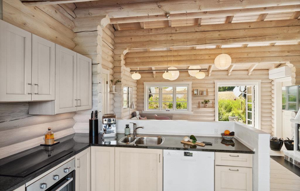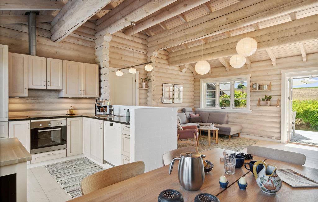 I dette eksklusive bjælkehus kan I se frem til en hyggelig atmosfære. Huset er moderne og minimalistisk indrettet på charmerende vis, og der er et skønt, stort køkken, som indbyder til hyggelige stunder med fælles madlavning. I køkkenet er der endda også plads til en lille dans, mens maden simrer! Der er fokus på selvforkælelse og ren harmoni for krop og sjæl. De mange vinduer oplyser det åbne plan, giver ro og inviterer nærmest naturen indenfor. Om morgenen kan I selv vælge, hvilken terrasse I vil nyde morgenkaffen på. Efter morgenmaden kan jeres børn lege i haven, mens I slikker sol på liggestolene. Herfra kan I gå til kunstmuseet Munkeruphus og den dejlige sandstrand.