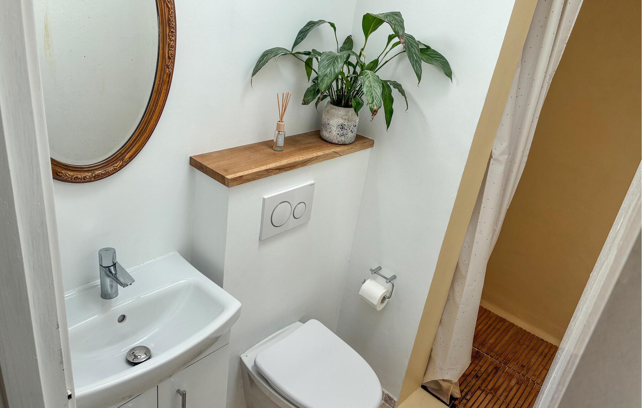 Badeværelse (nr. 1) - WC. Varmt og koldt vand. Bruser