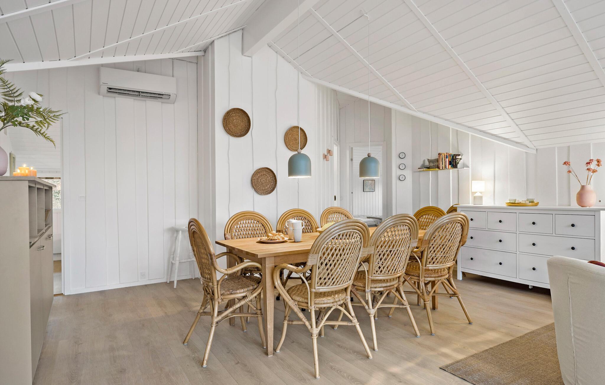 Dette indbydende sommerhus ved Munkerup Strand er et perfekt udgangspunkt for en afslappende ferie i Nordsjælland. Her får I en dejlig base med plads til hele familien og kun en kort gåtur fra stranden. Indenfor venter en stilfuld og komfortabel bolig. Læn jer tilbage i den hyggelige stue efter nogle gode timer i den friske luft. Det veludstyrede køkken gør det nemt at tilberede feriens måltider, og når retterne er klar, kan I samles ved spisebordet og planlægge morgendagens eventyr. Læn jer godt tilbage i saunaen efter en lang dag på farten.