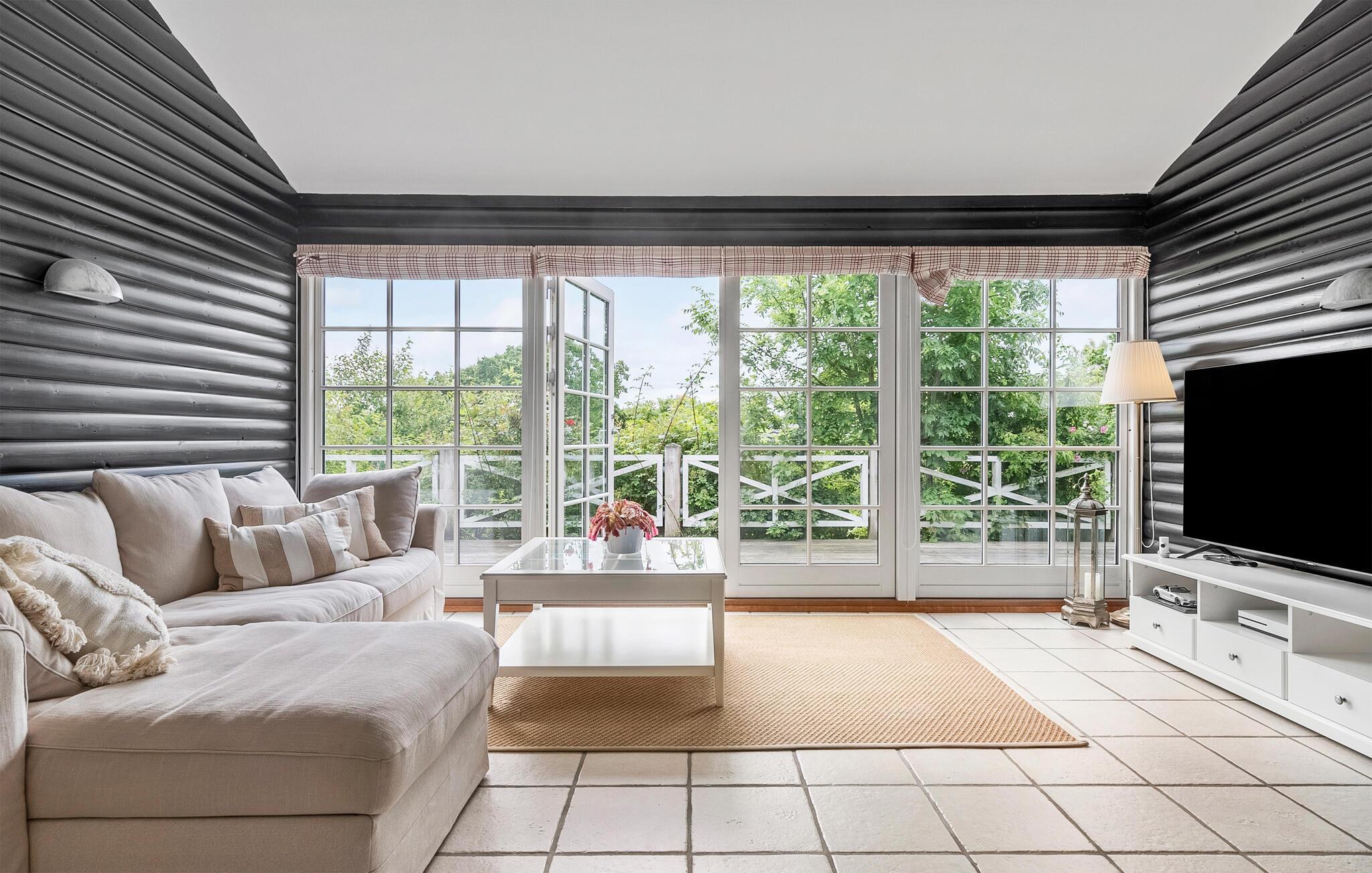 Tilbring afslappende dage i dette smagfuldt designede feriehus med en træterrasse, der omgiver huset, og et grønt udendørsområde.