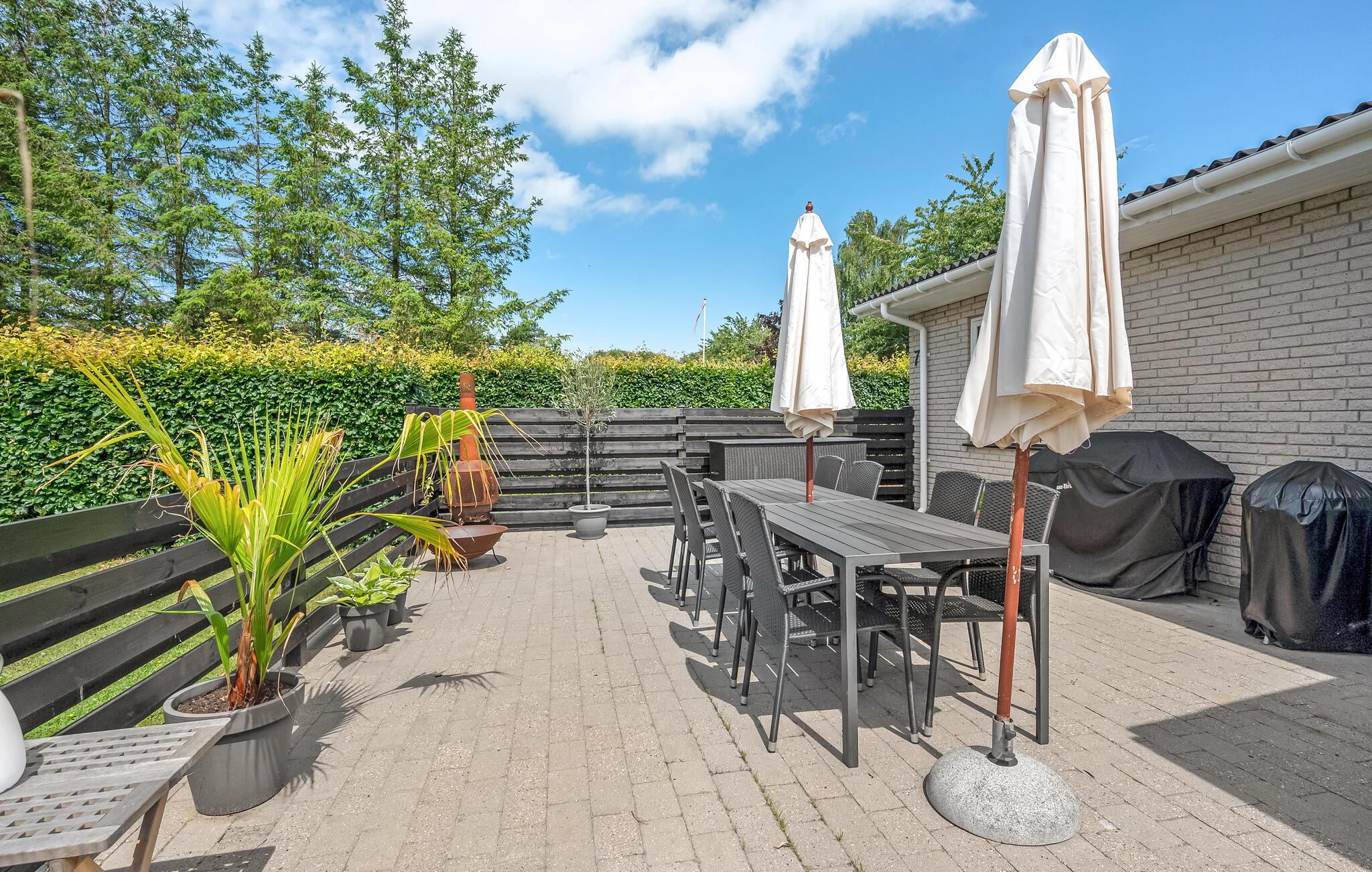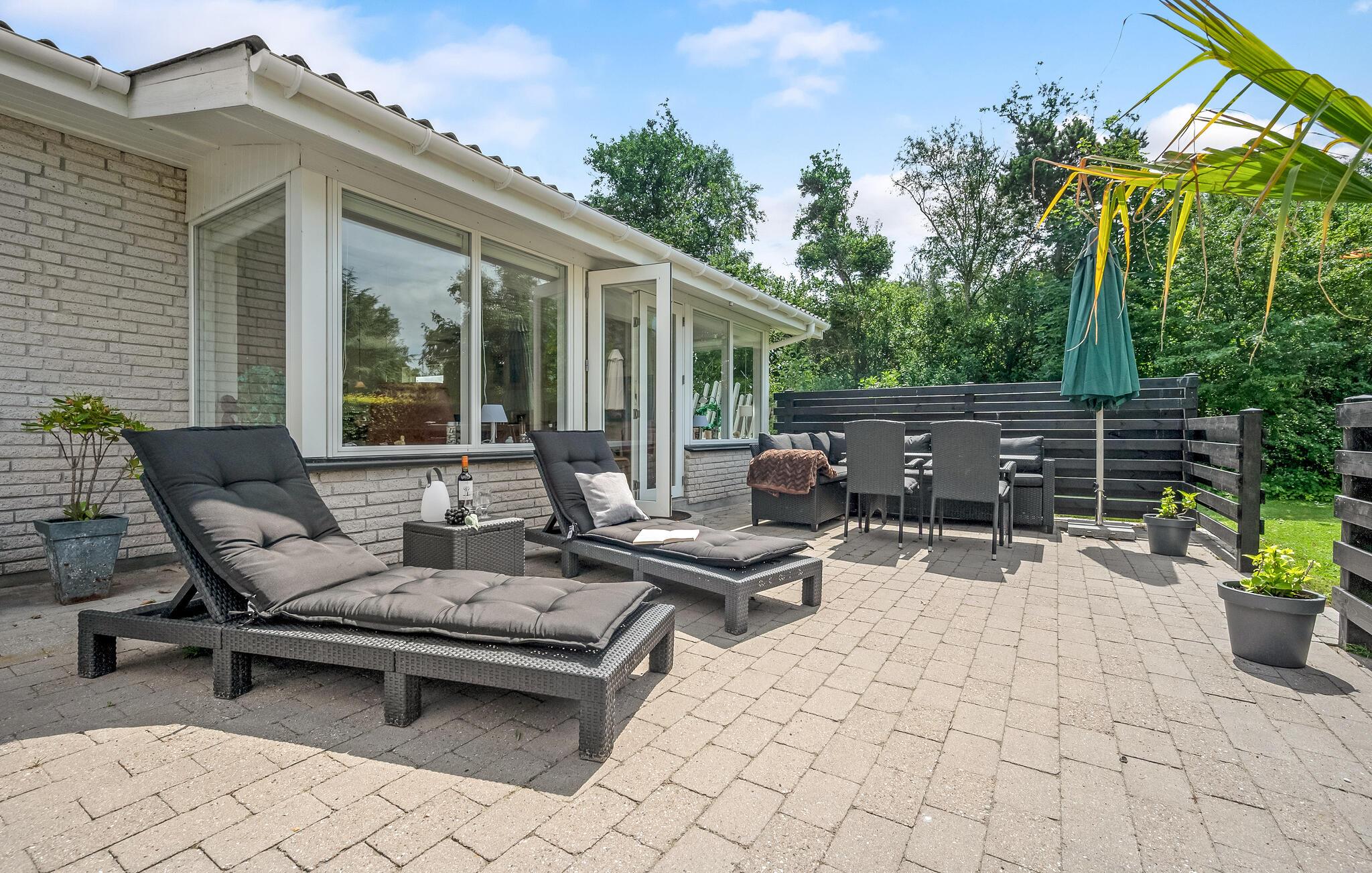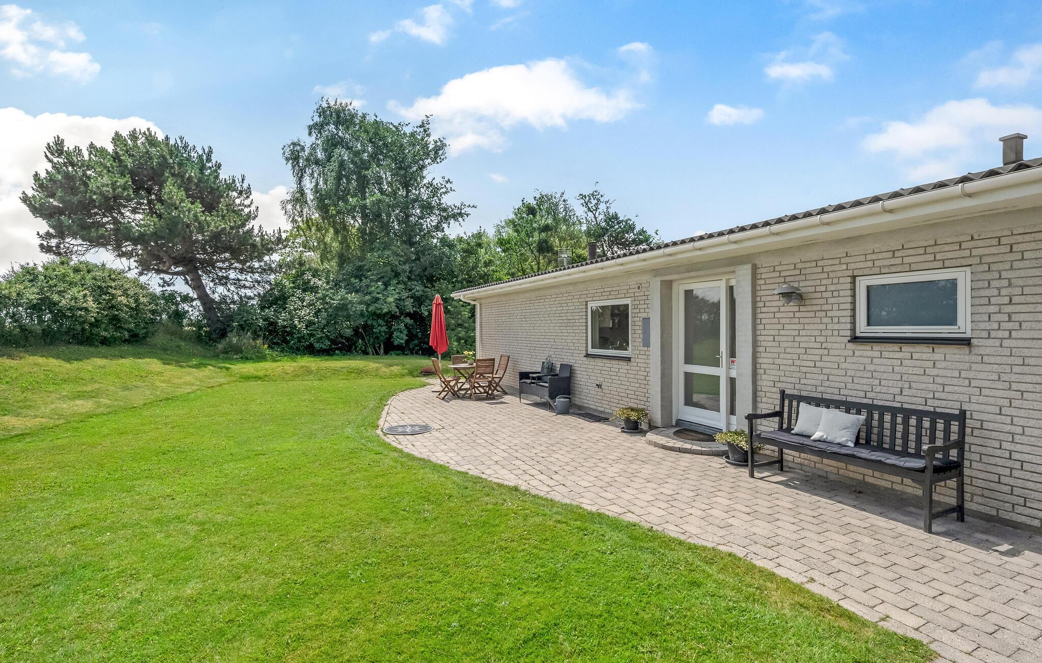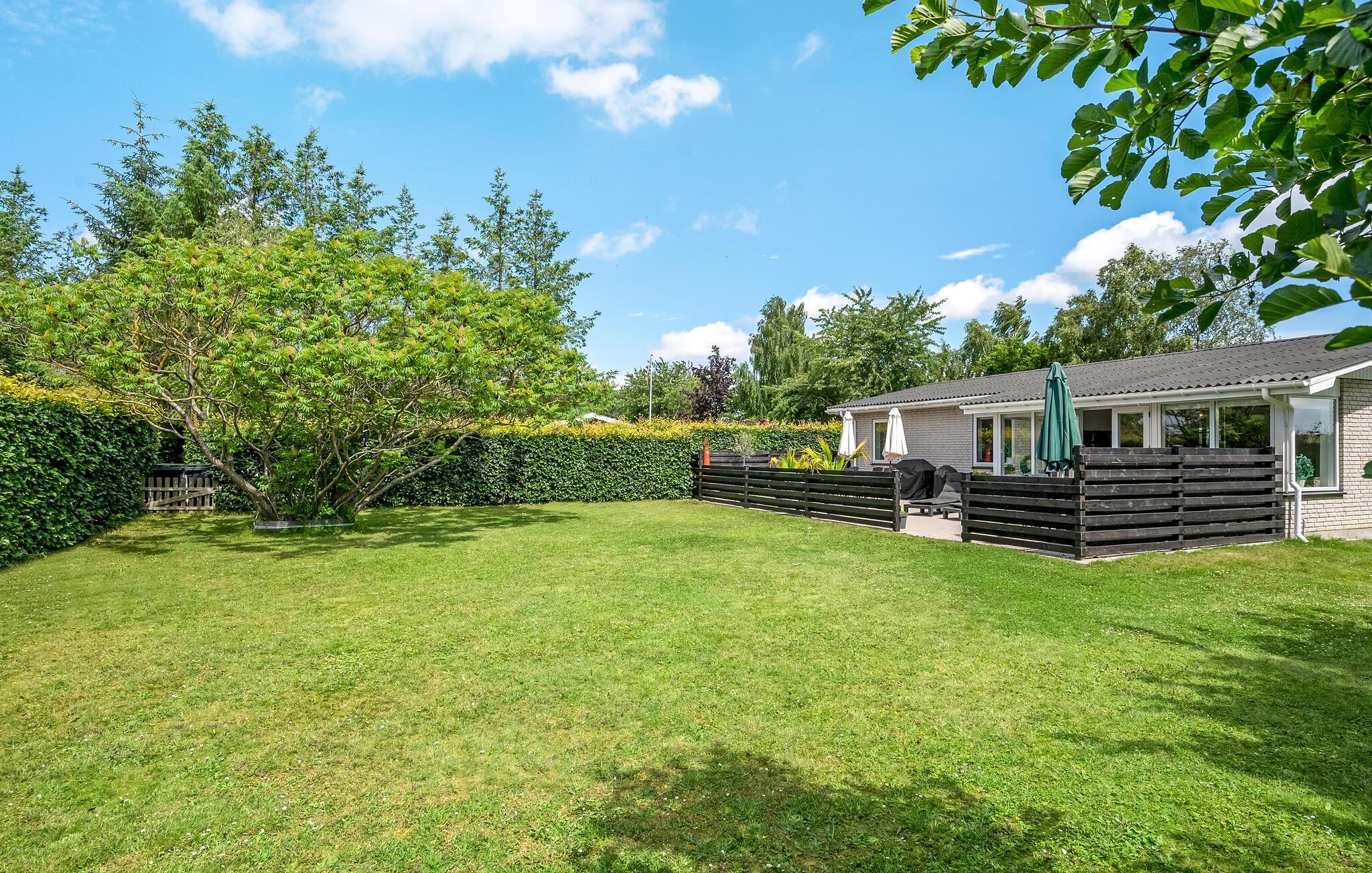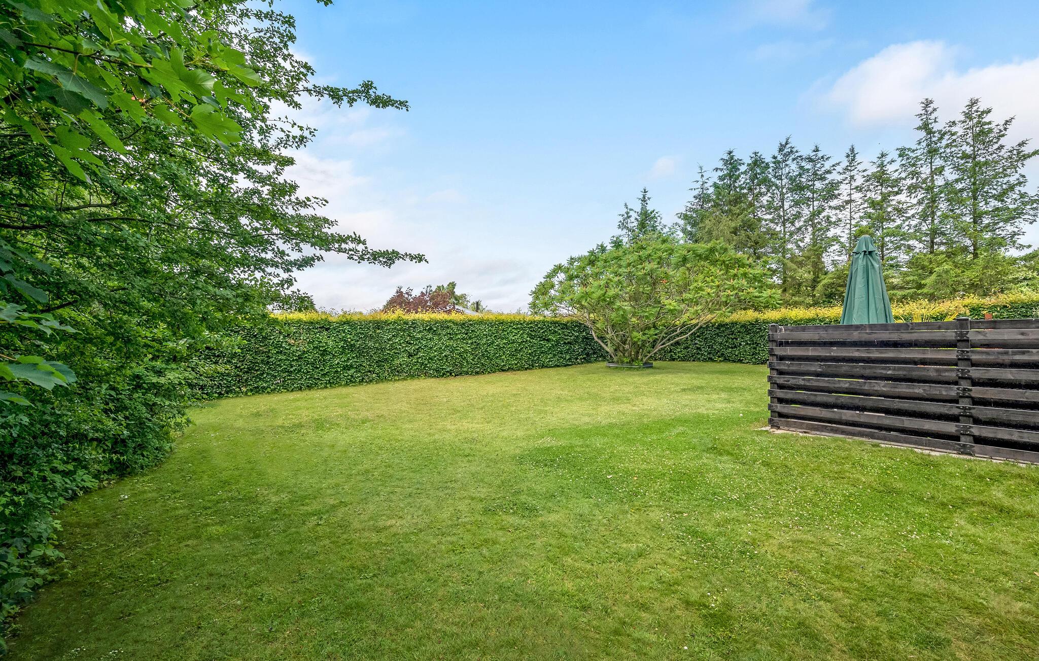 Det fine sommerhus ligger på en stor havegrund med plads til leg og afslapning for hele familien. Der er også en terrasse, hvor I kan sætte jer til rette med en god bog eller samles om dagens måltider.
