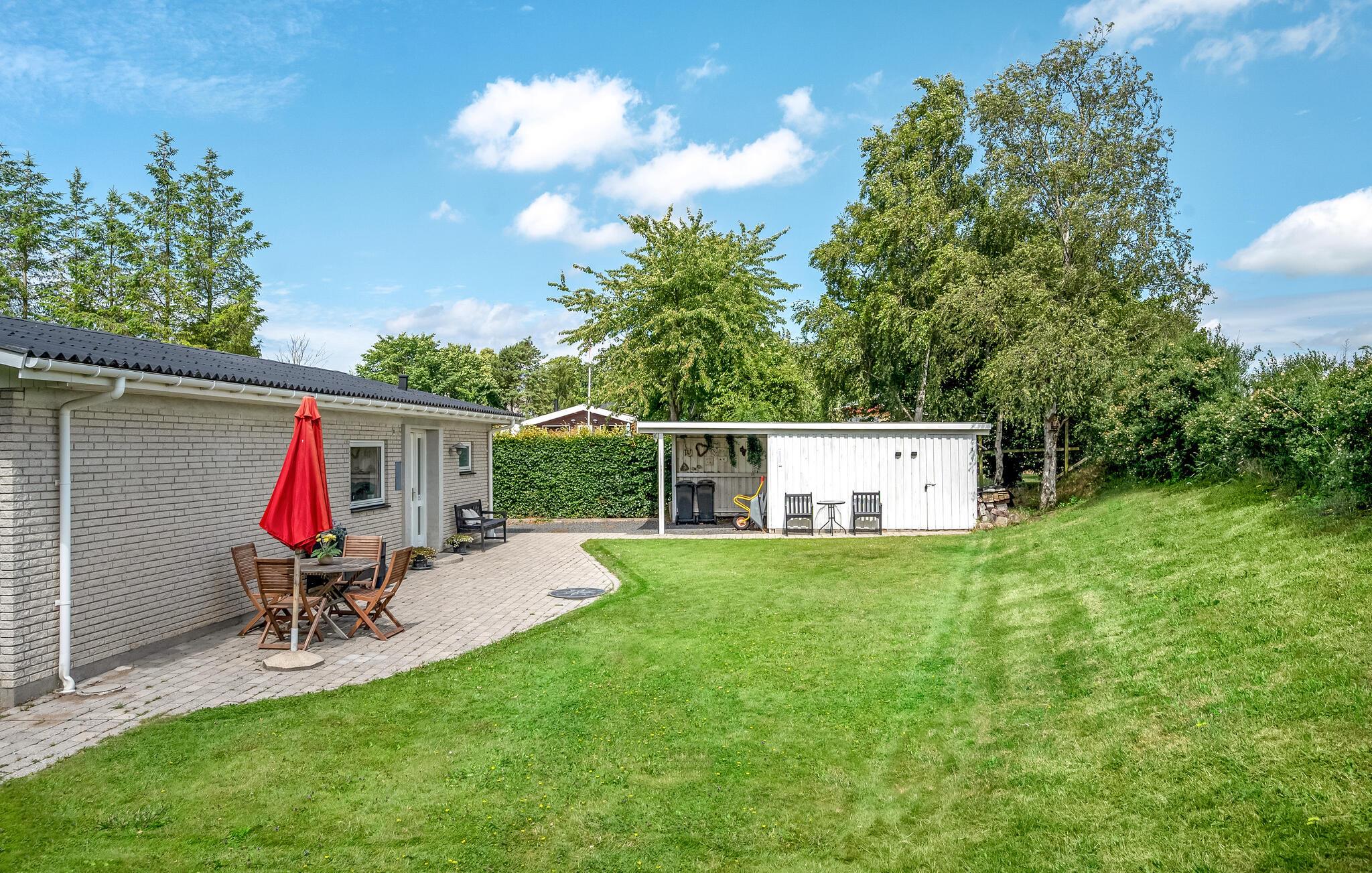 Skønt feriehus ved Næsby Strand med kort afstand til stranden og hyggelig terrasse.