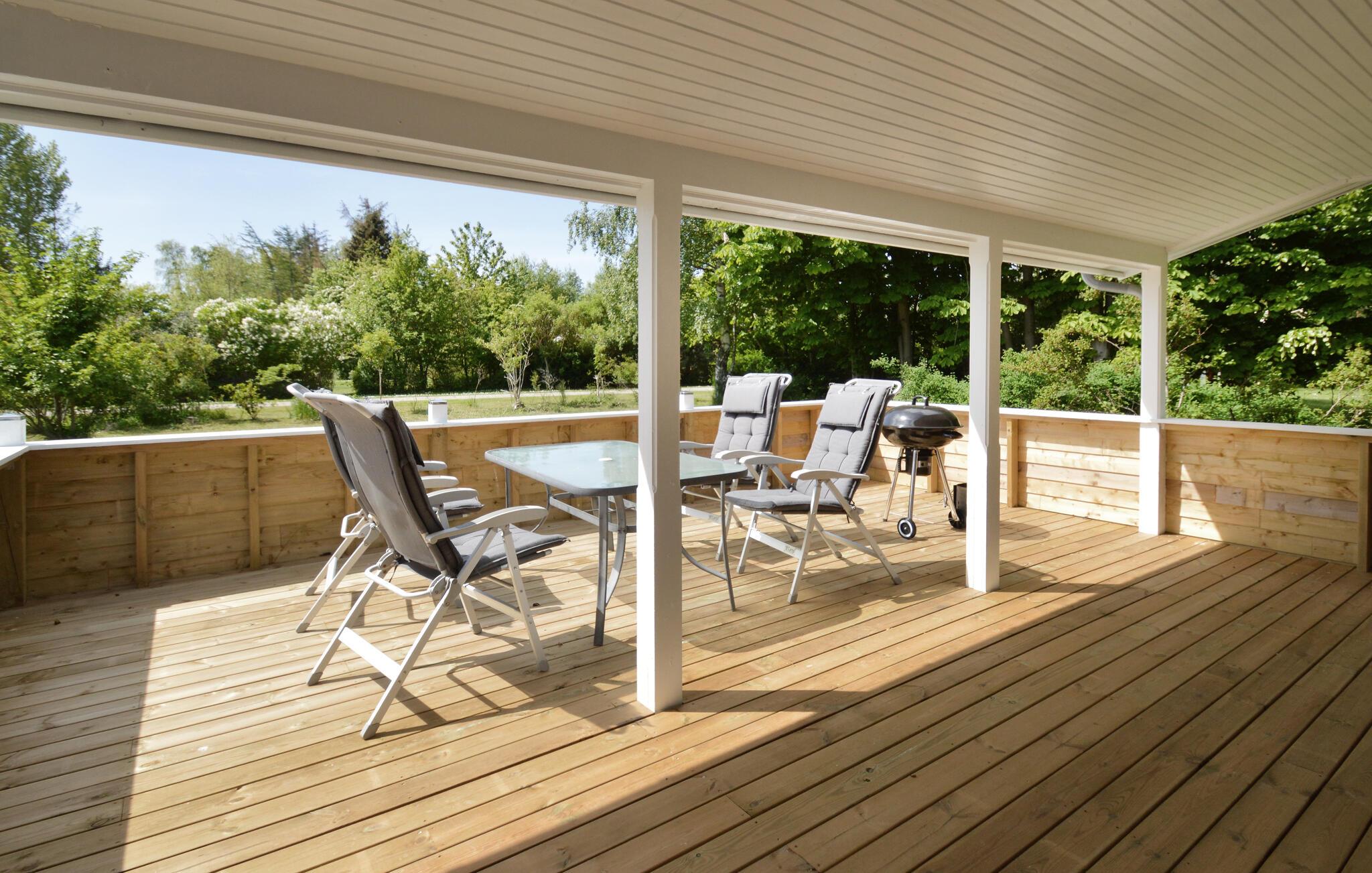 Træd ud på den store træterrasse med en velduftende kop kaffe, når dagens første solstråler viser sig, og nyd udsigten over haven. Spis morgenmad sammen, inden I fordyber jer i en bog, mens børnene leger i haven eller gynger. Om aftenen kan I gøre nogle saftige grillspyd klar på grillen og afslutte dagen med et glas vin.