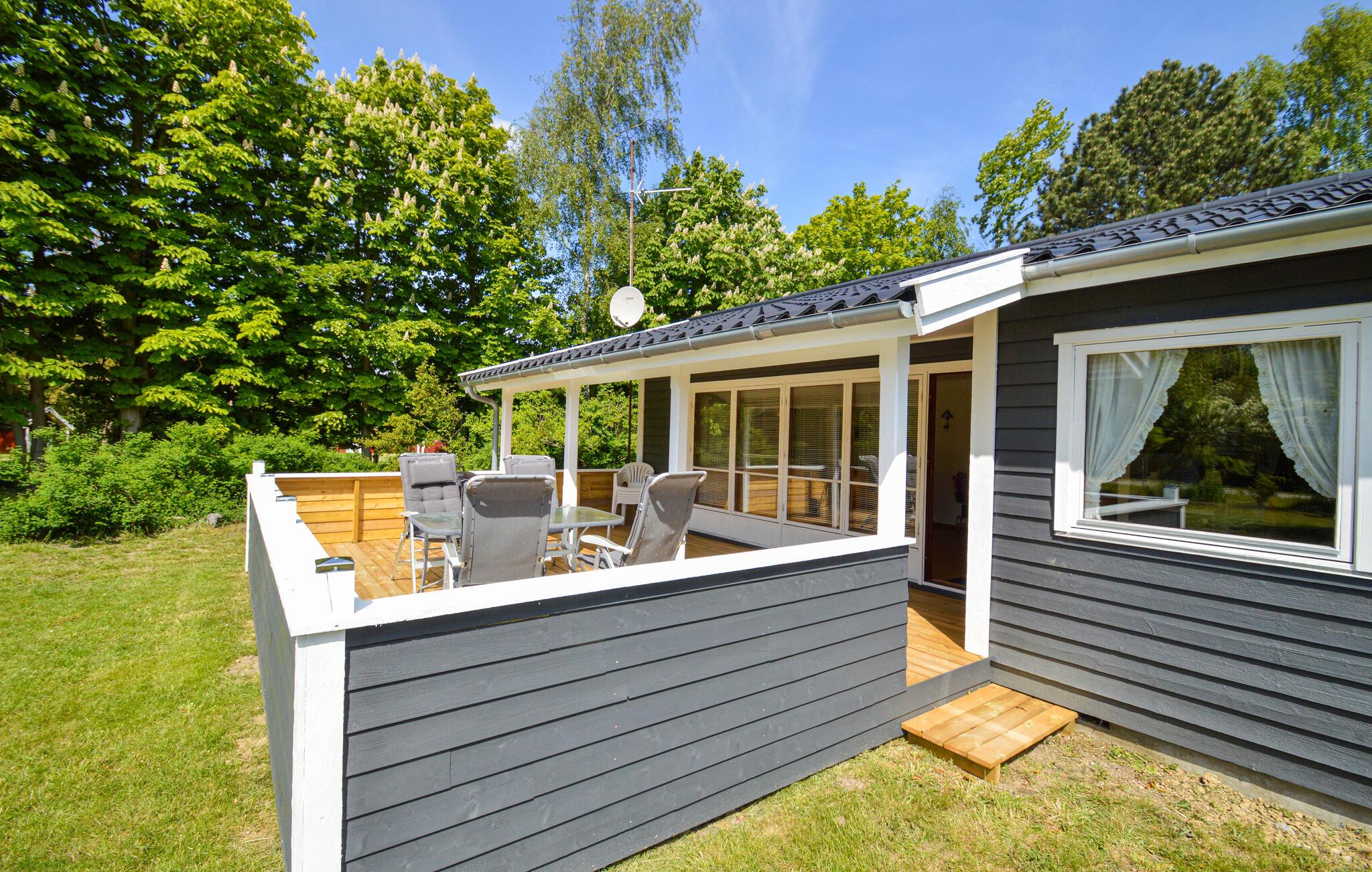 Hyggeligt feriehus på Lollands sydkyst med stor terrasse, have og nærhed til strand og natur.