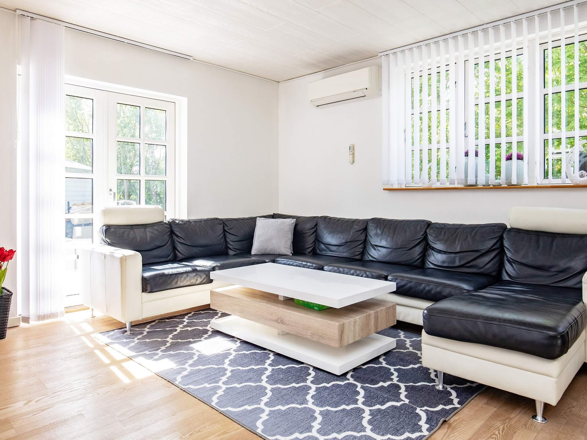 Soveværelset er udstyret med en højdejusterbar dobbeltseng, der sikrer en god nattesøvn. Til underholdning inkluderer hjemmet et billardbord og et tv med Chromecast til streaming af dit yndlingsindhold, hvilket gør det ideelt til hyggelige indendørs aftener. Store vinduespartier og nem adgang til det fri skaber et lyst og indbydende opholdsrum.