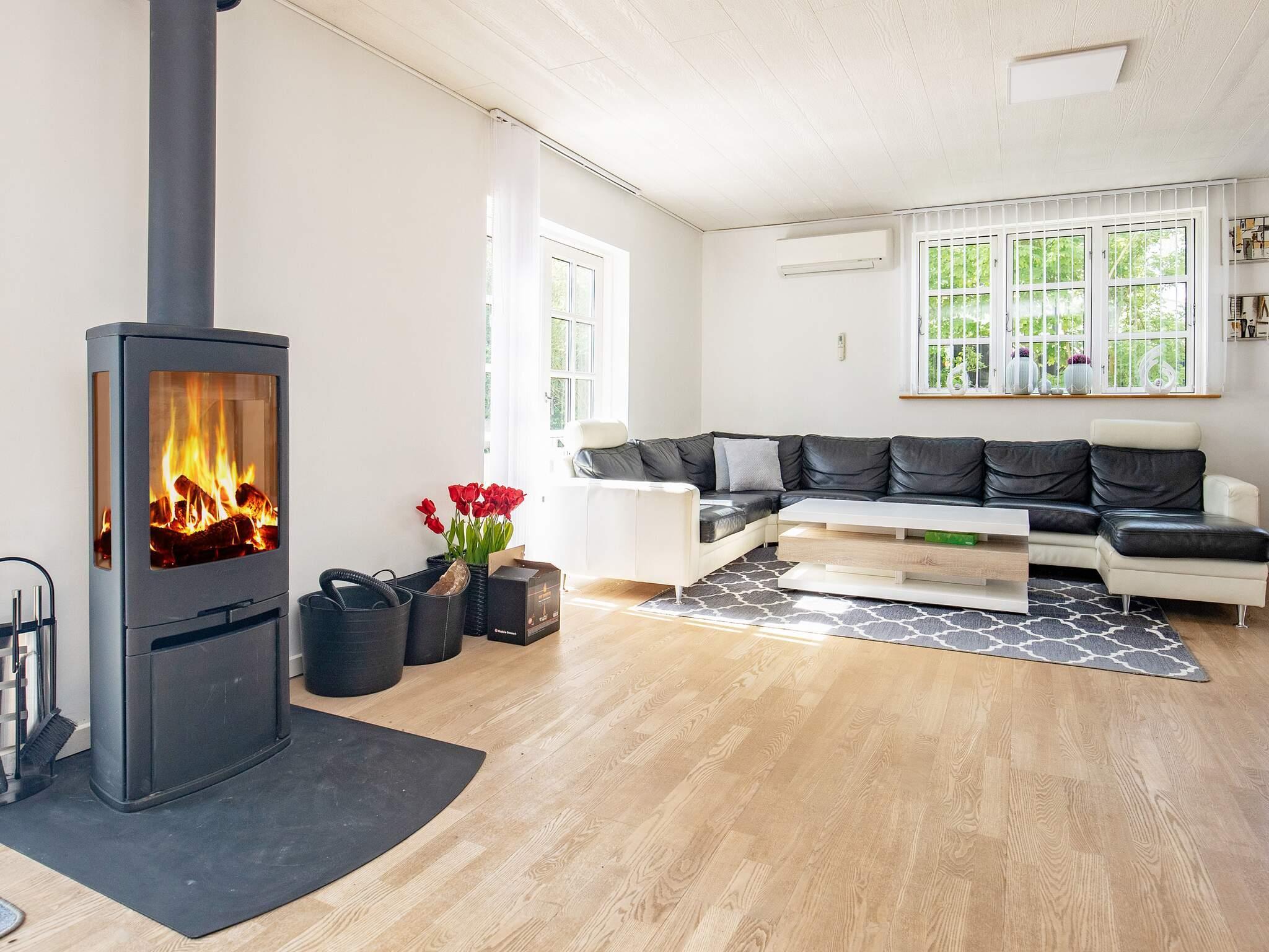 1 Opholdsstue: Brændeovn, Chromecast, tv, høj stol