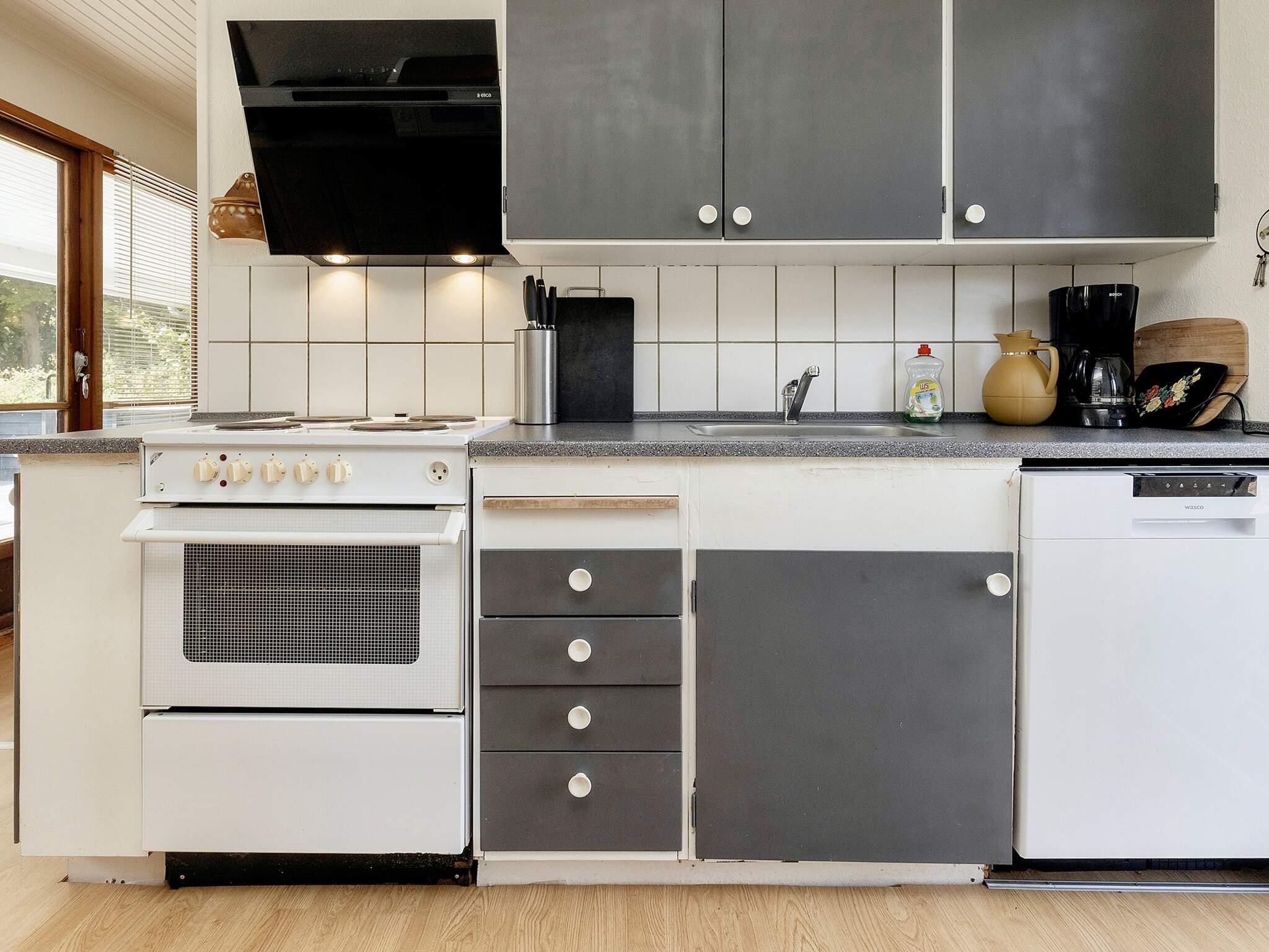 Køkken: El-komfur, køle-frys, mikroovn, kaffemaskine, opvaskemask.