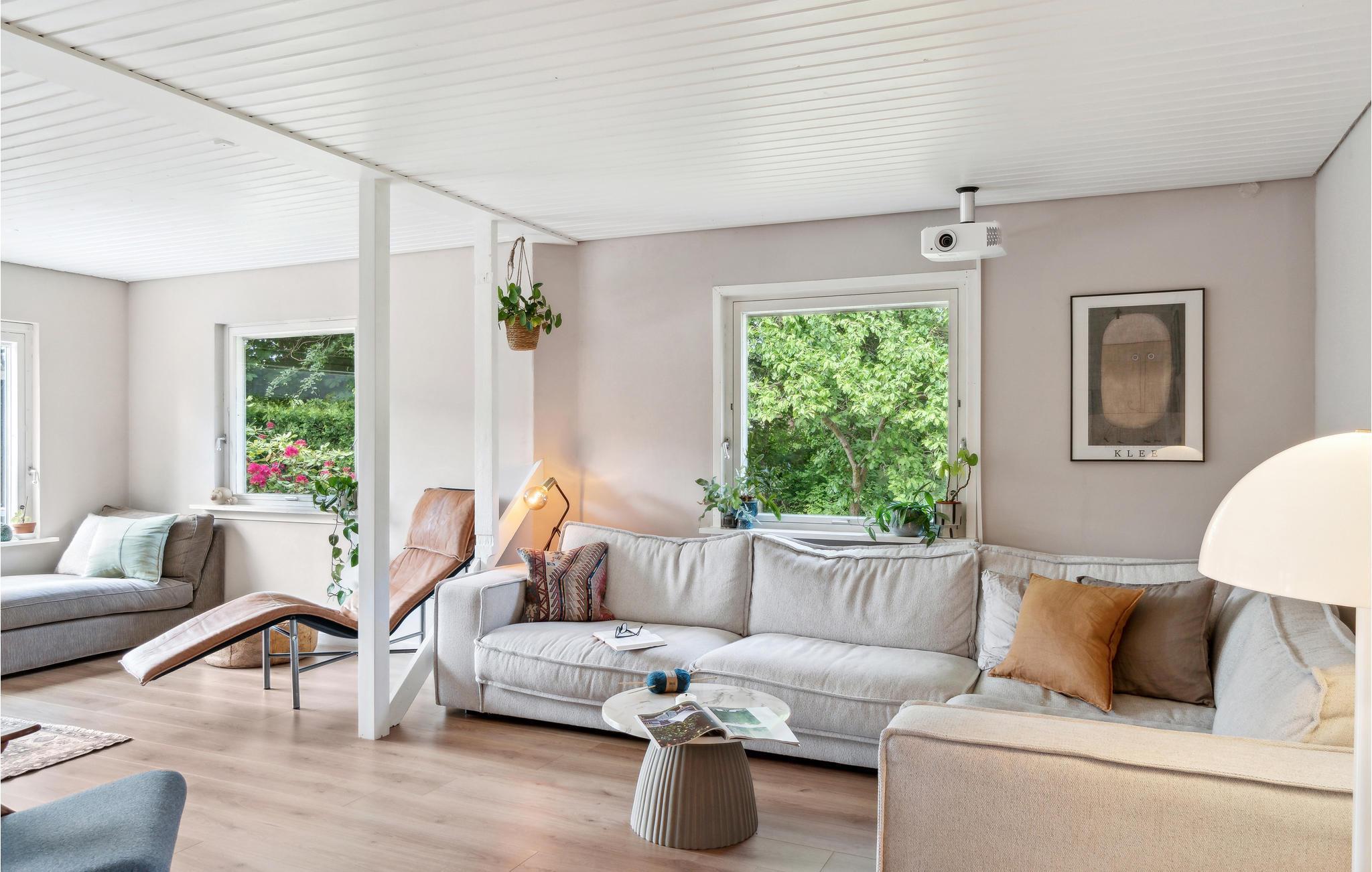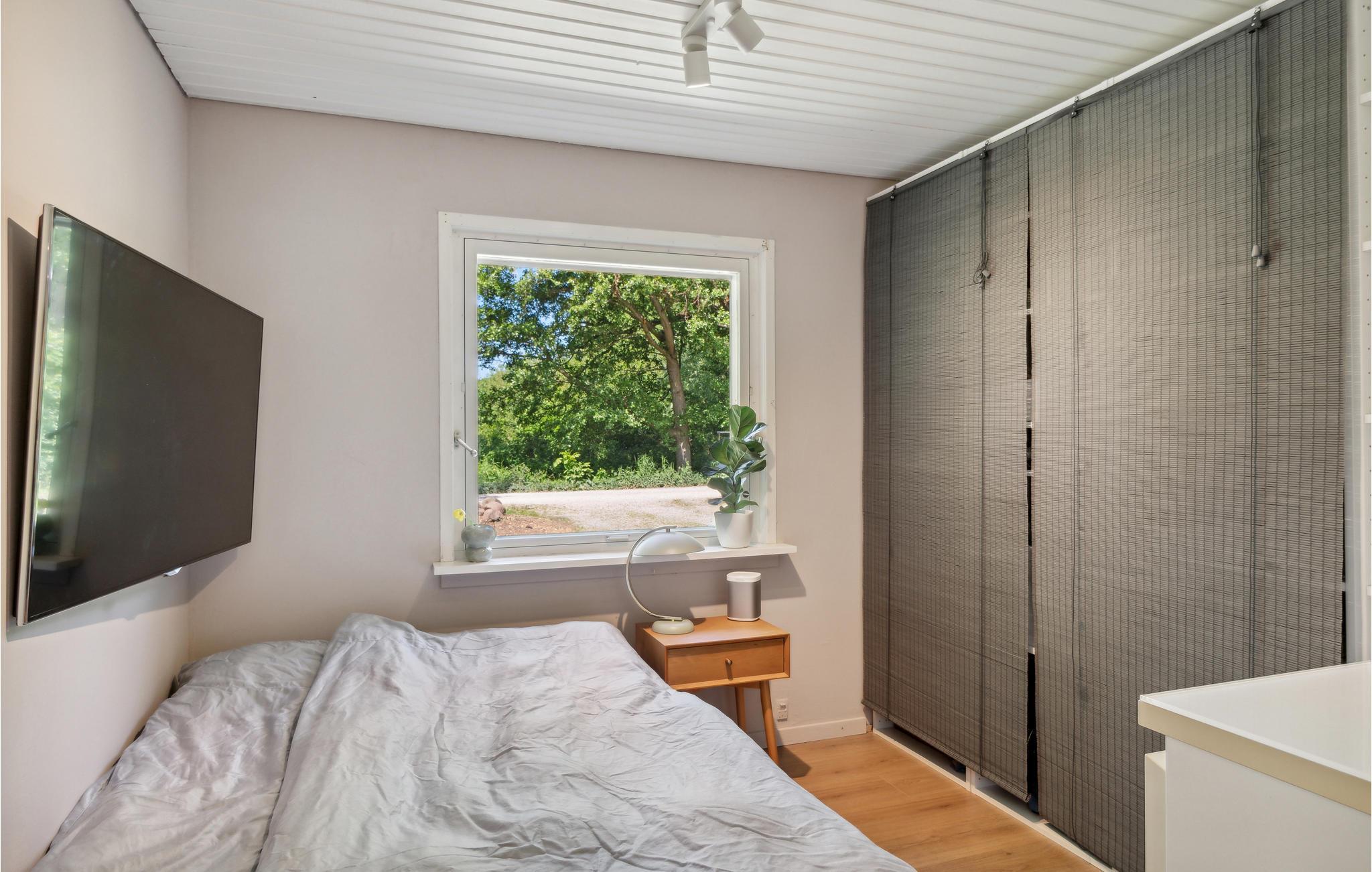 Her er lys, plads, charme, frisk søluft og vidunderlig natur kombineret med luksus. Det bliver ikke bedre! Dette hus er et paradis for den naturelskende familie, som sætter pris på eksklusiv komfort, og er den ideelle oase af fred til en skøn ferie i Nordsjælland. Forlad den hektiske hverdag og nyd husets lange række af goder. Værelserne er smagfuldt indrettet i stilrent design, og lyset strømmer ind. Hyg jer med madlavning i det moderne og fuldt udstyrede køkken, spil brætspil ved det lange massive træbord og slap af i en af husets mange hyggekroge. Den store træterrasse bidrager til ekstra sommerhygge med fashionable havemøbler. Læs en god bog på den store solseng under træet eller nyd solen på den anden solseng med kig til grønne trækroner og drivende lammeskyer og til duften af syrenens lyselilla blomster. Her er kun få skridt ned til søen og badebroen. Plask og forfrisk jer i søen, lej en kajak, en kano eller et SUPboard og udforsk søen. Lystfiskere kan også prøve lykken. Måske står der frisk fanget fisk på menuen i aften? I kan også tage på dejlige cykelture i området.