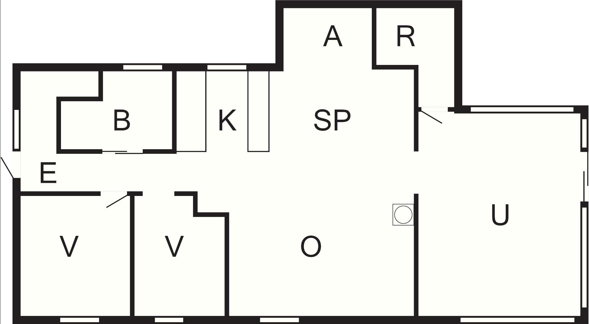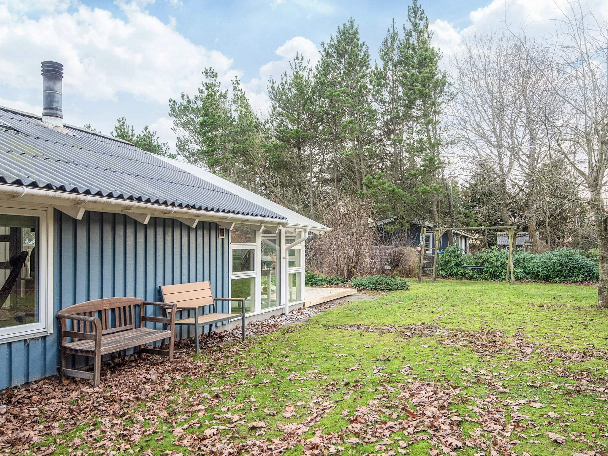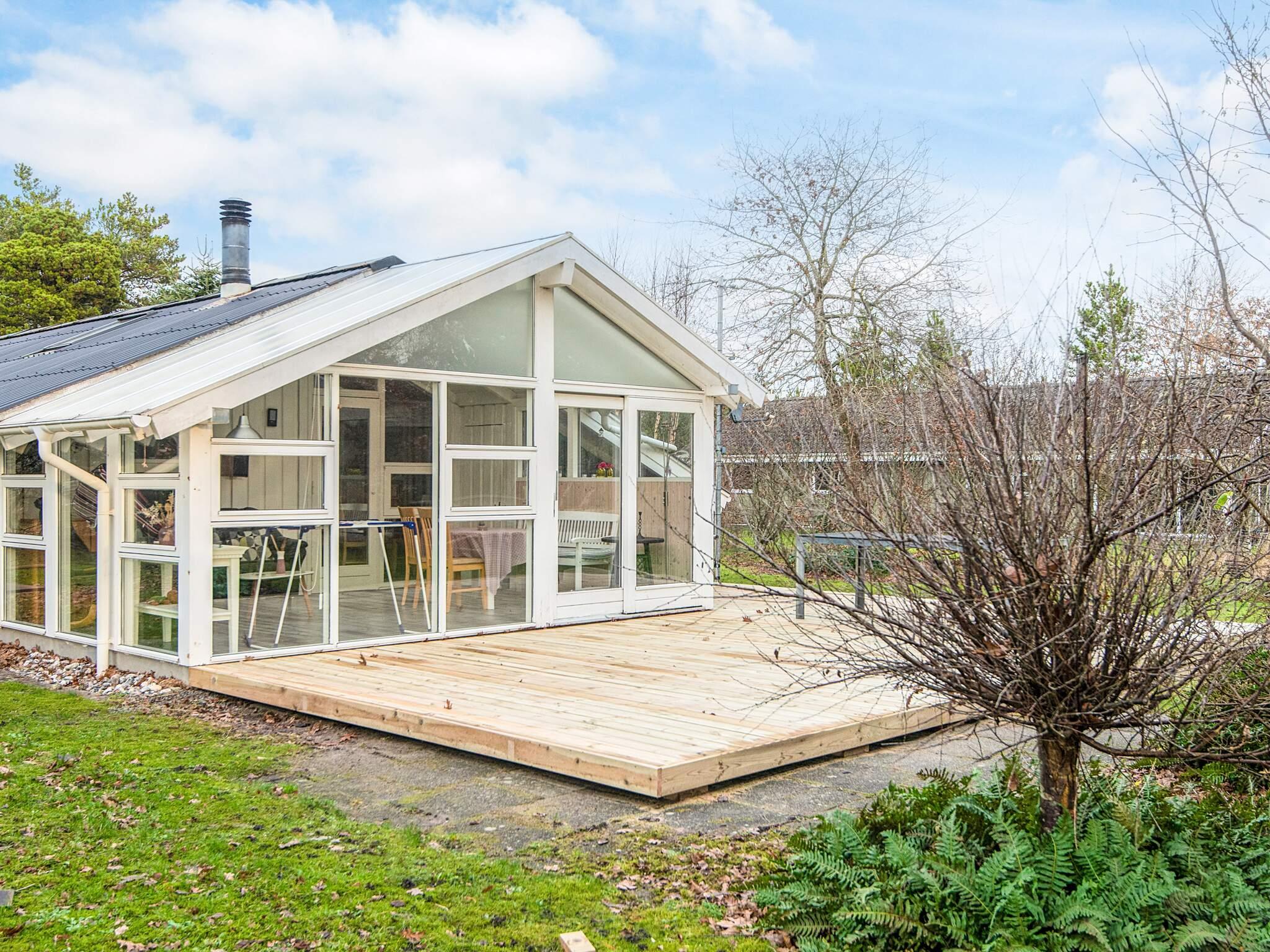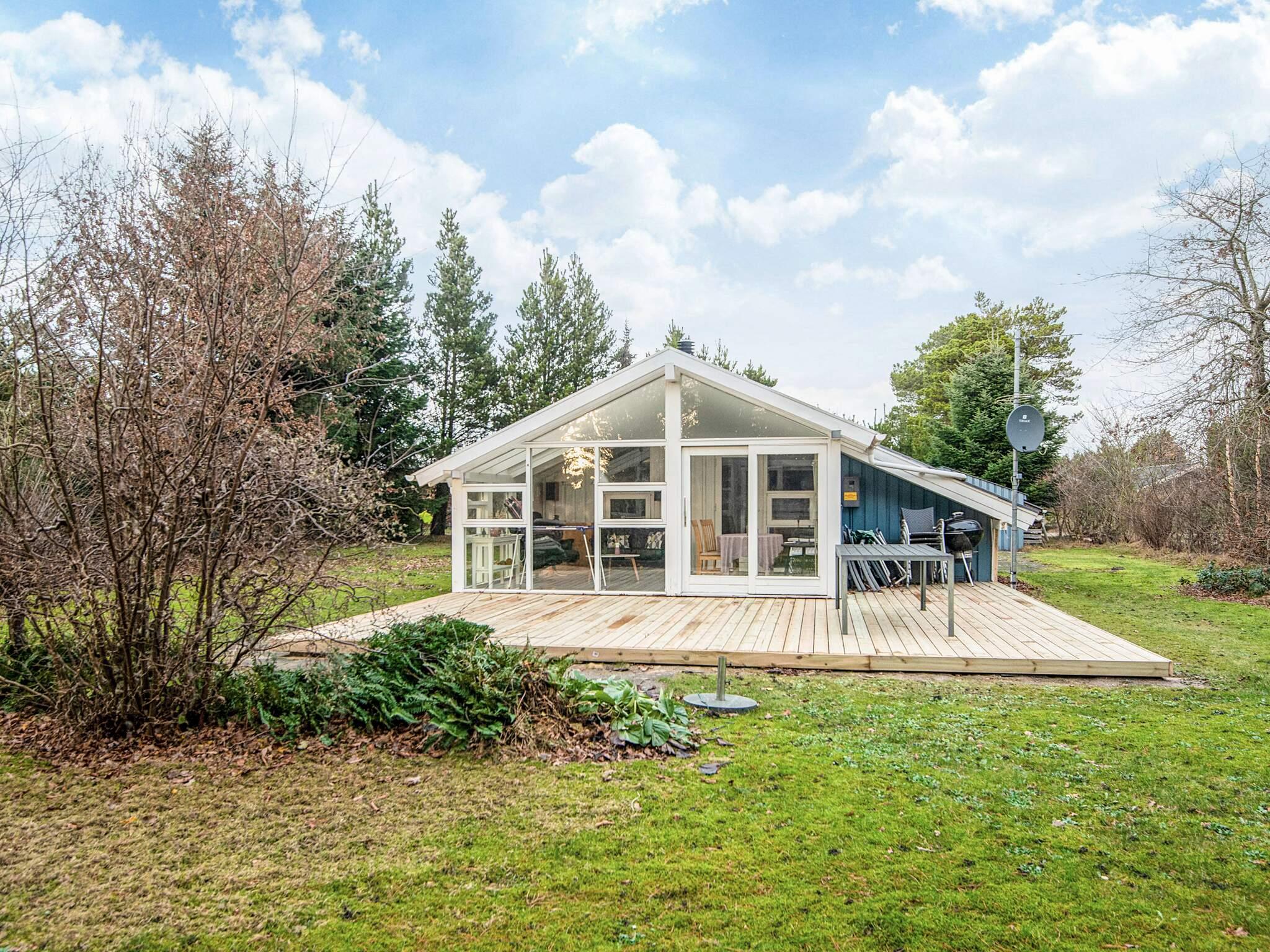 Indenfor indeholder ejendommen to soveværelser: et med dobbeltseng og det andet med to køjesenge. Yderligere sovepladser er tilgængelige i den hyggelige opholdsstue, som kan rumme yderligere to gæster. En lys vinterhave tilføjer et behageligt sted at slappe af på køligere dage eller aftener, mens du nyder udsigten over det omkringliggende grønne område. Det åbne opholds- og spiseområde giver et indbydende rum til familieliv og indendørs afslapning.