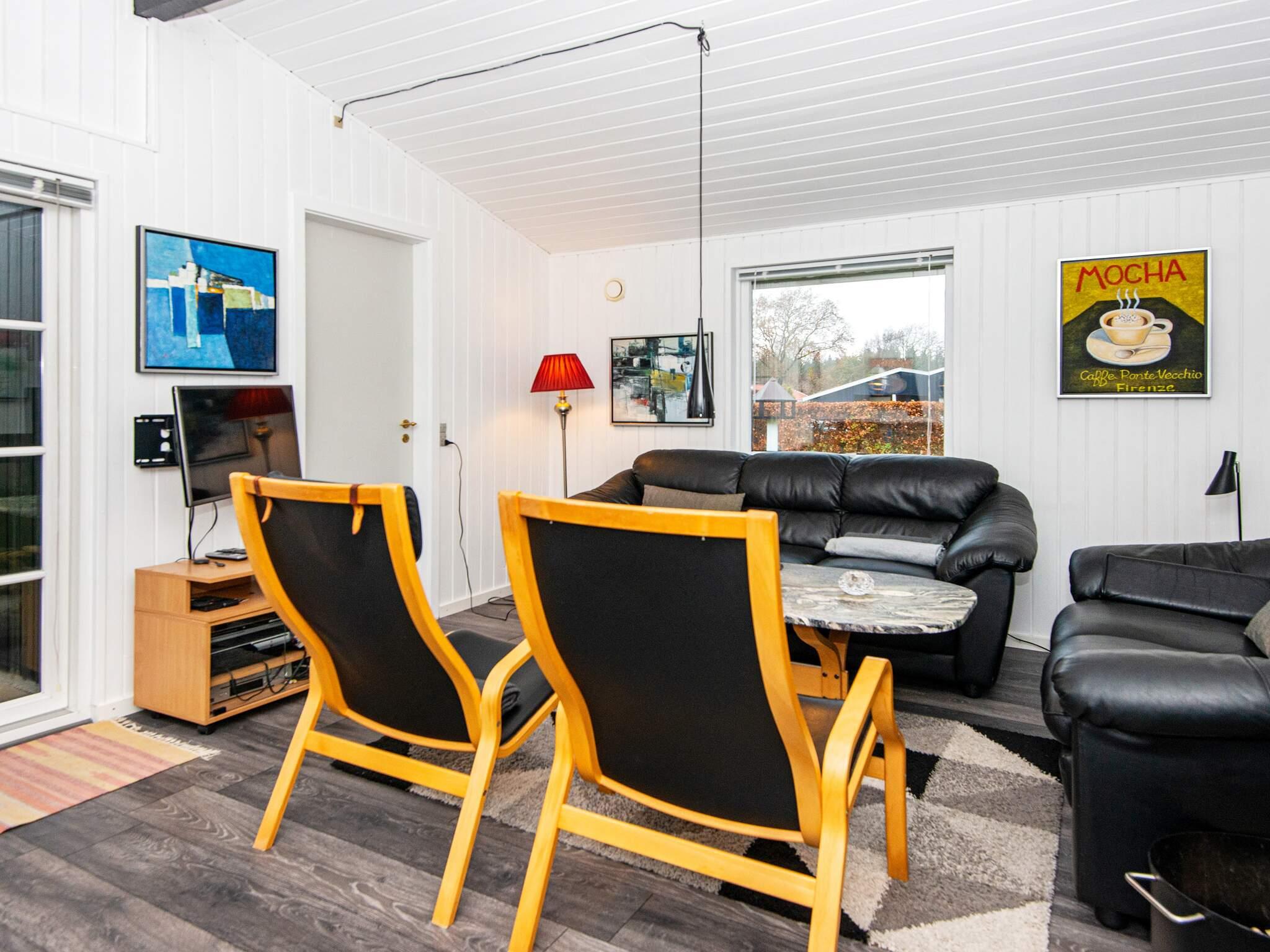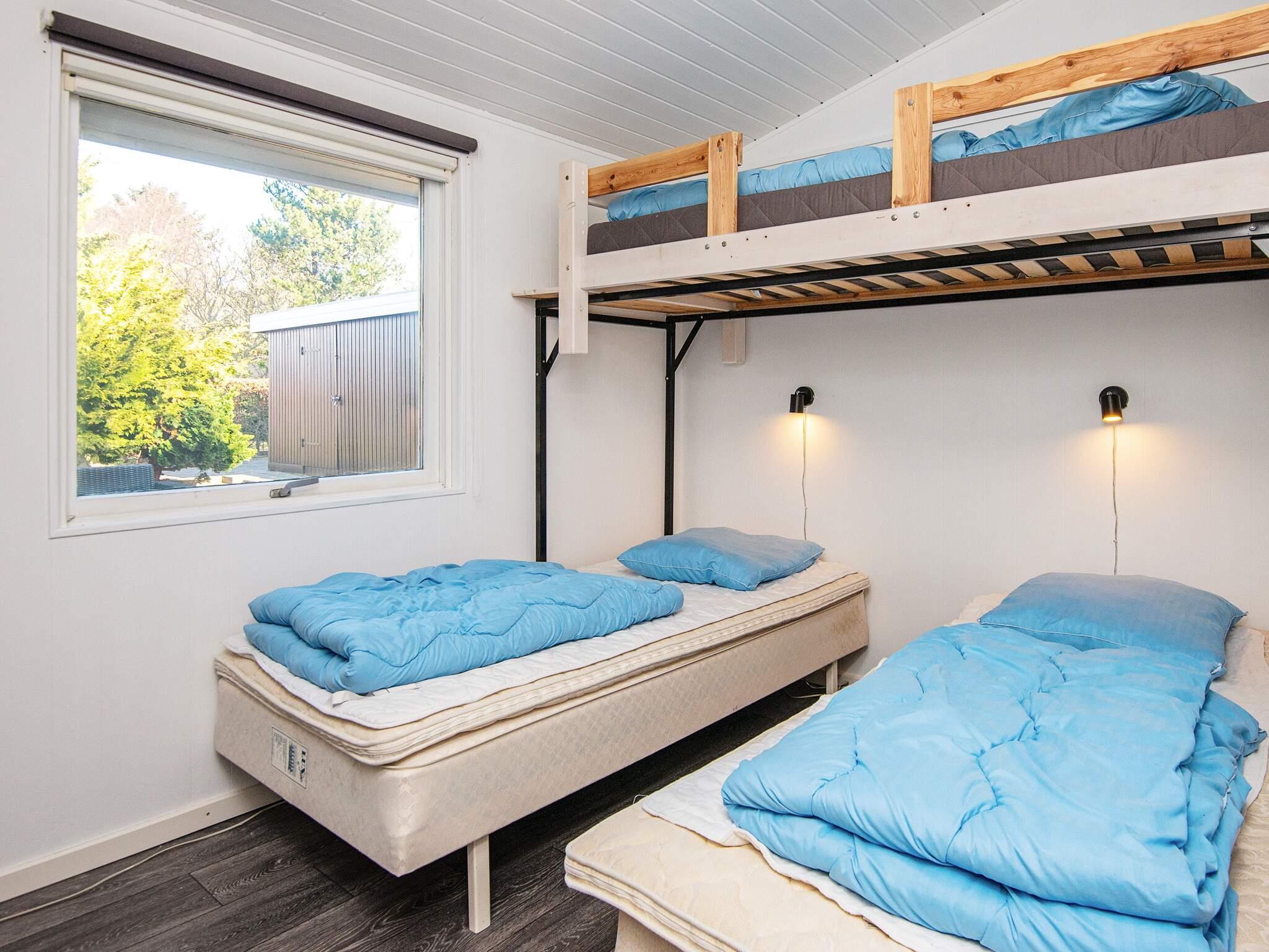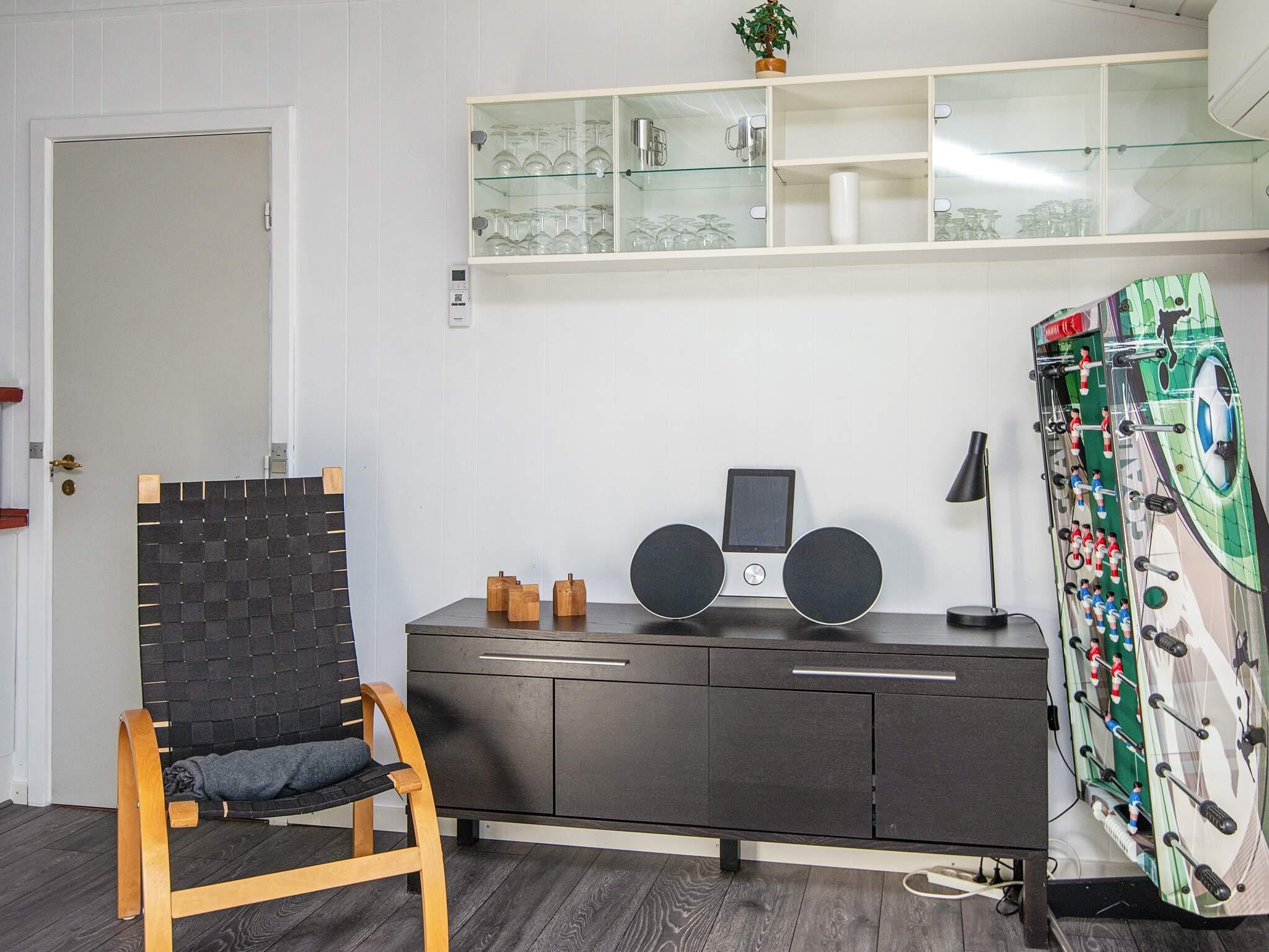 Sommerhuset er godt indrettet med tre soveværelser, hvoraf det ene har dobbeltseng, et med to enkeltsenge og et med dobbeltseng og en køje. Sommerhuset har et godt udstyret køkken med udgang til havestuen. I stuen er der bl.a. brændeovn og udgang til overdækket terrasse. Til underholdning er der bordfodbold og PlayStation.