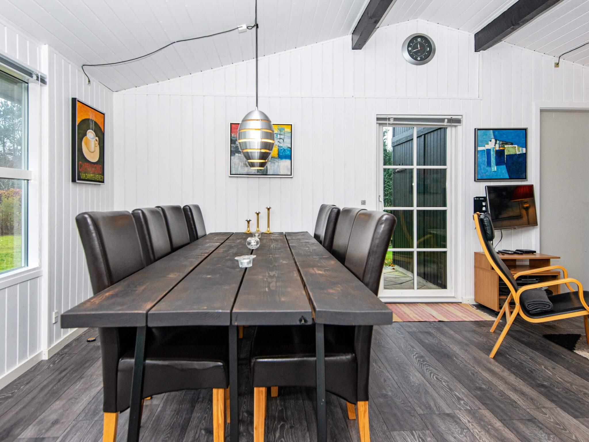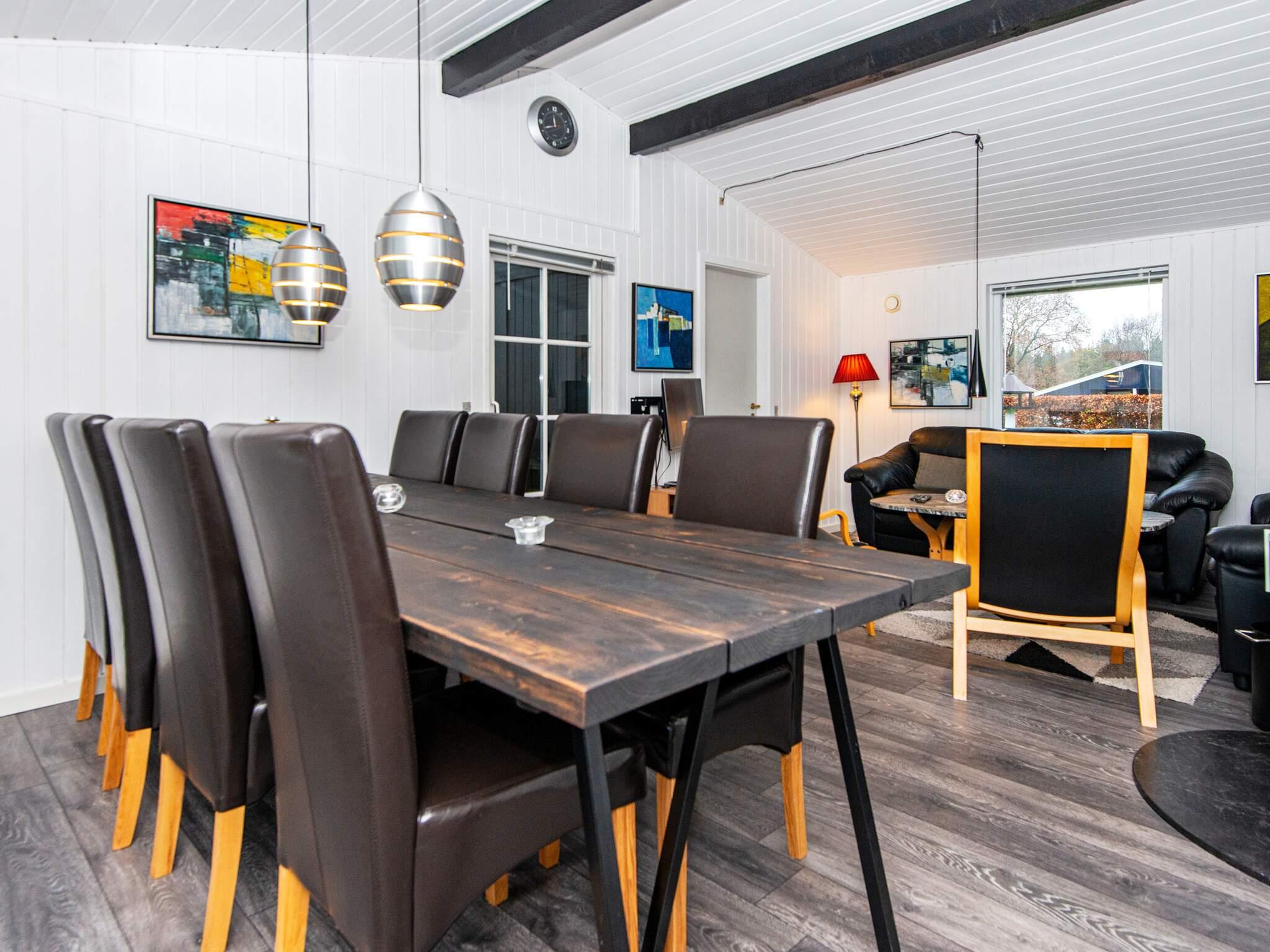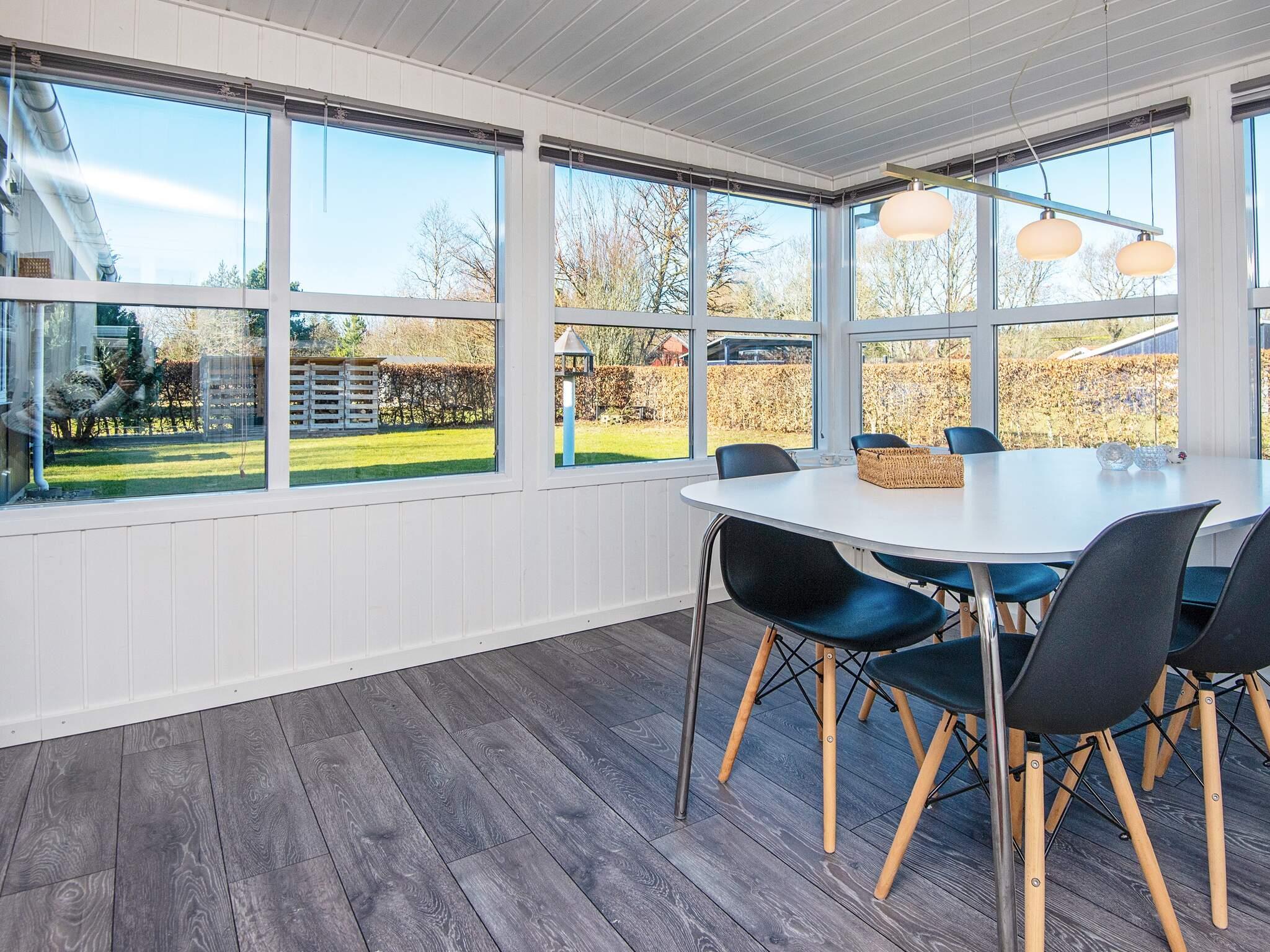 Sommerhuset er godt indrettet med tre soveværelser, hvoraf det ene har dobbeltseng, et med to enkeltsenge og et med dobbeltseng og en køje. Sommerhuset har et godt udstyret køkken med udgang til havestuen. I stuen er der bl.a. brændeovn og udgang til overdækket terrasse. Til underholdning er der bordfodbold og PlayStation.