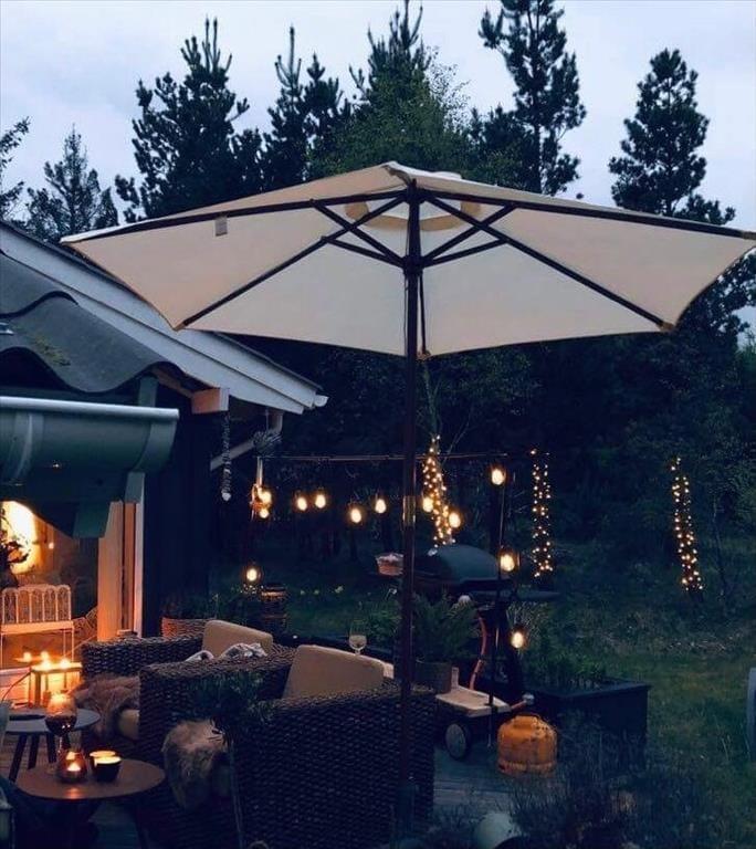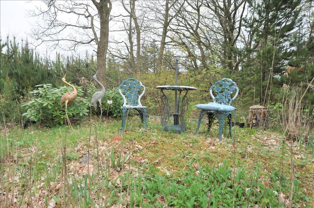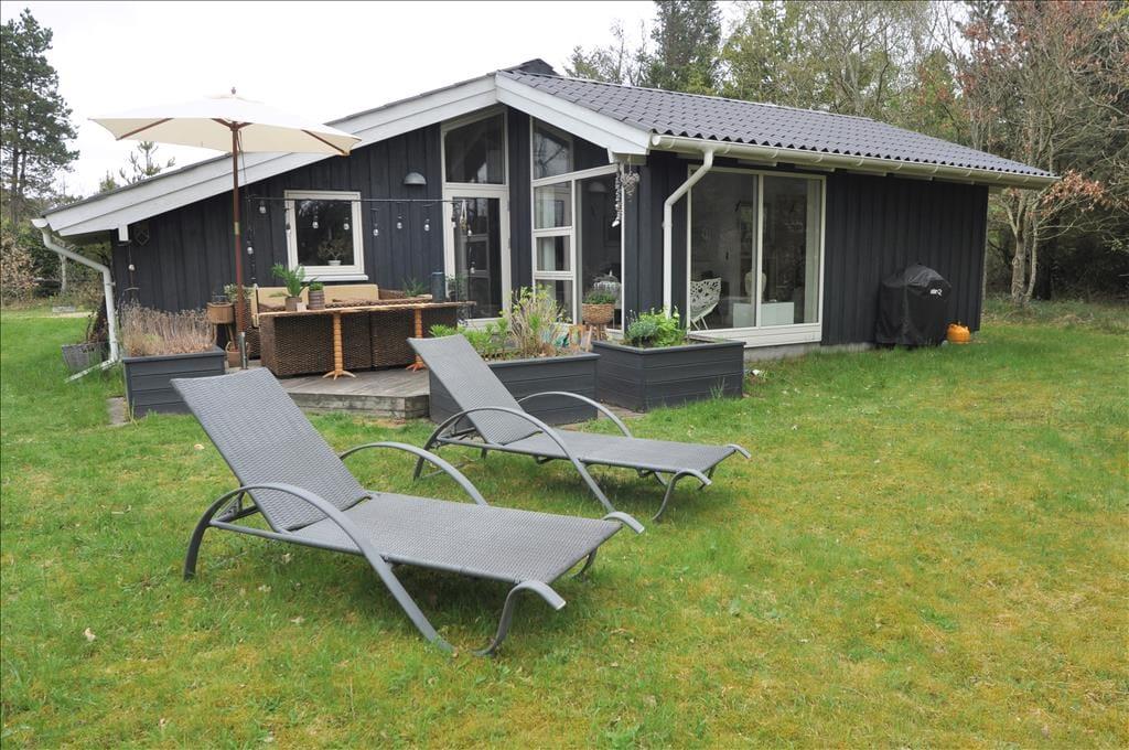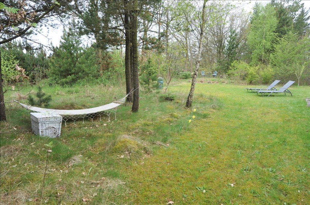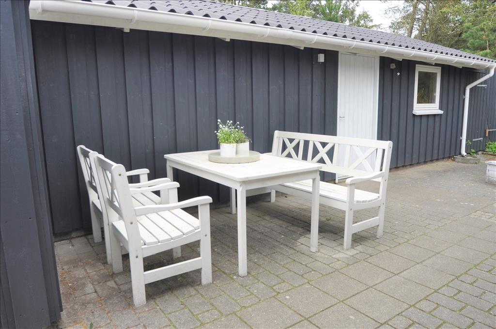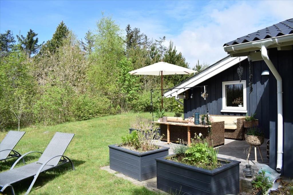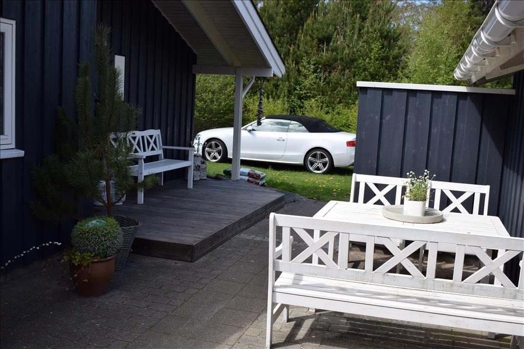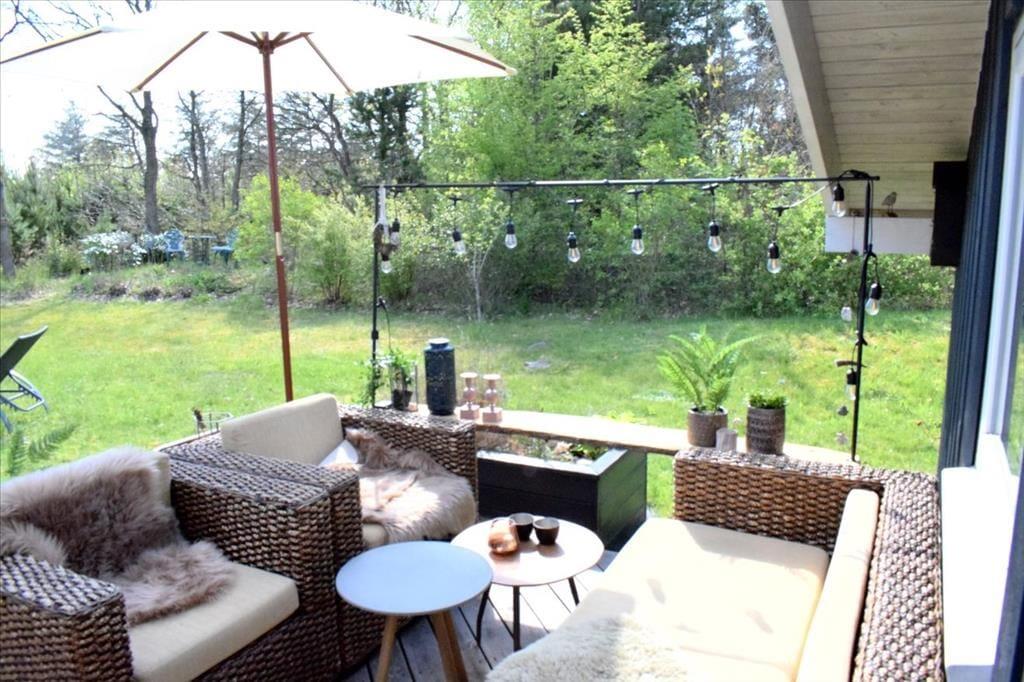 Sæt jer udenfor på den yderst hyggelige terrasse med de fantastiske havemøbler der giver enhver lyst til at sidde og beundre den flotte natur, imens I sidder og nyder et lækkert glas vin kan I nyde ungernes grin imens de spiller fodbold på den store græsplæne. På grunden finder I flere hyggelige kroge hvor I kan nyde den dejlige fred og ro der hersker over grunden, eller tag morgenkaffen med udenfor og nyd den under åben himmel imens I nyder solen der langsomt står op og fuglene der synger dagen i gang.