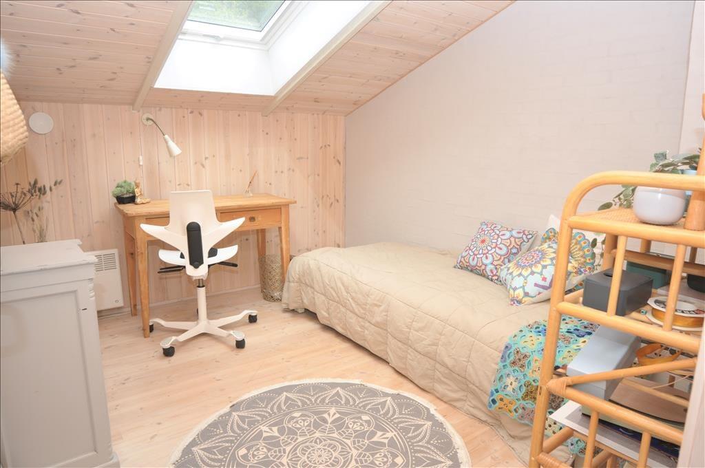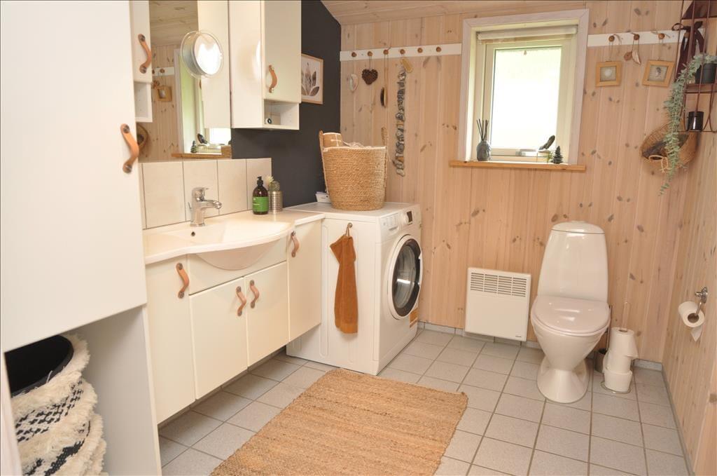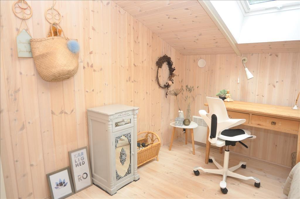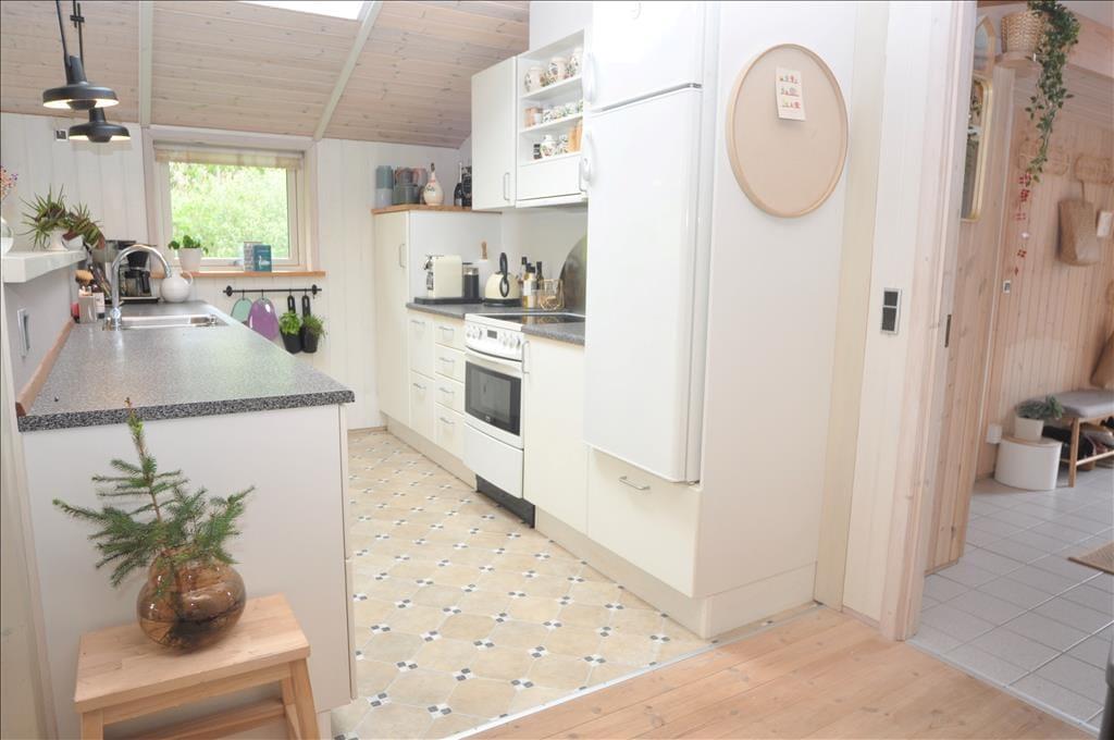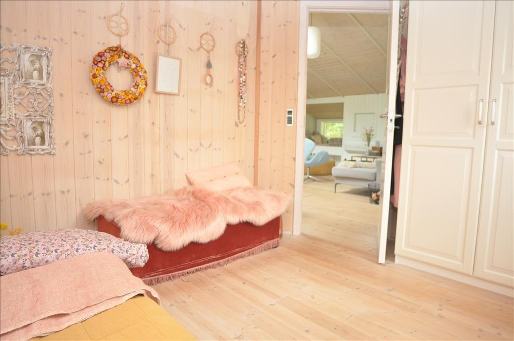Træd indenfor i dette flotte træferiehus hvor der emmer af hygge og nærvær. De mange rum er prydet med smukke sarte farver der giver huset en afslappende og skøn atmosfære. Den store stue byder på mange skønne hyggekroge der kalder på hyggelige stunder og lange dybe samtaler for hele familien, eller tag en bog i hånden og forsvind ind i en helt anden verden. For ekstra hygge så tænd op for den hyggelige brændeovn og nyd dens dejlige varme og hyggelige knitrende lyd der spreder sig i rummet. Stuen er præget af de store vinduer hvilket giver et fantastisk lysindfald som man ikke kan andet end at nyde.